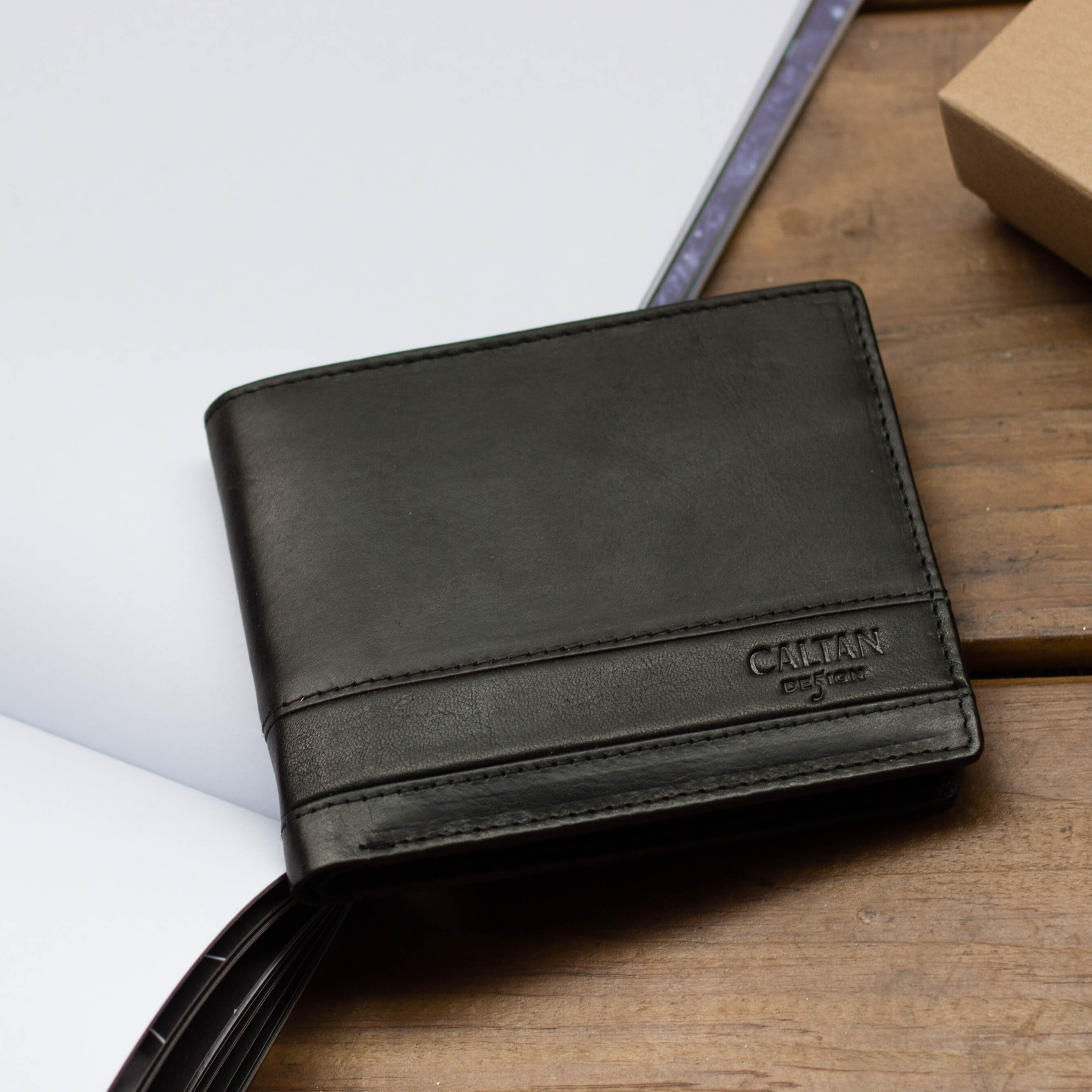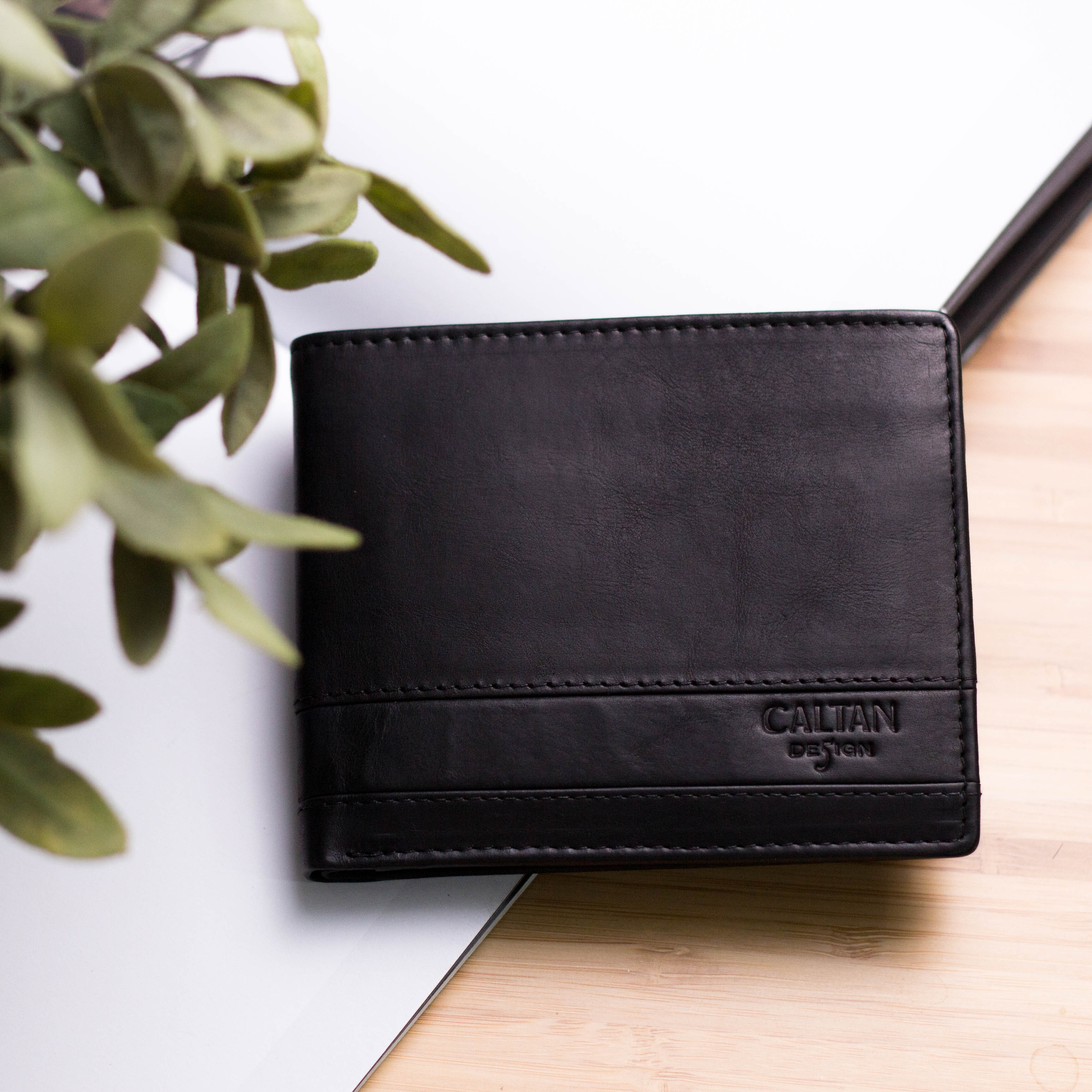 『新品上市』老爺有喜 男用皮革壓飾真皮簡約短夾(071695bk)