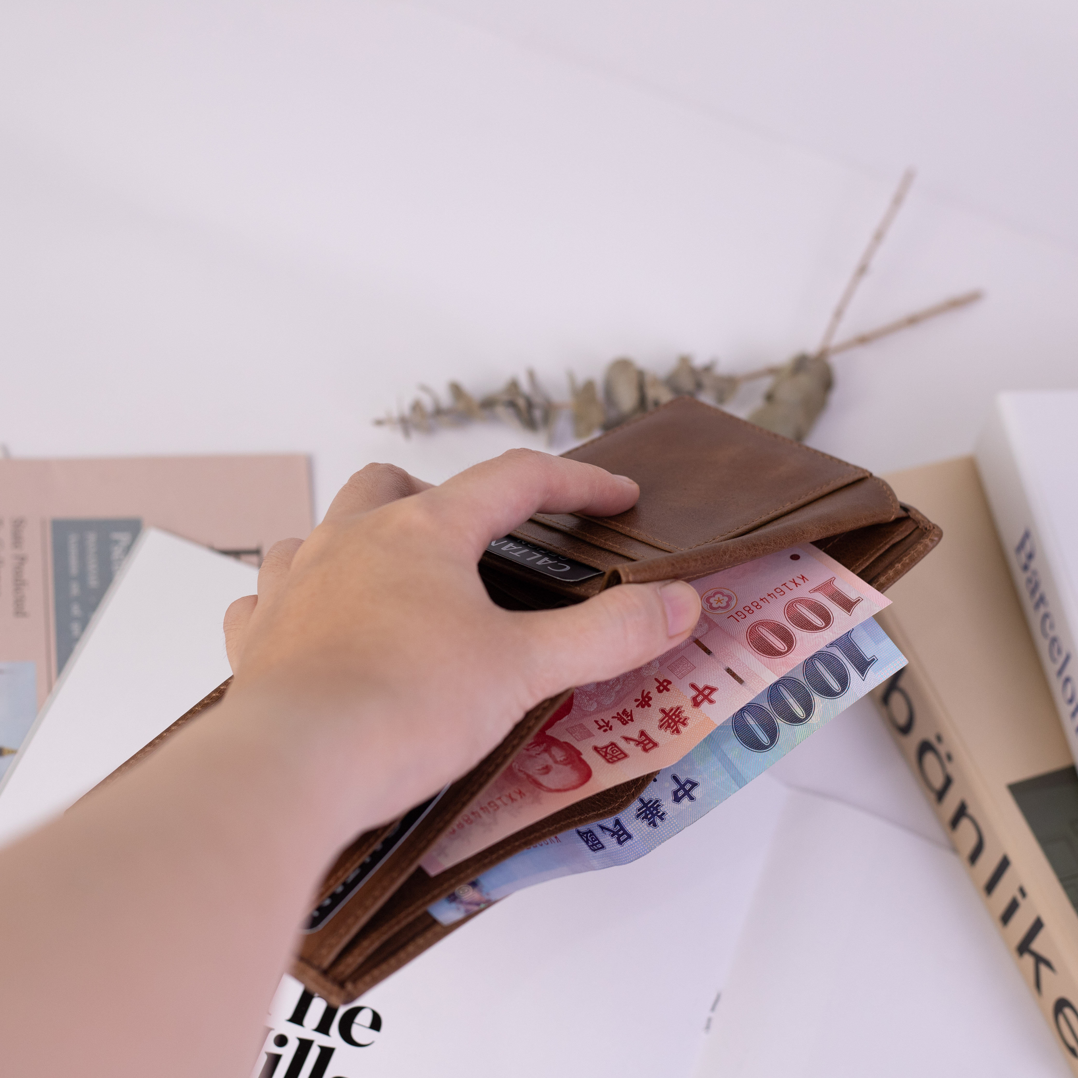 『新品上市』老爺有喜 男用皮革壓飾真皮簡約短夾(071695lt)