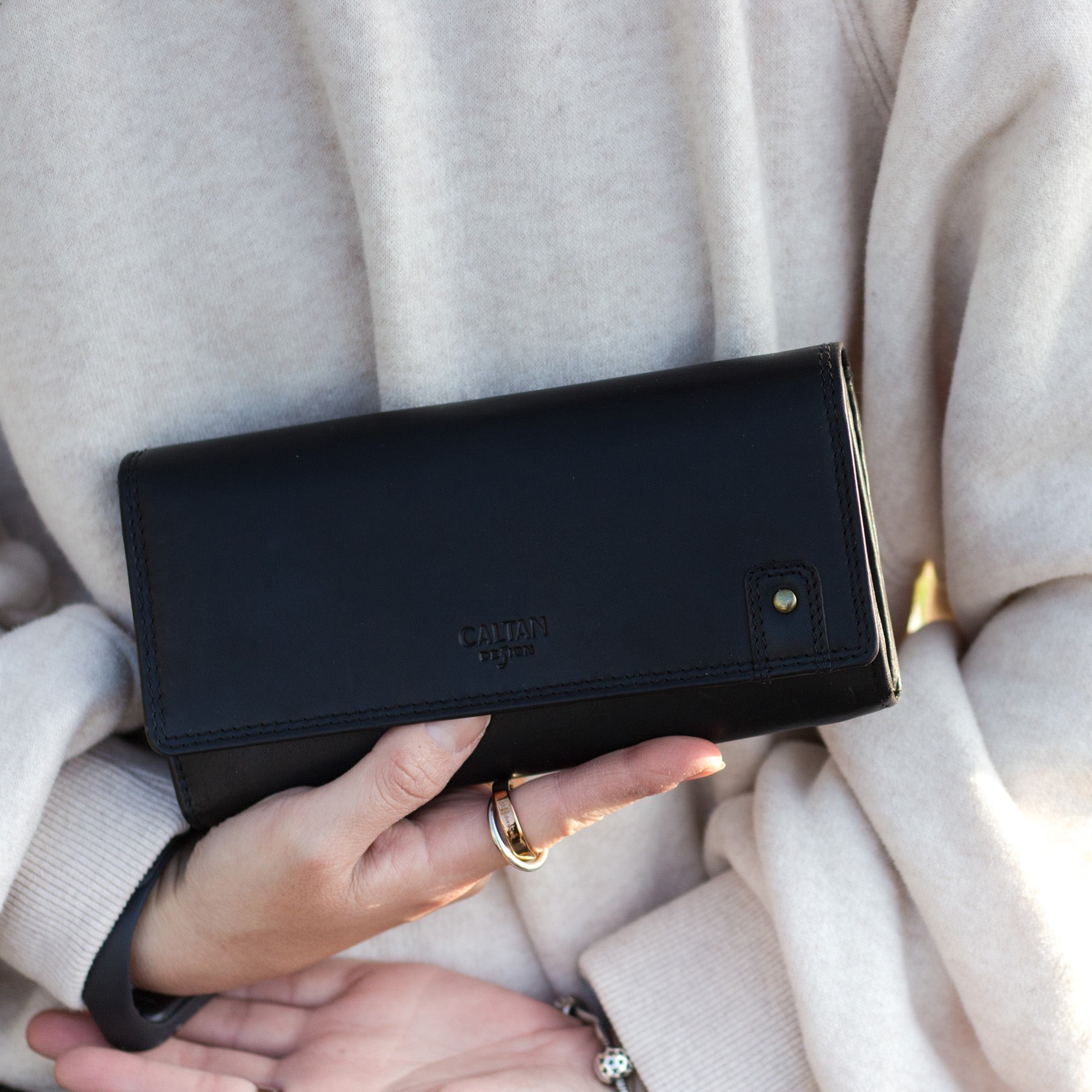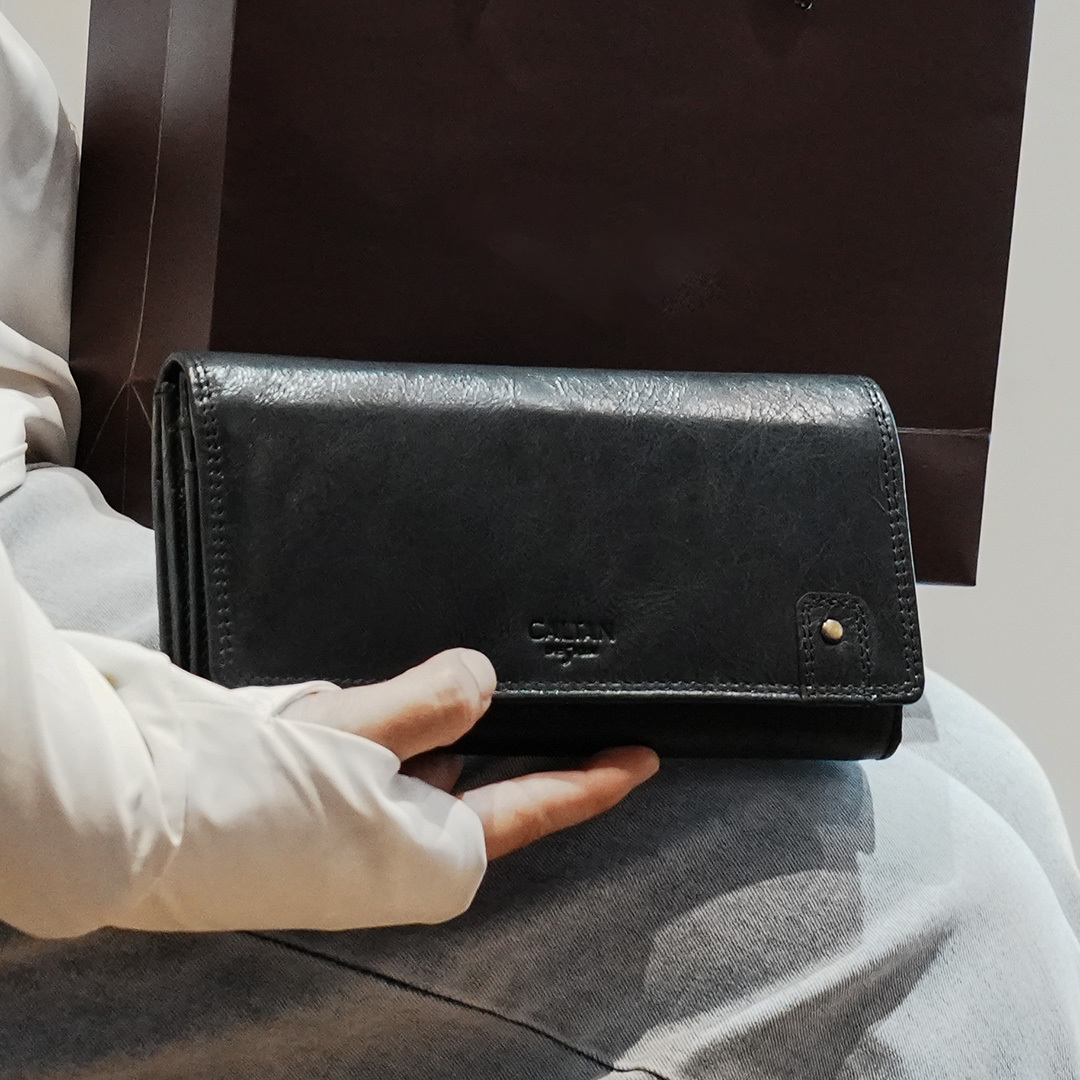 『新品上市』老爺有喜 真皮鉚釘釦飾牛皮長夾(072267bk)