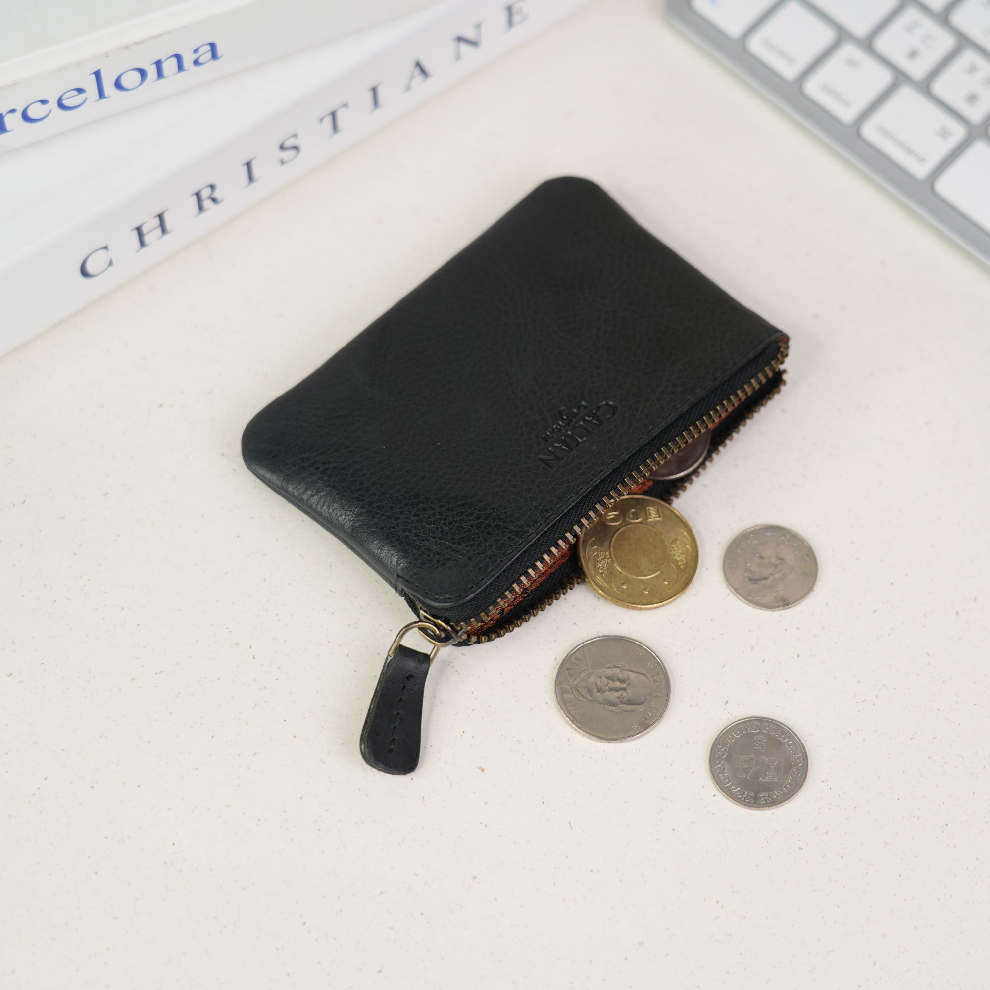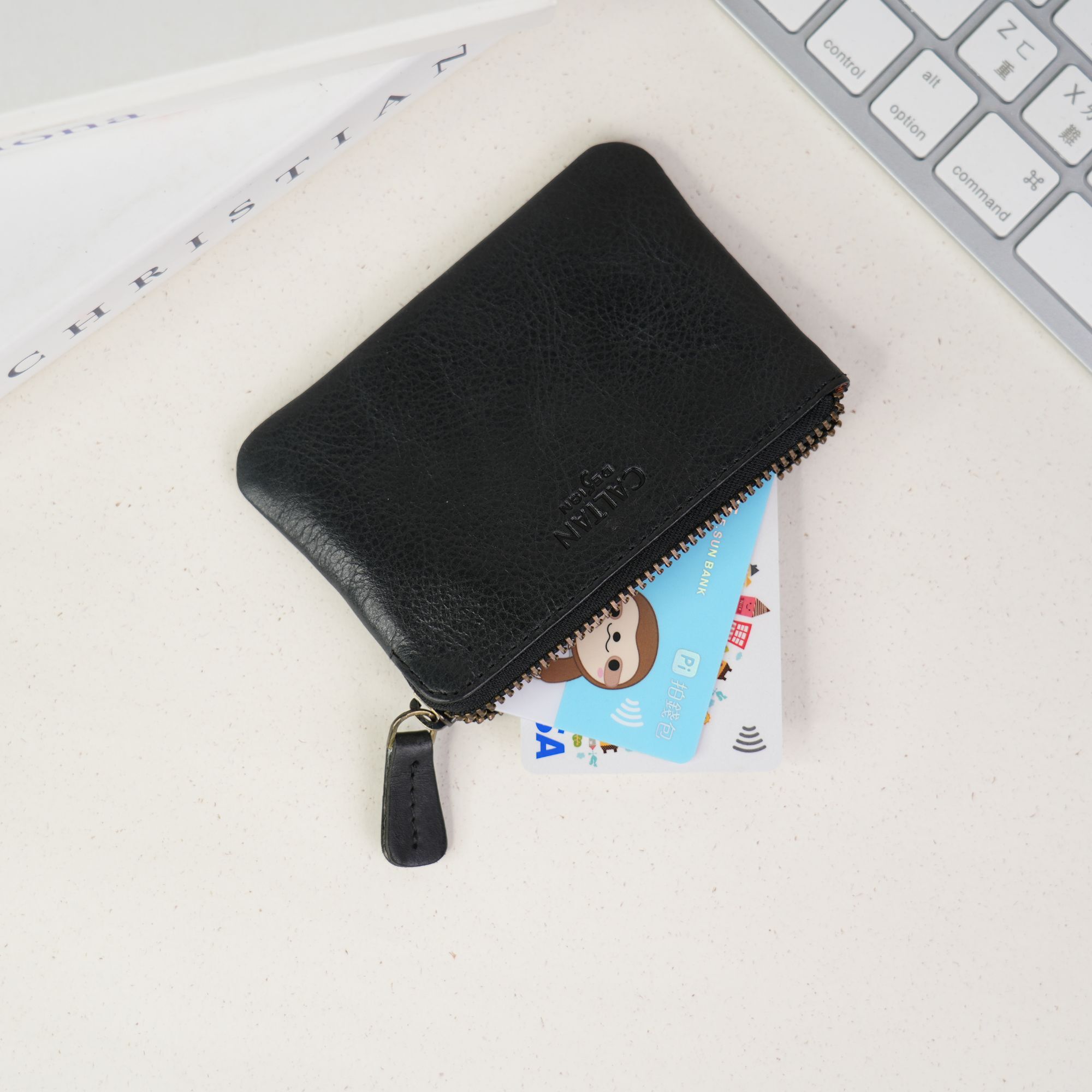 『新品上市』老爺有喜 真皮素雅雙拉鍊質感小錢包(072693bk)