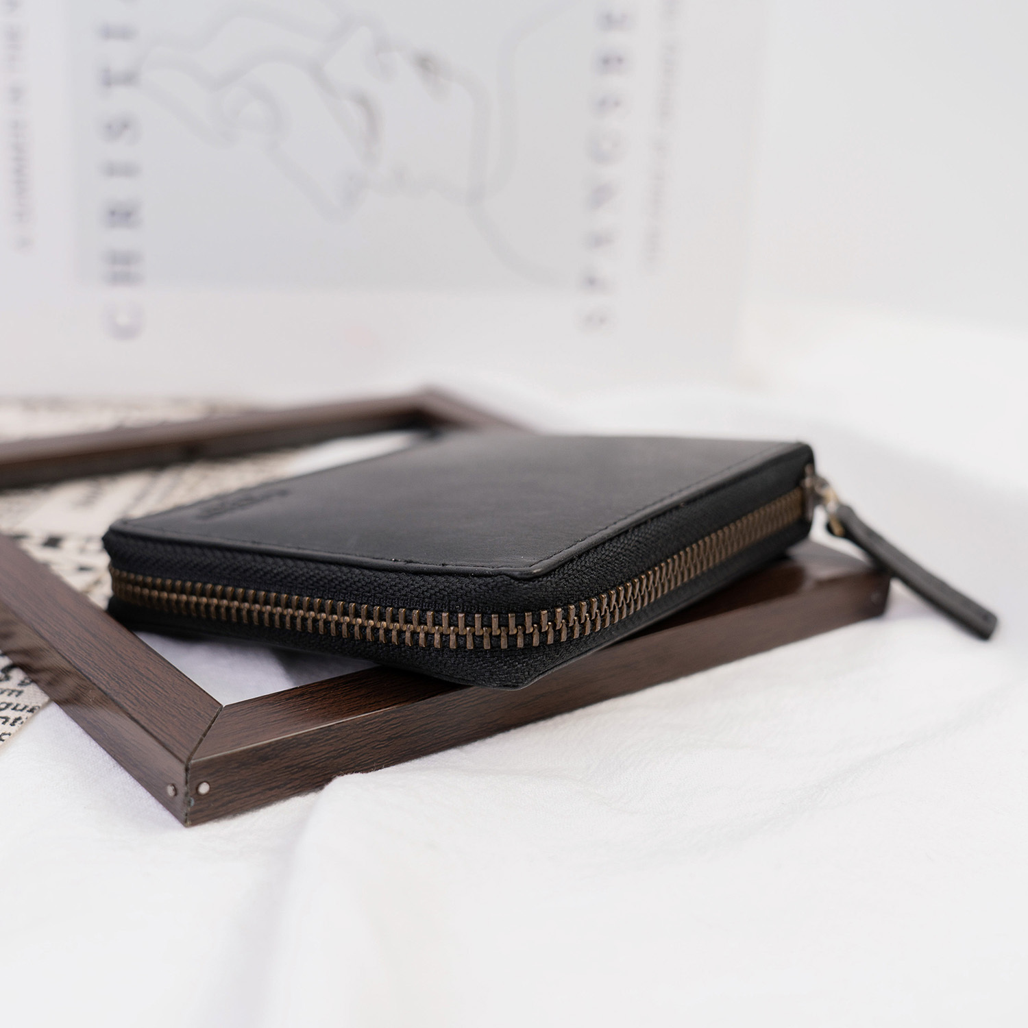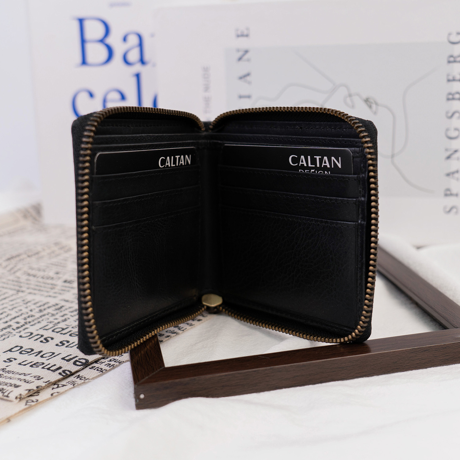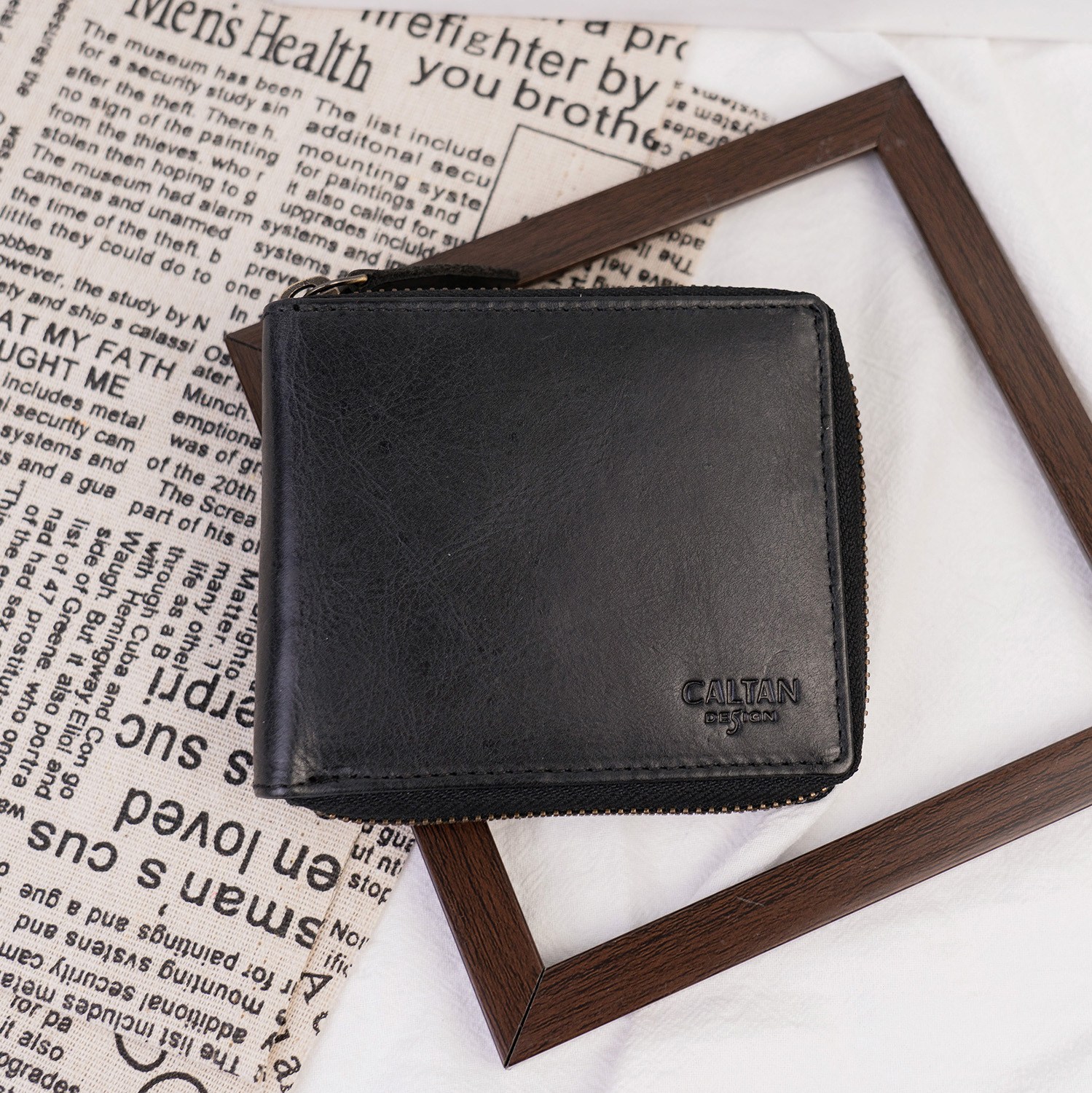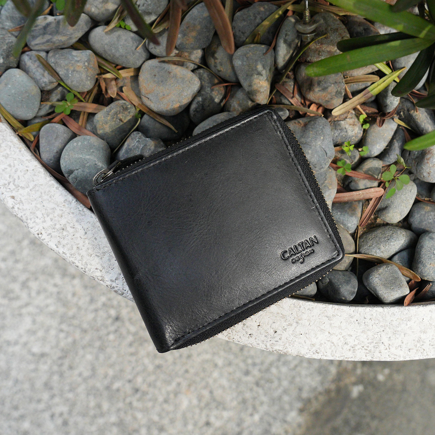 『新品上市』老爺有喜 經典真皮全包式拉鍊短夾(072916bk)