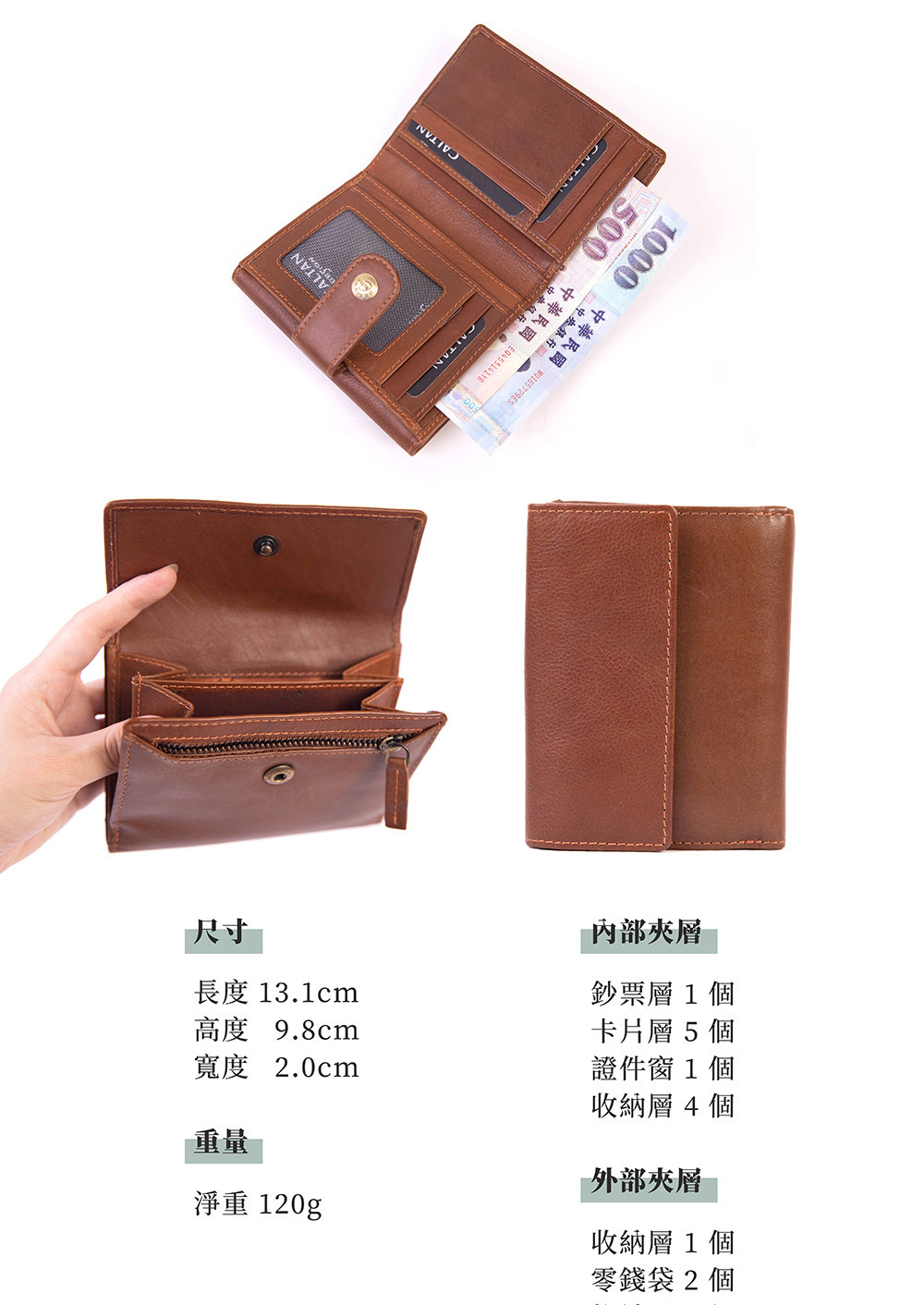 『新品上市』老爺有喜 真皮英倫風雙釦式多功能中夾 (074351cd)