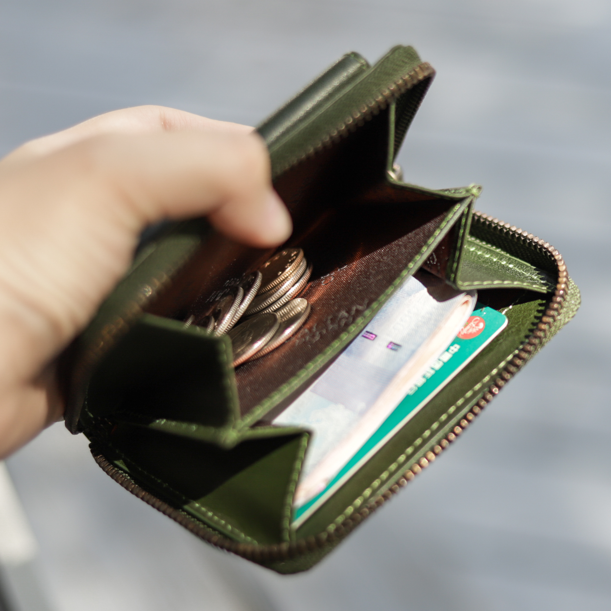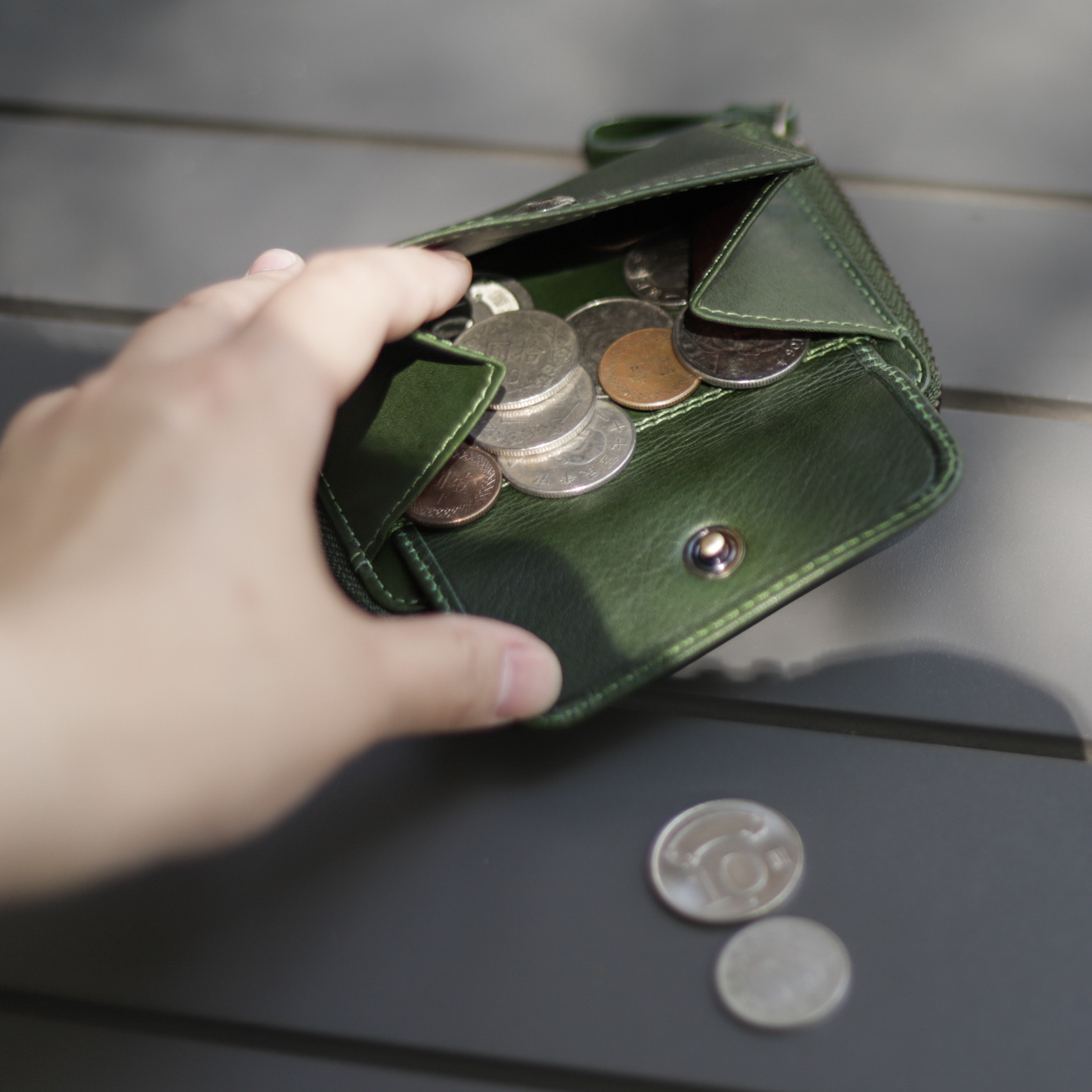 內部夾層零錢袋2個、外部夾層零錢袋1個