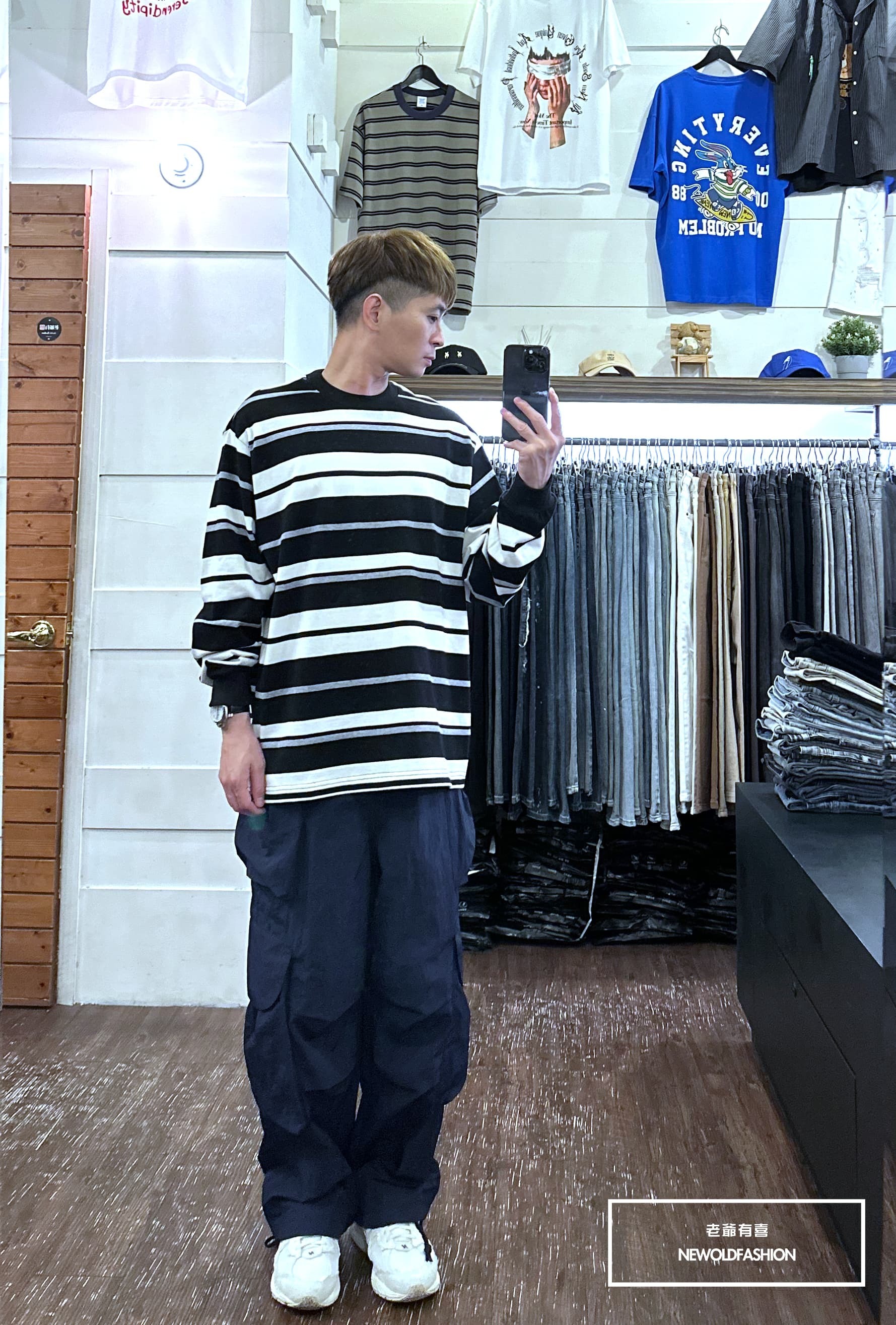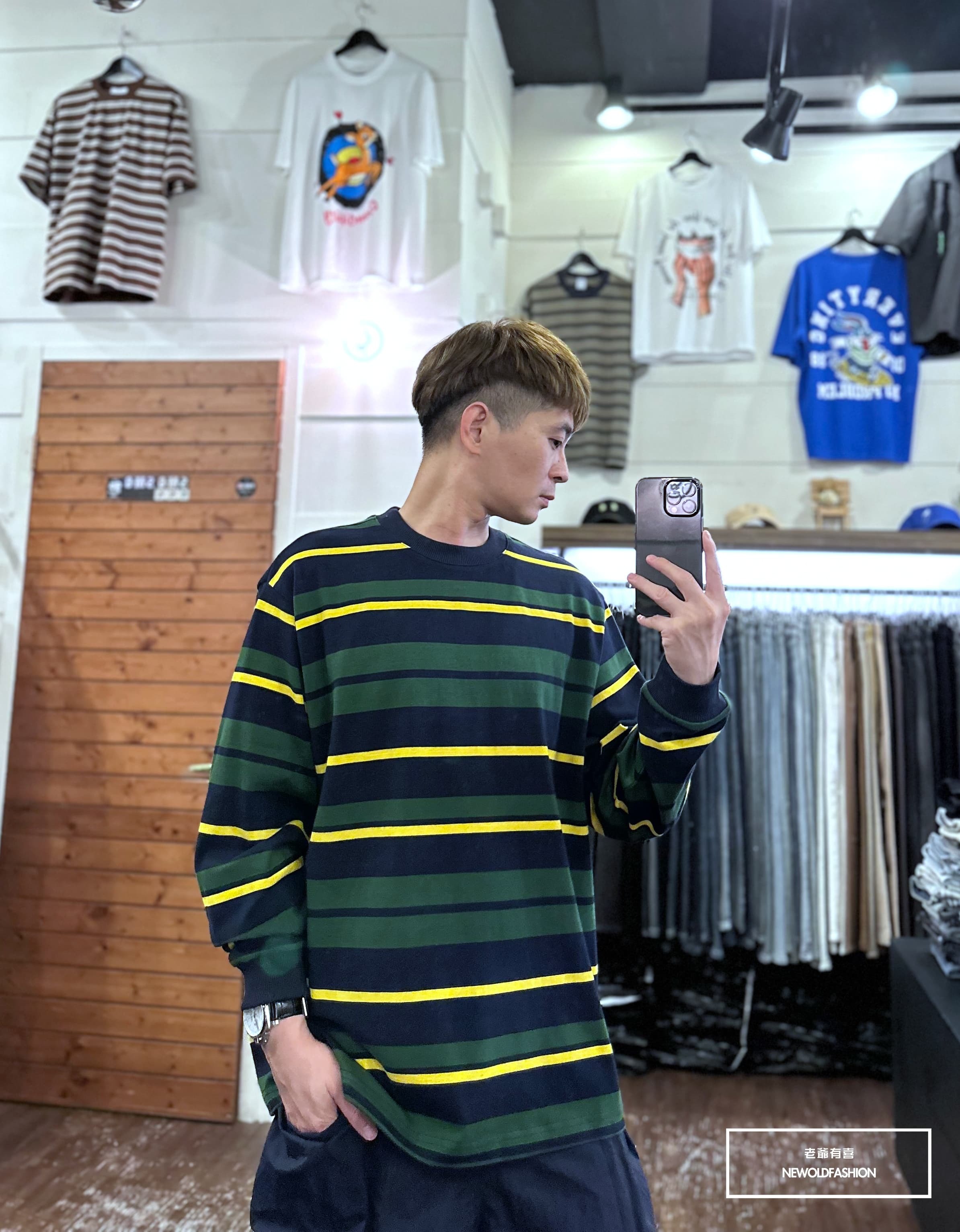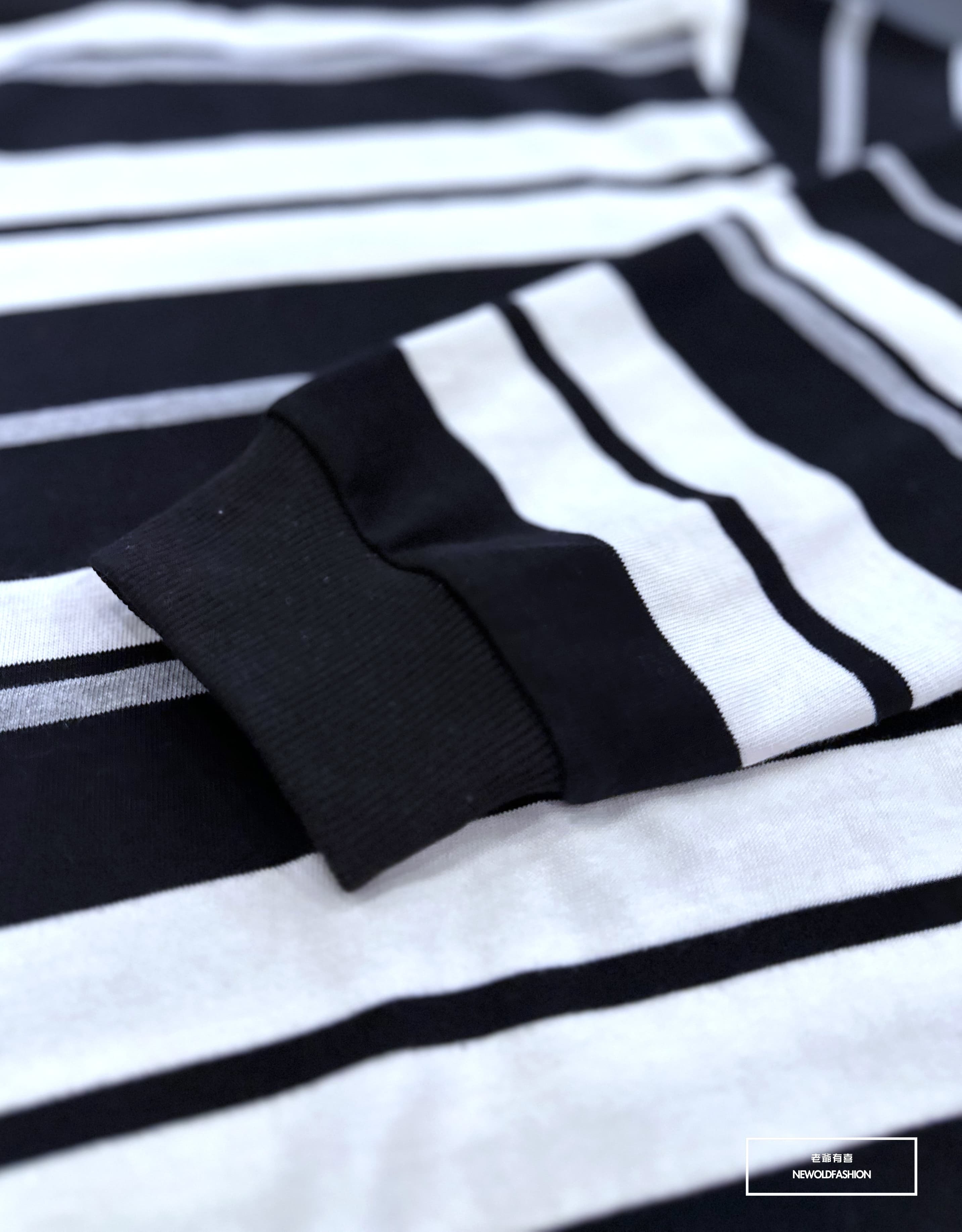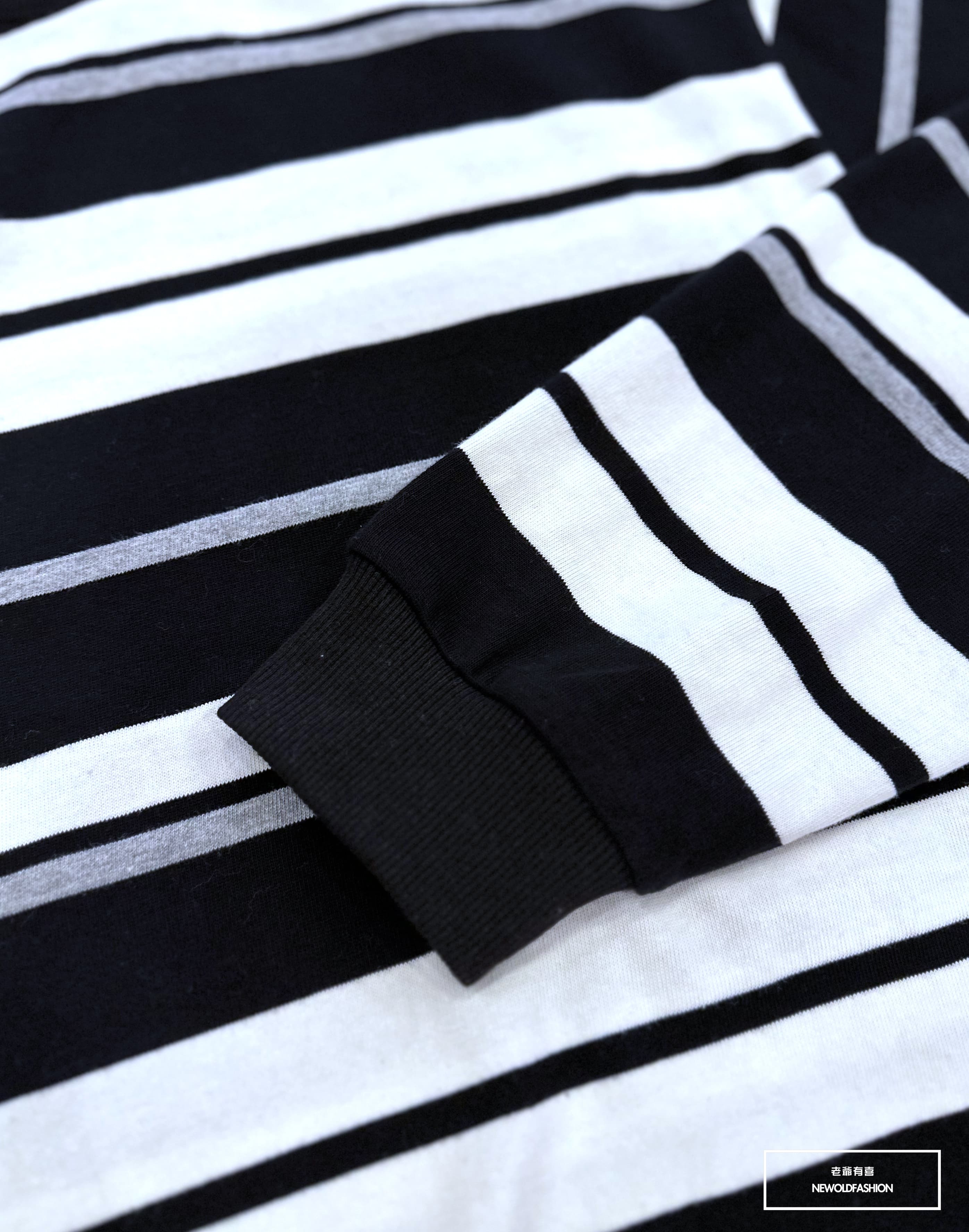 『新品上市』重磅撞色條紋圓領大學T-黑(NOF23091020)