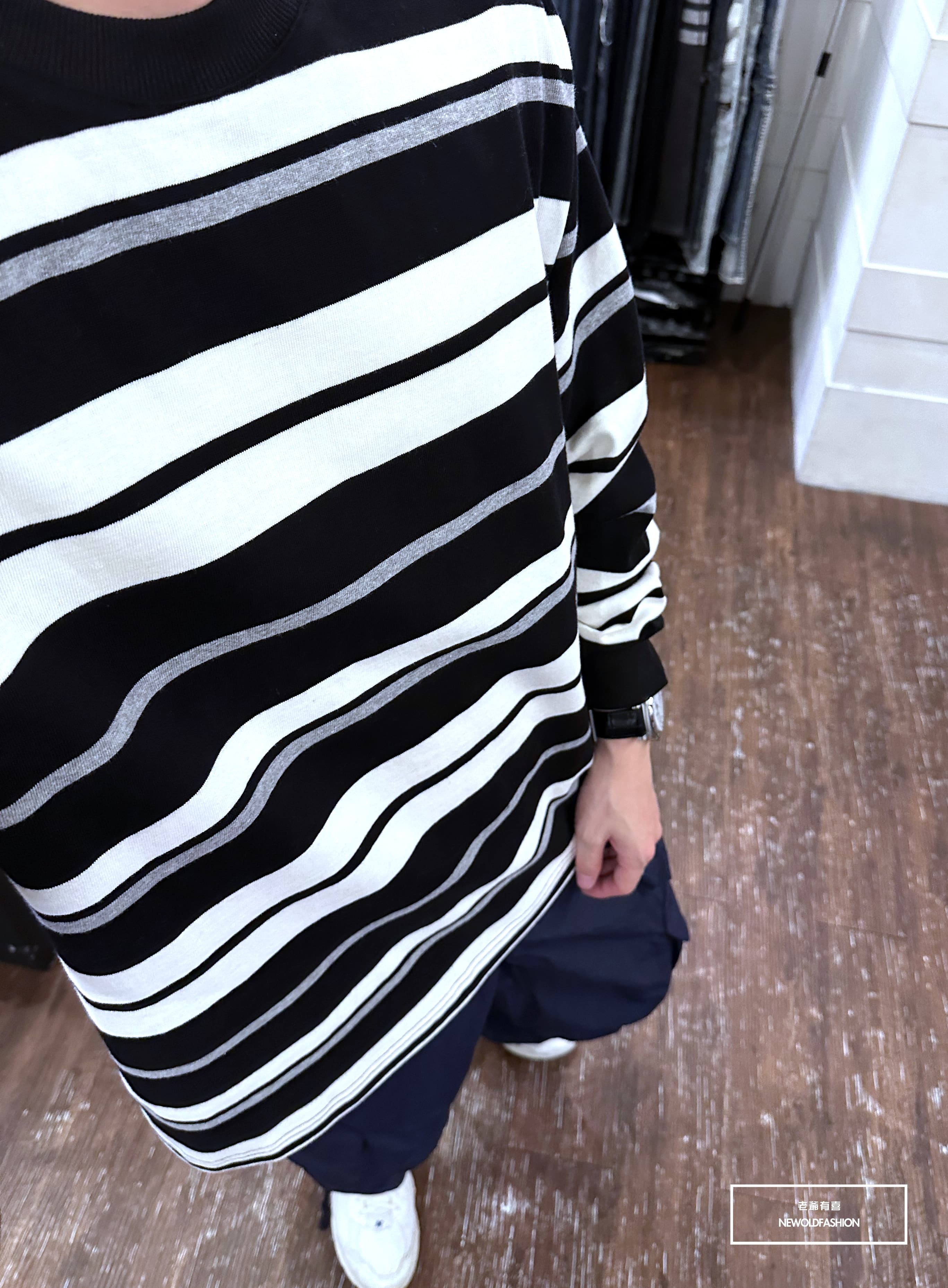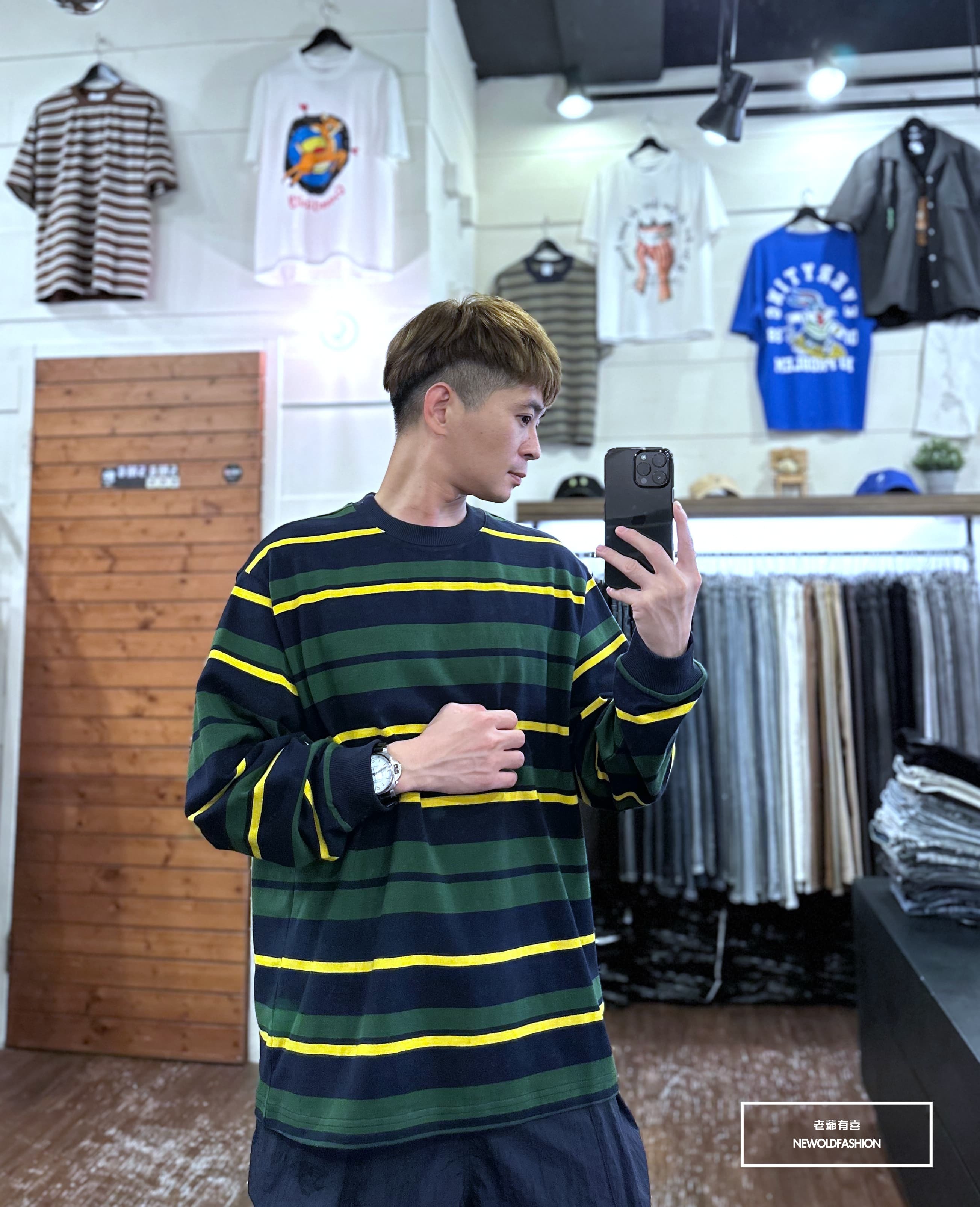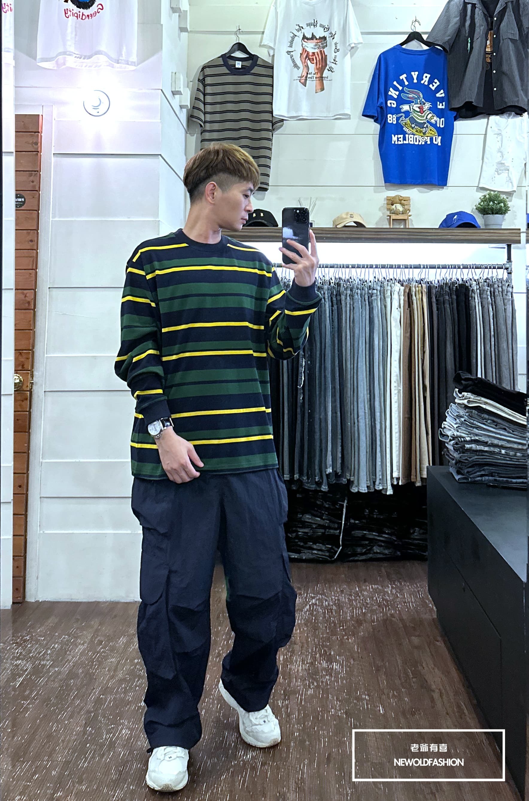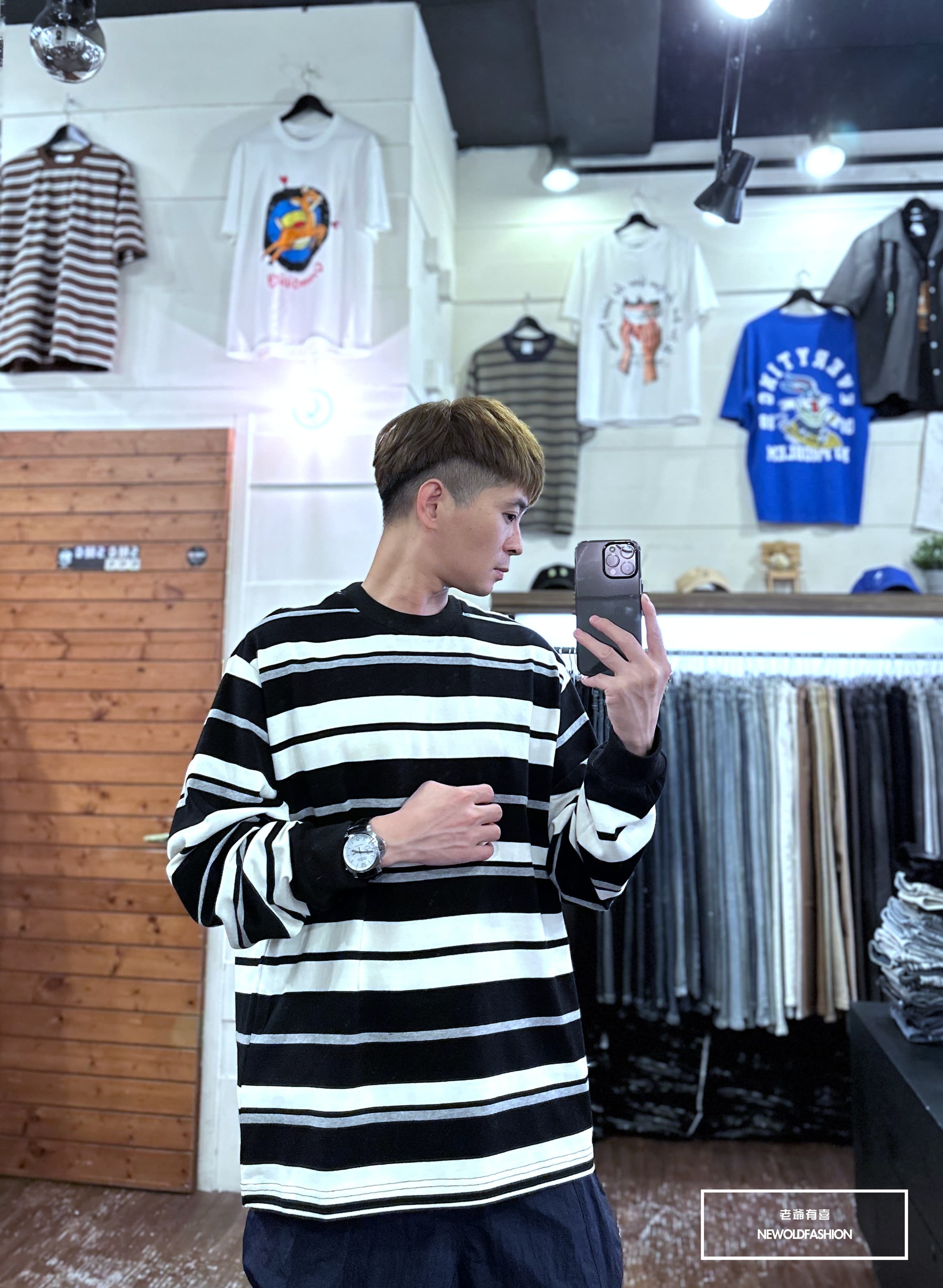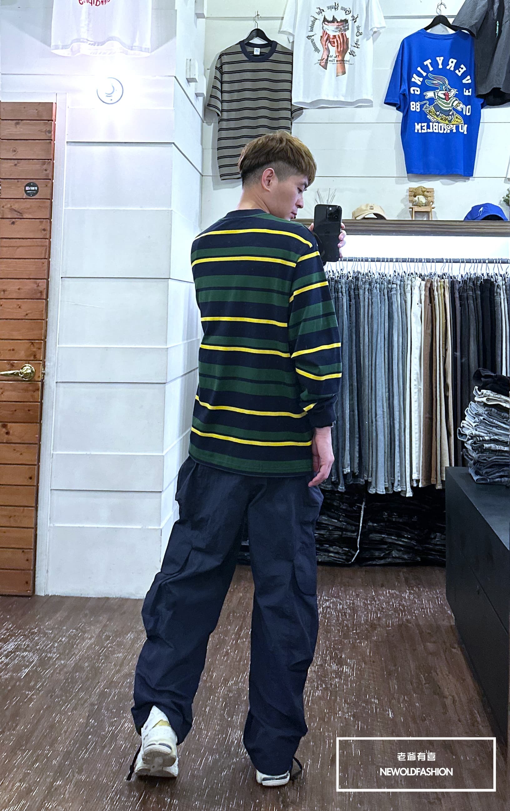 『新品上市』重磅撞色條紋圓領大學T-黑(NOF23091020)