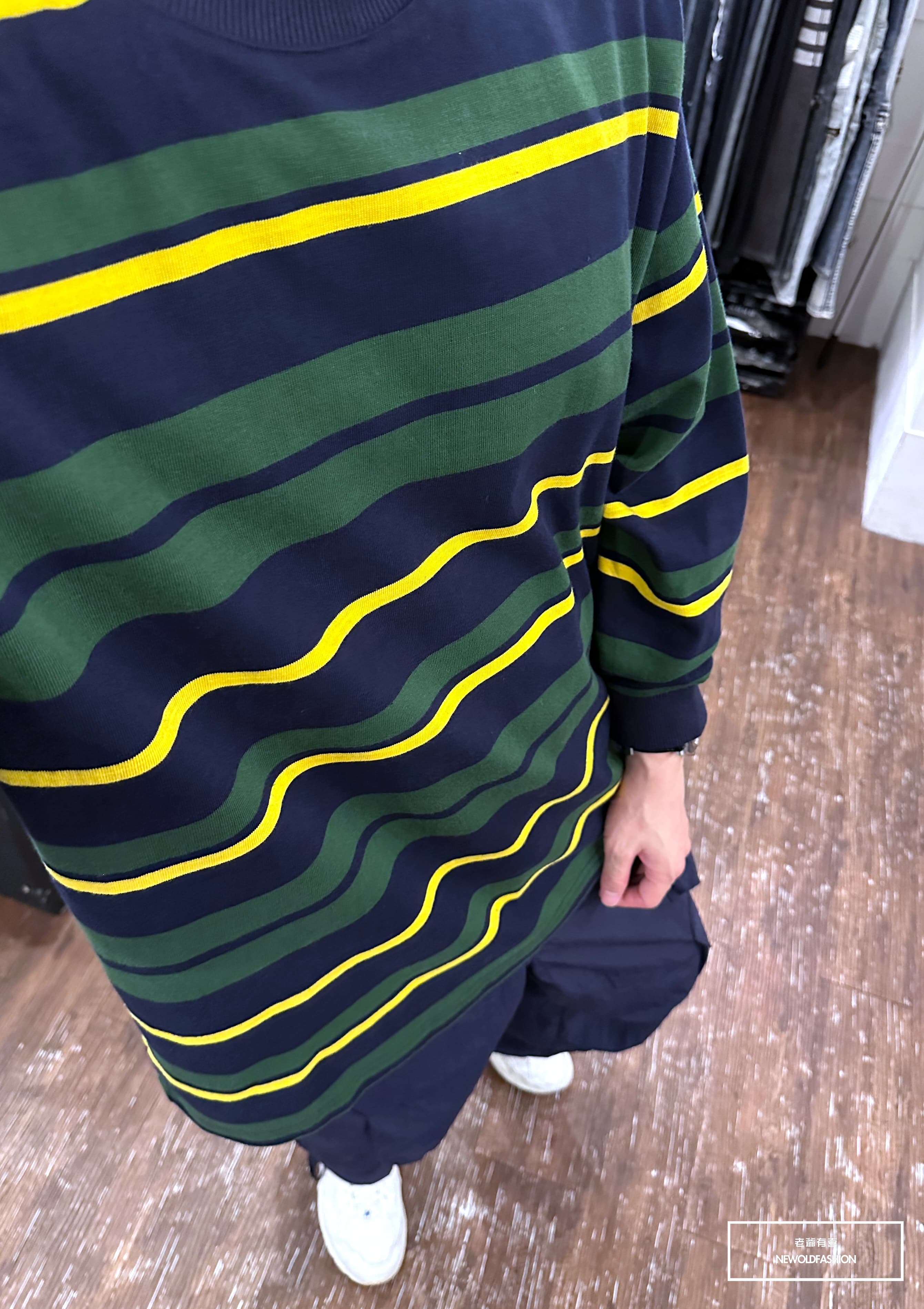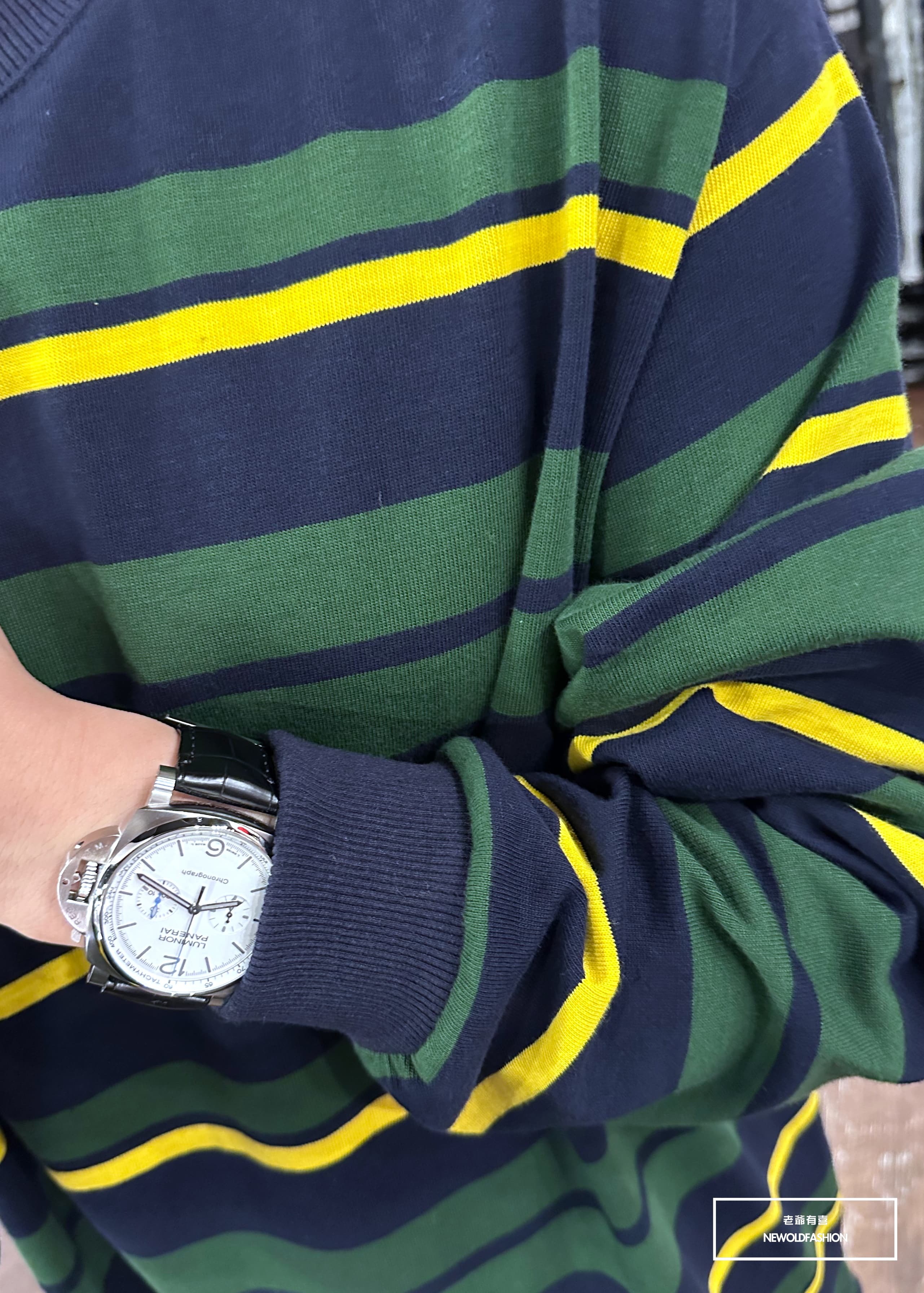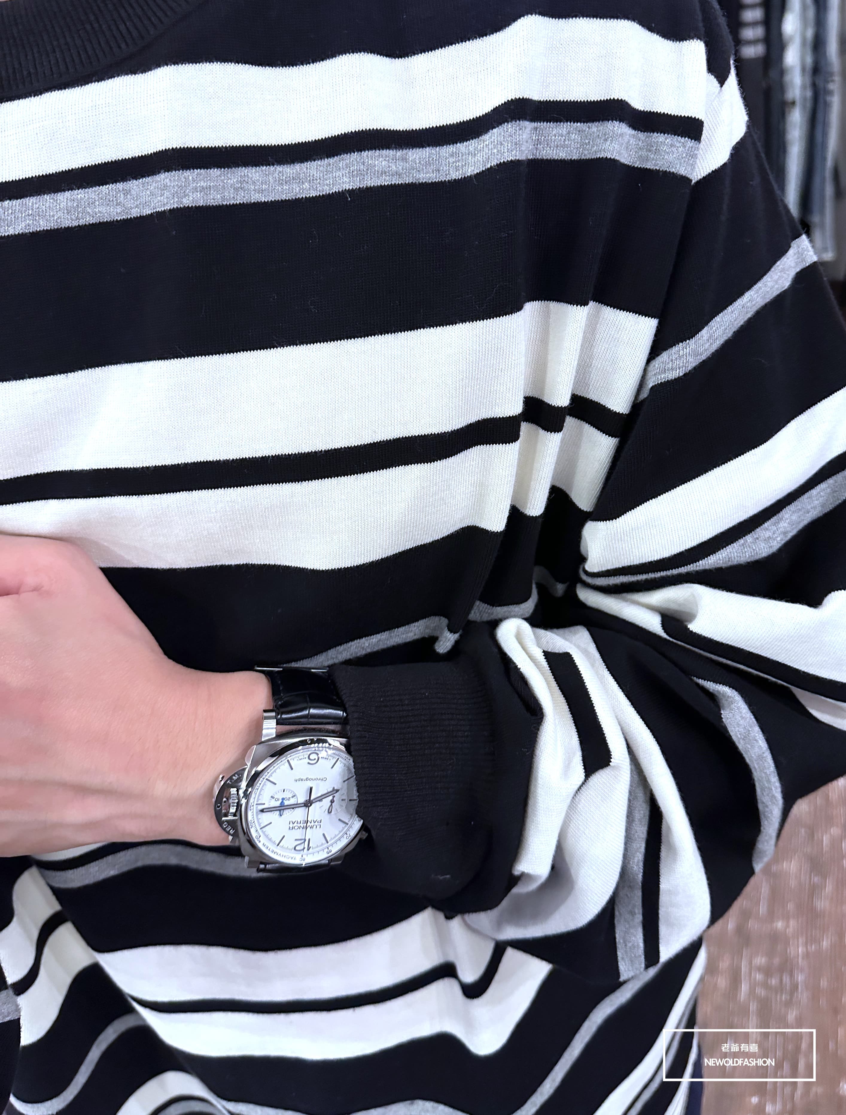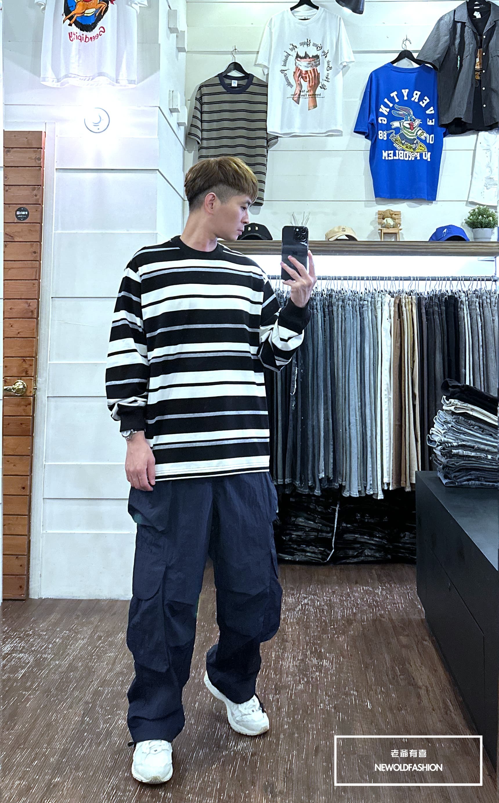 『新品上市』重磅撞色條紋圓領大學T-黑(NOF23091020)