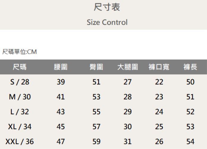 五個尺寸(S、M、L、XL、XXL)