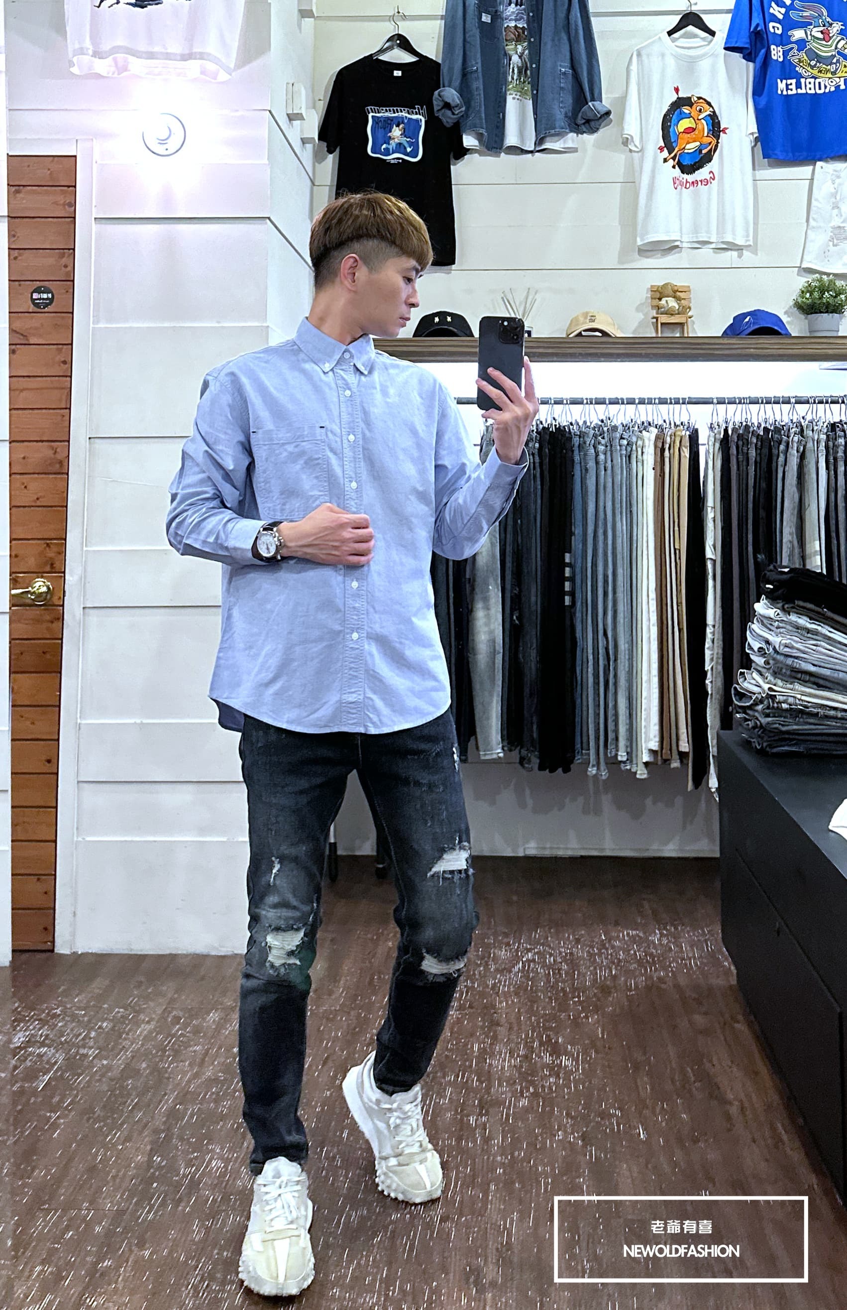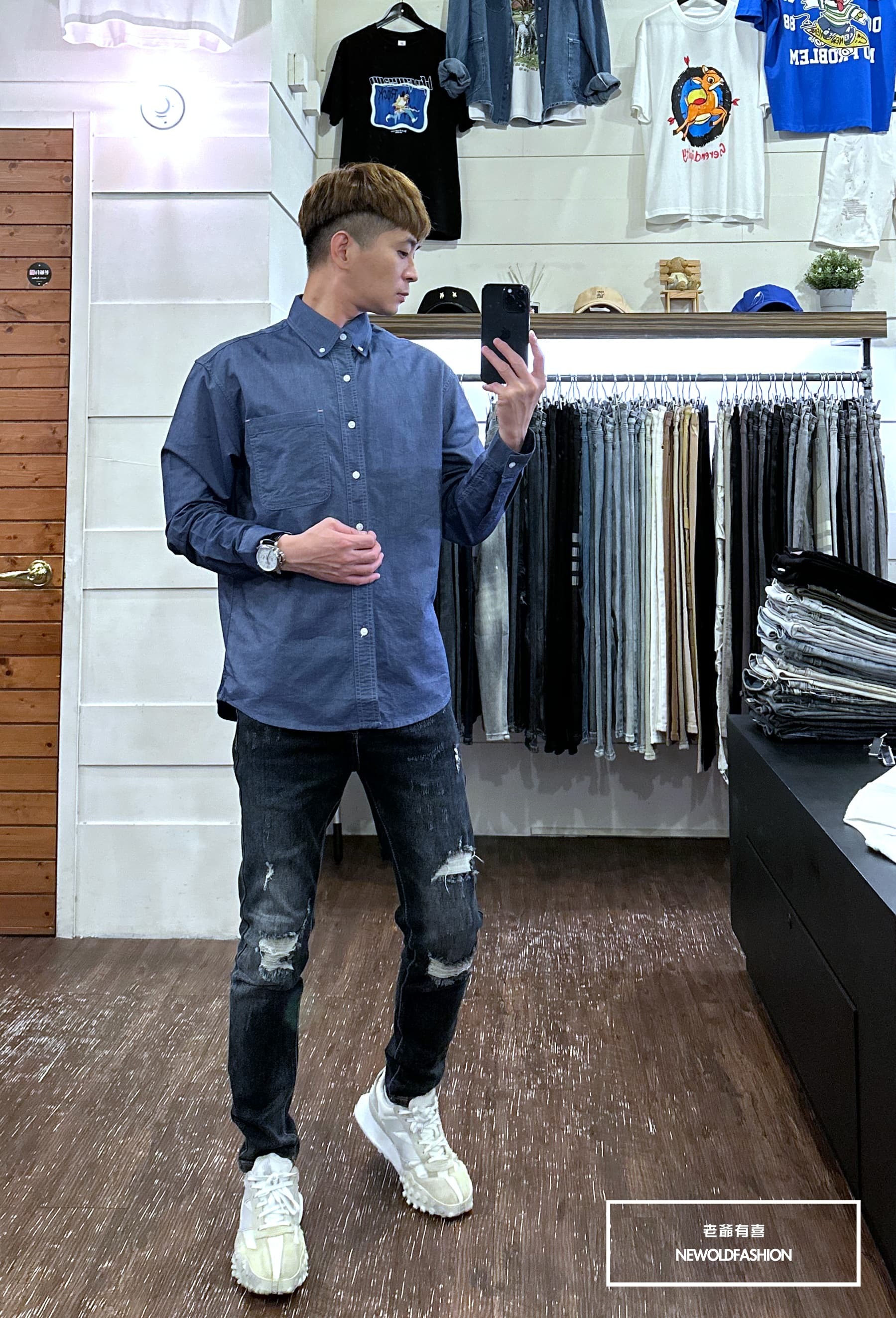 『新品上市』重磅跳色車線口袋襯衫-深藍(NOF23092311)