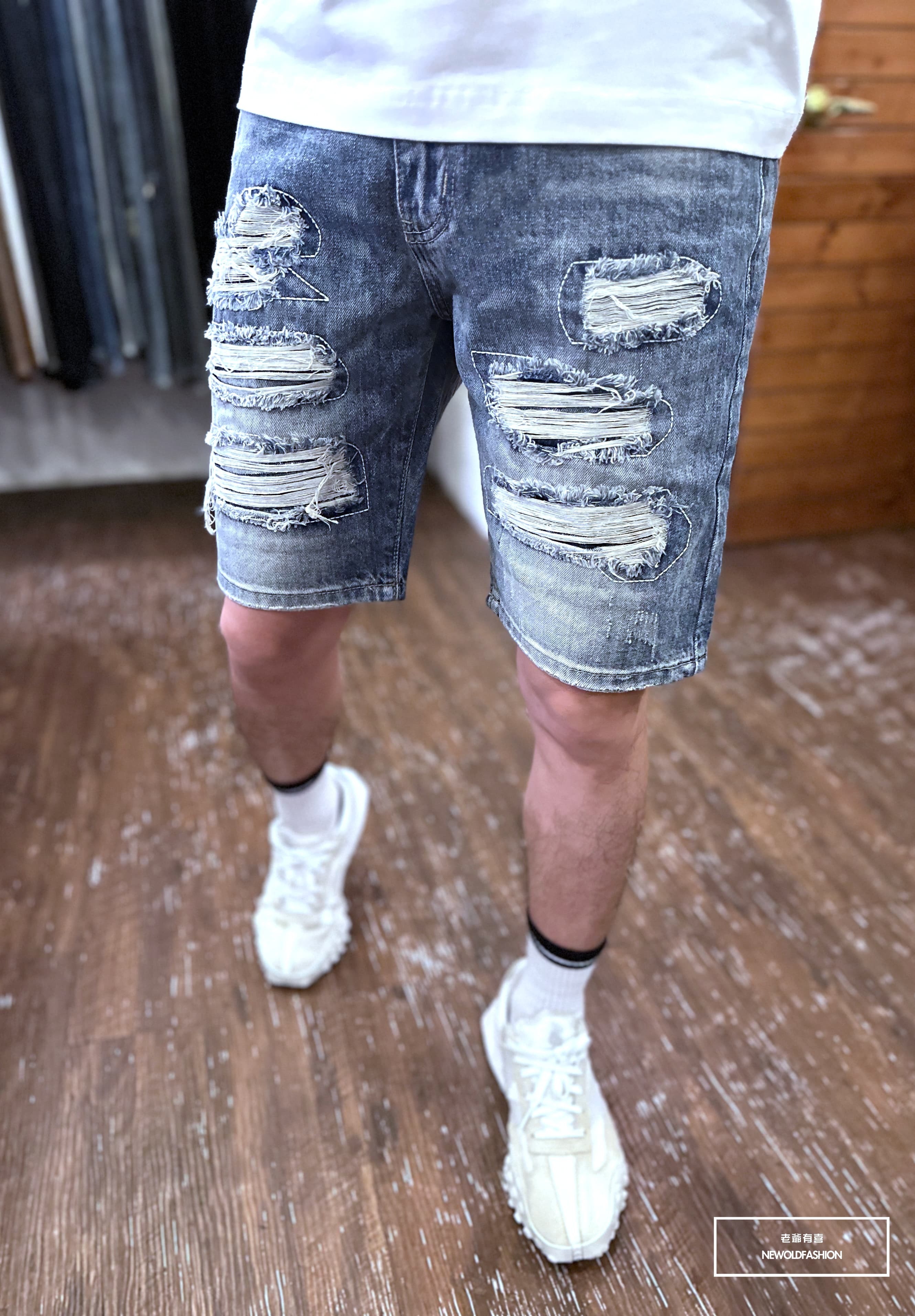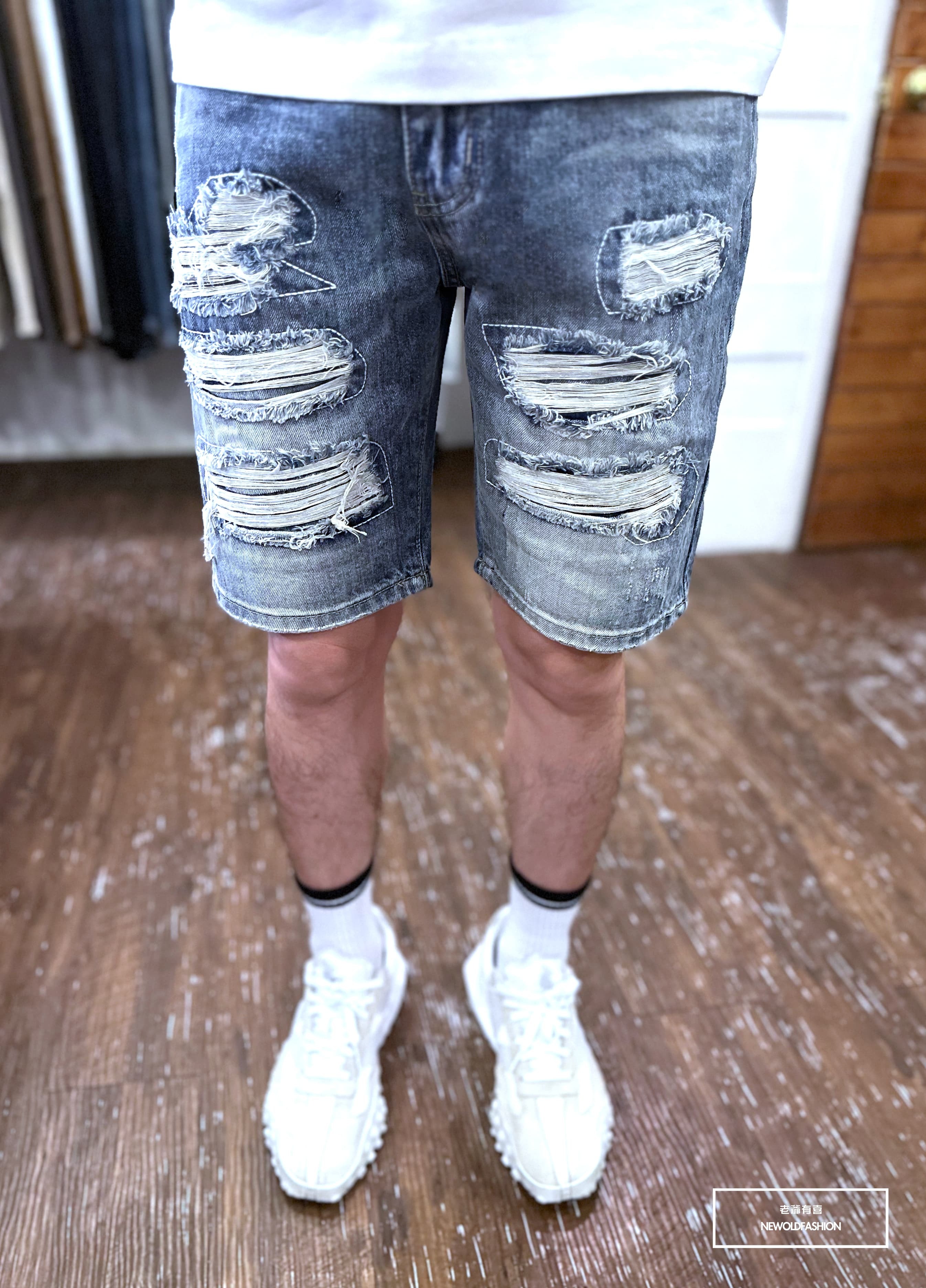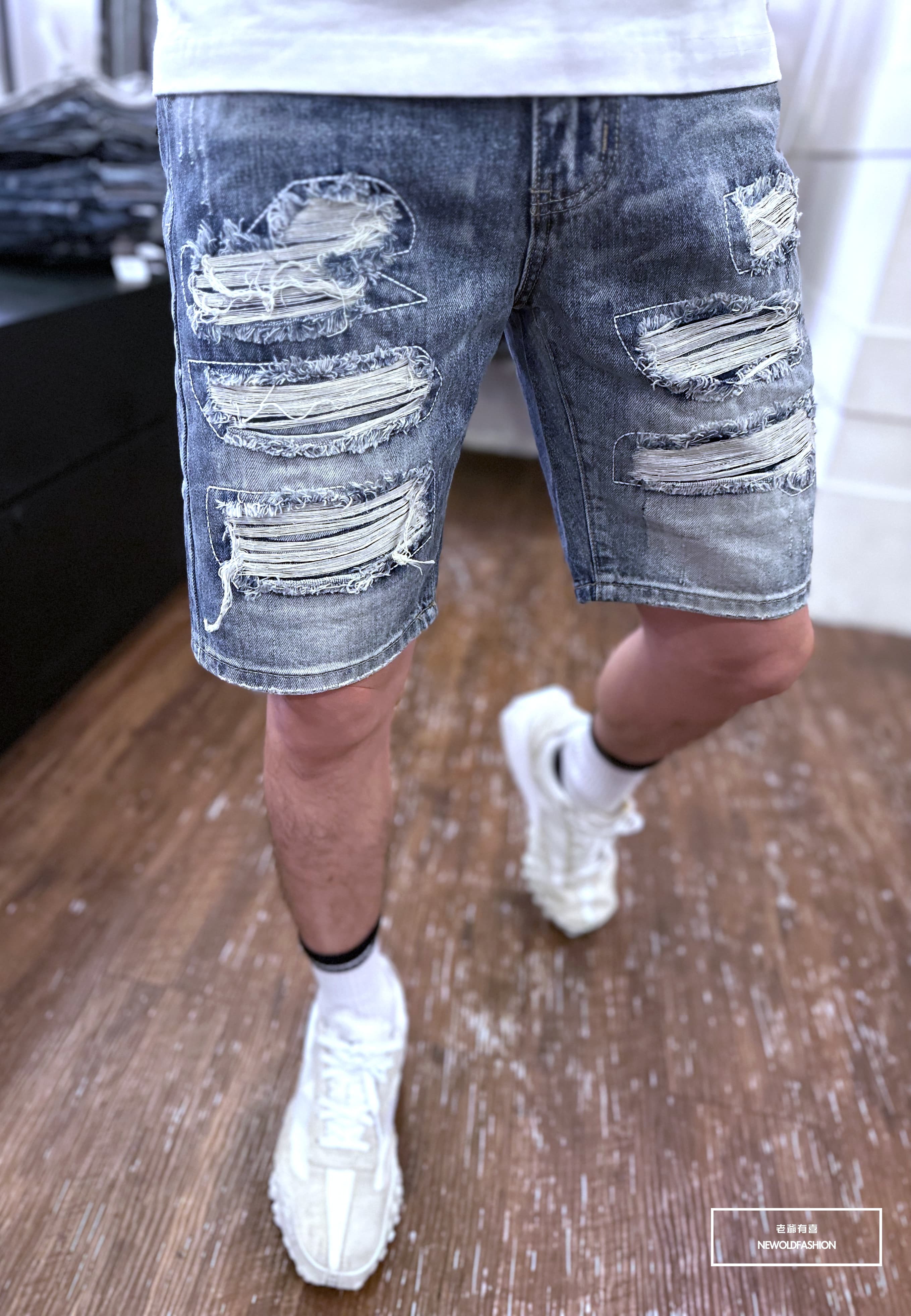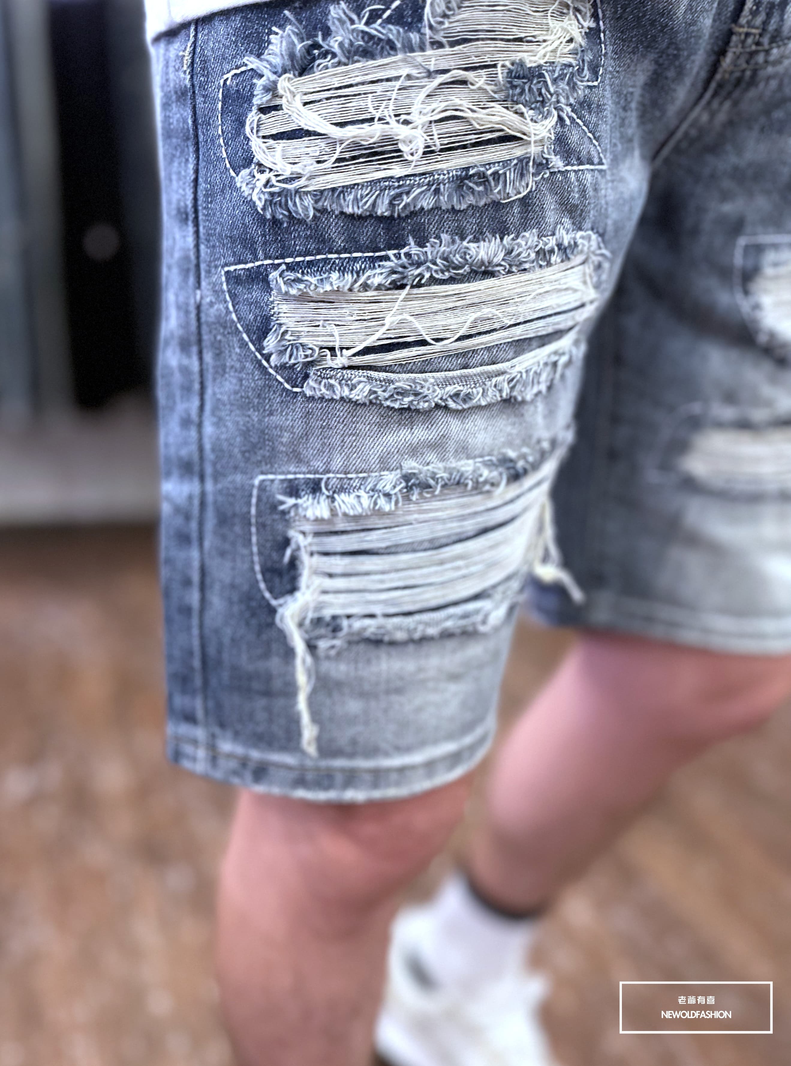 『新品上市』重磅六格不規則破壞牛仔短褲(NOF2303259)