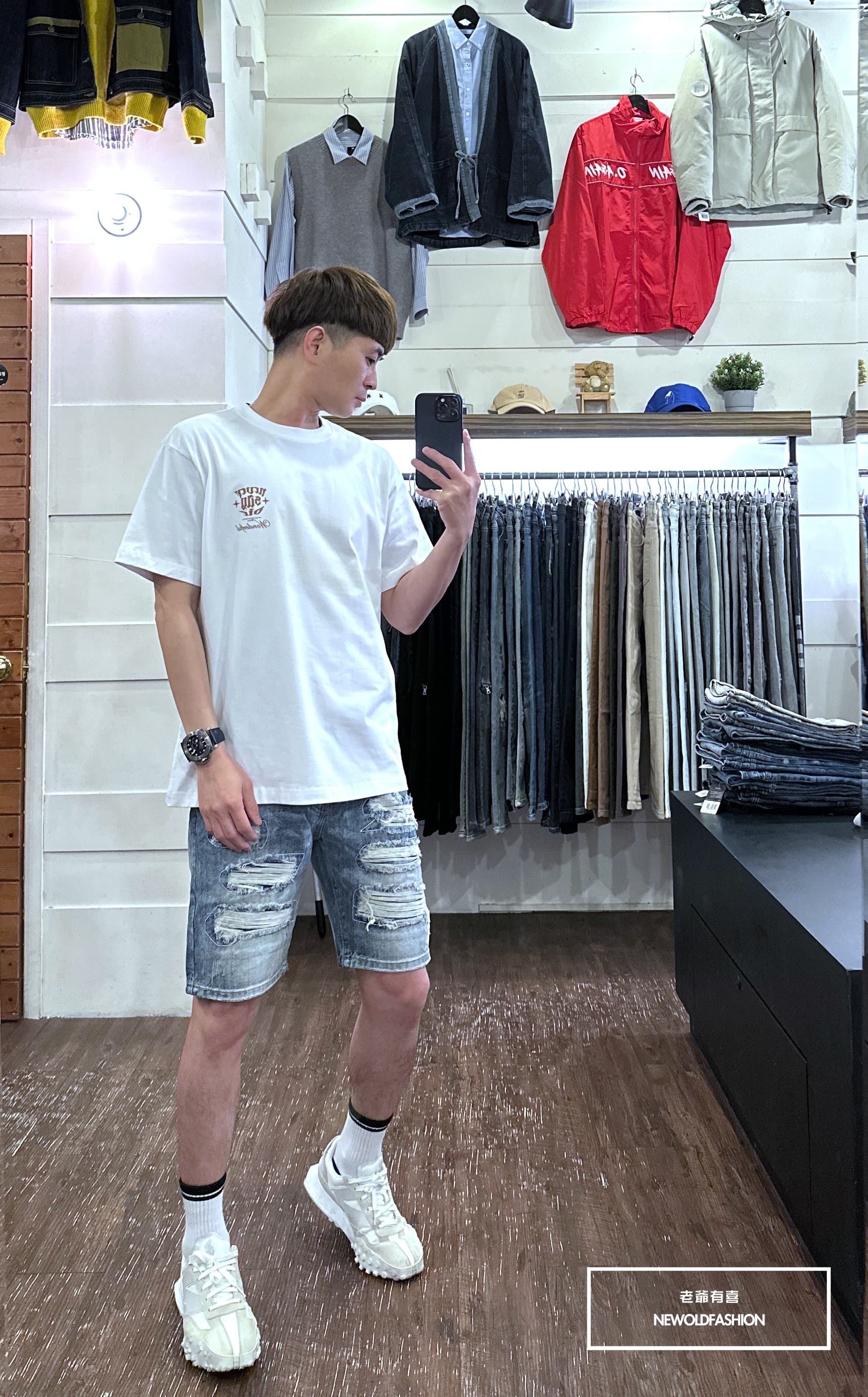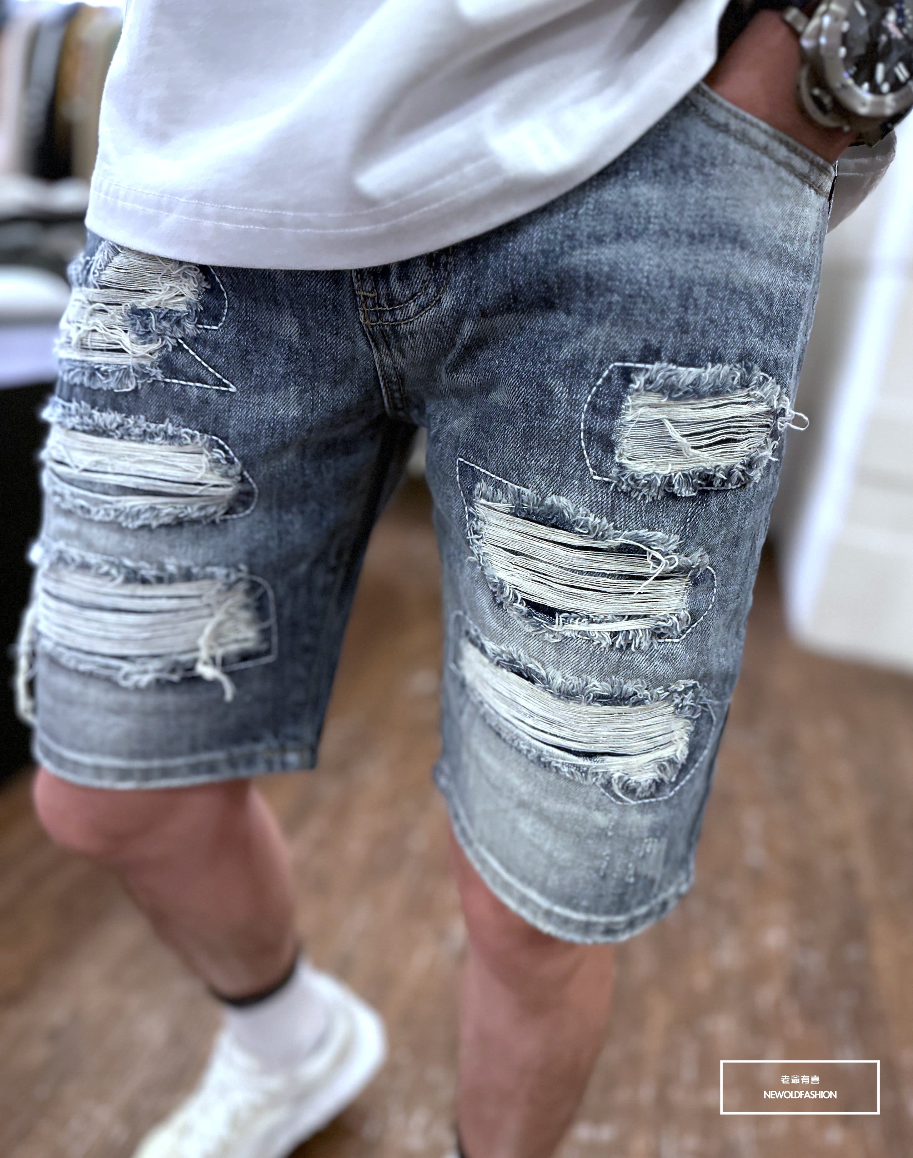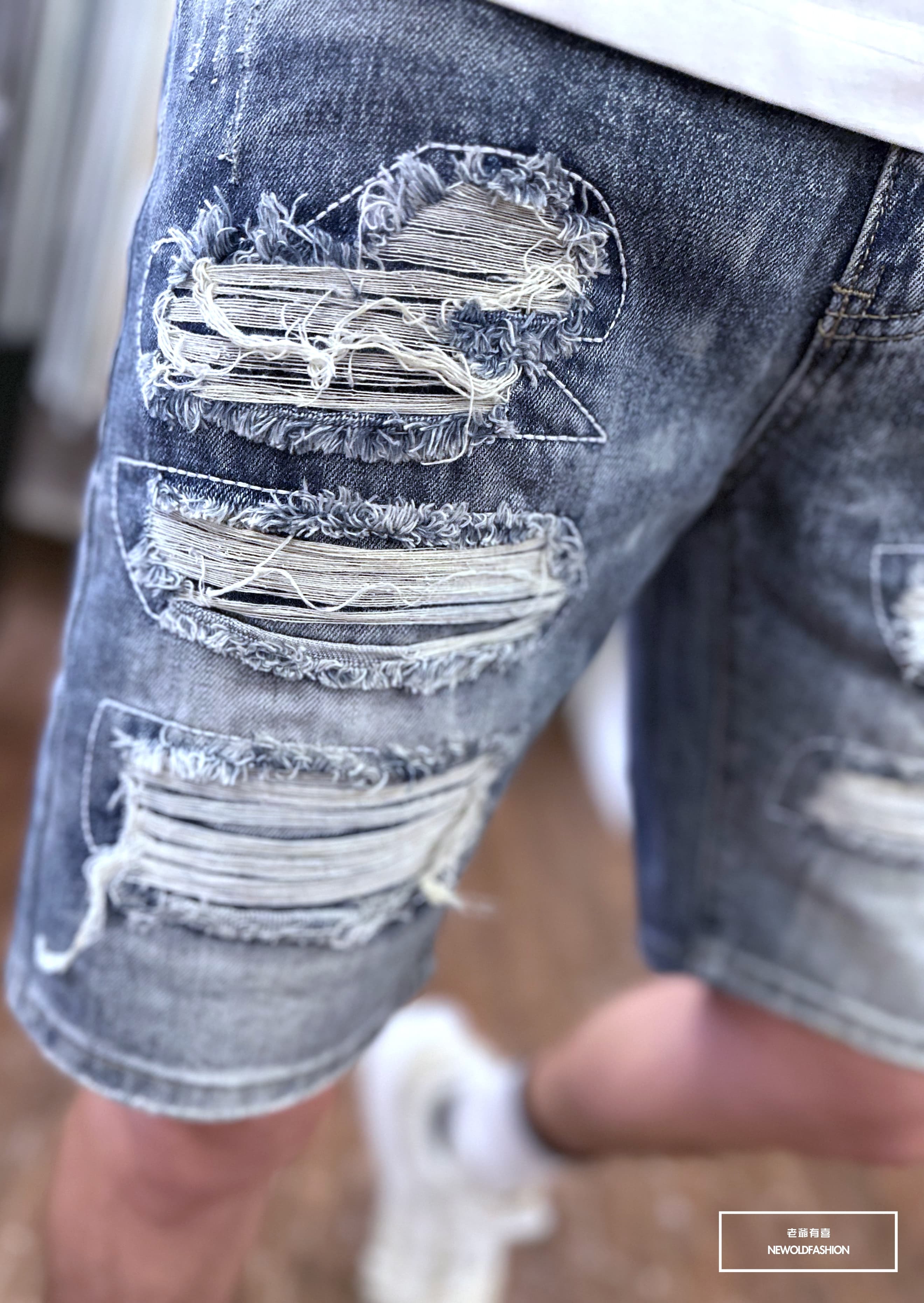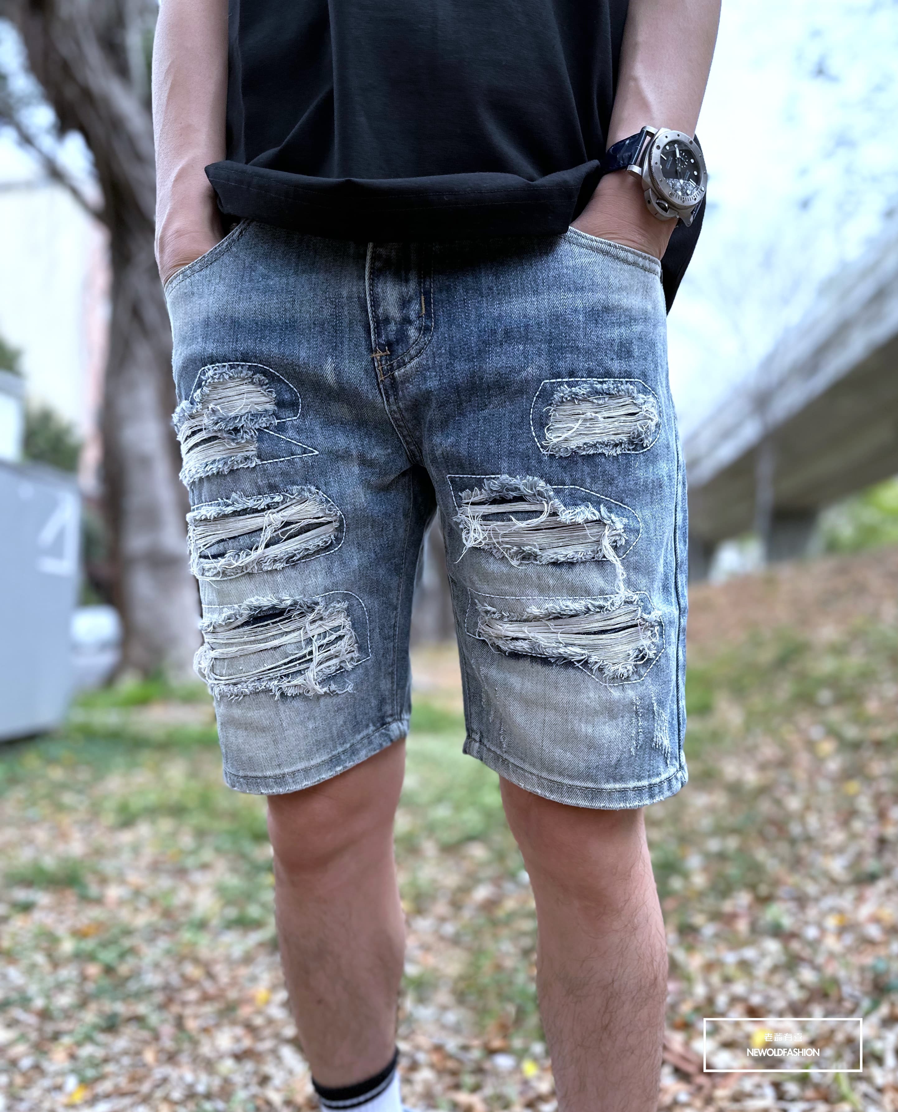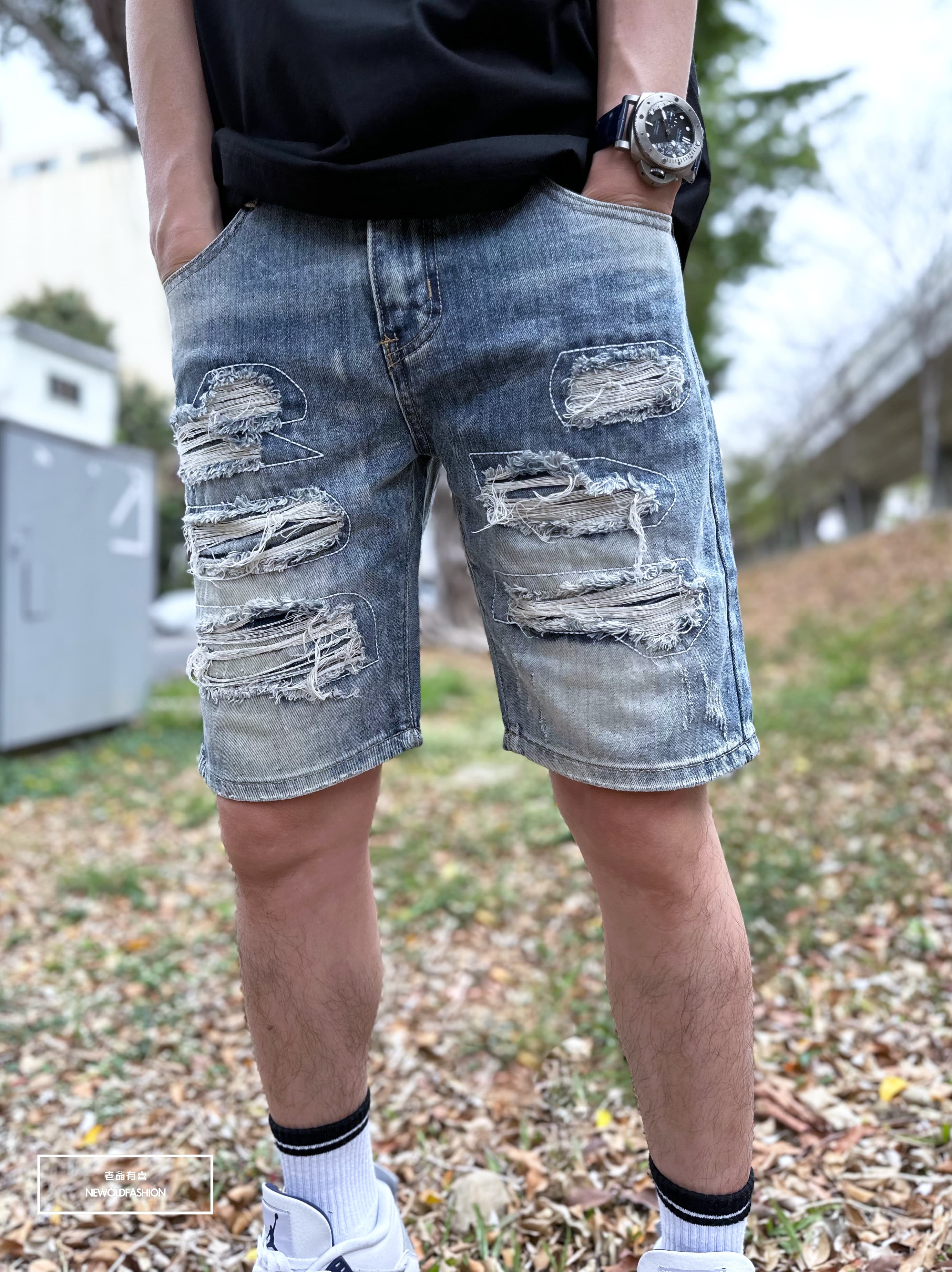 『新品上市』重磅六格不規則破壞牛仔短褲(NOF2303259)