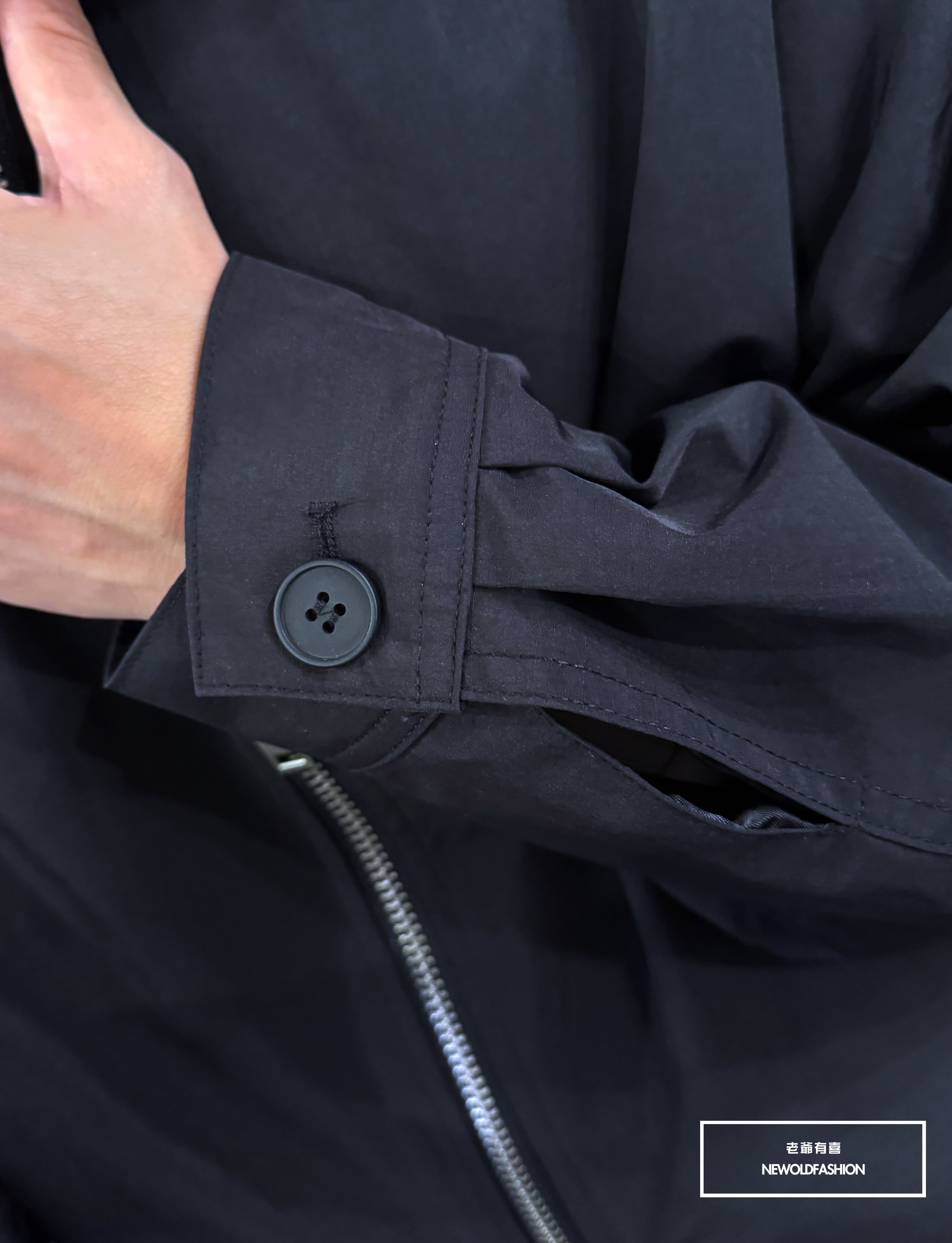 簡約素面手袖打折鈕扣造型,雙頭拉鏈設計!
