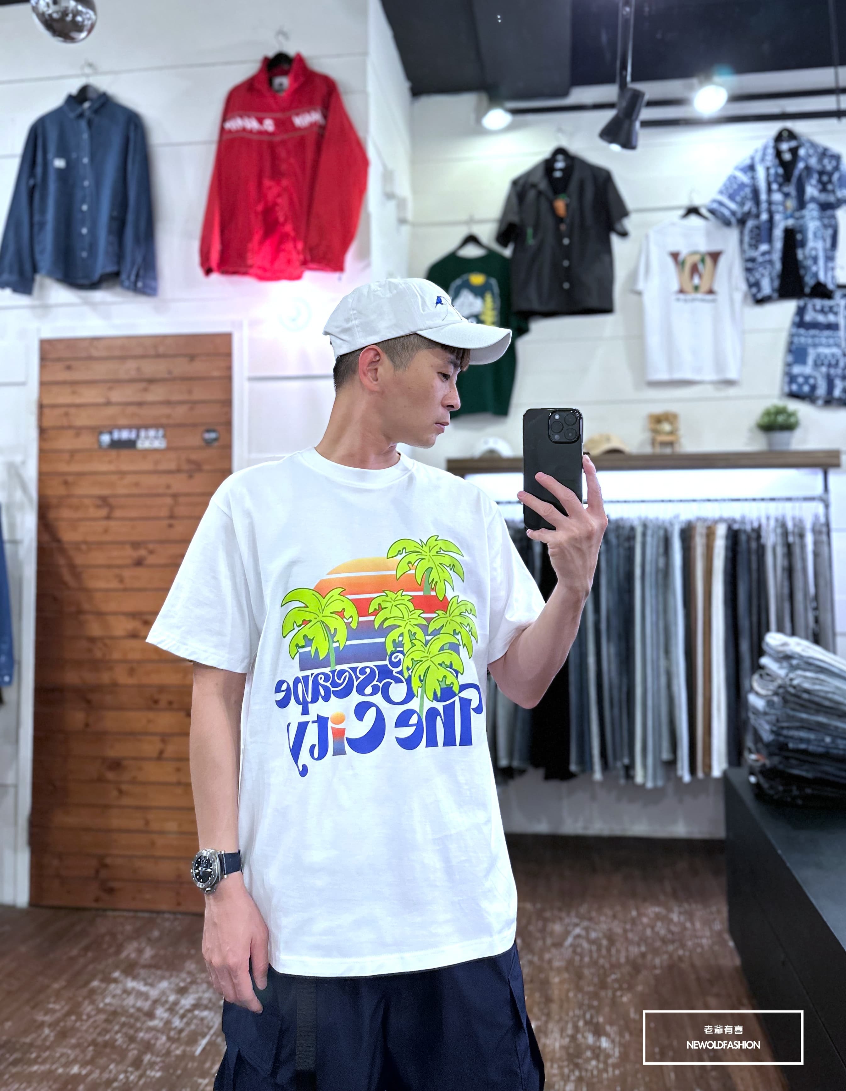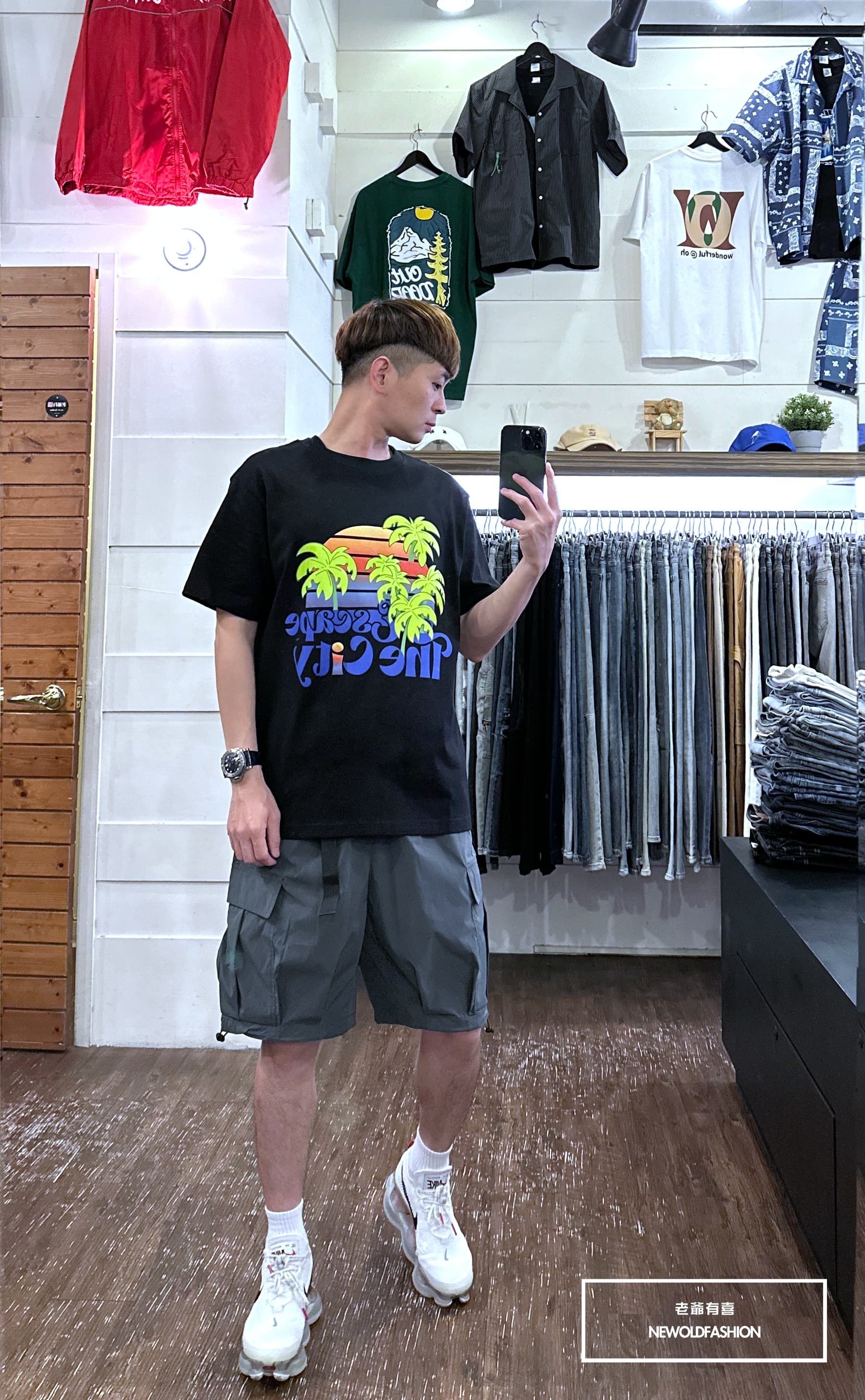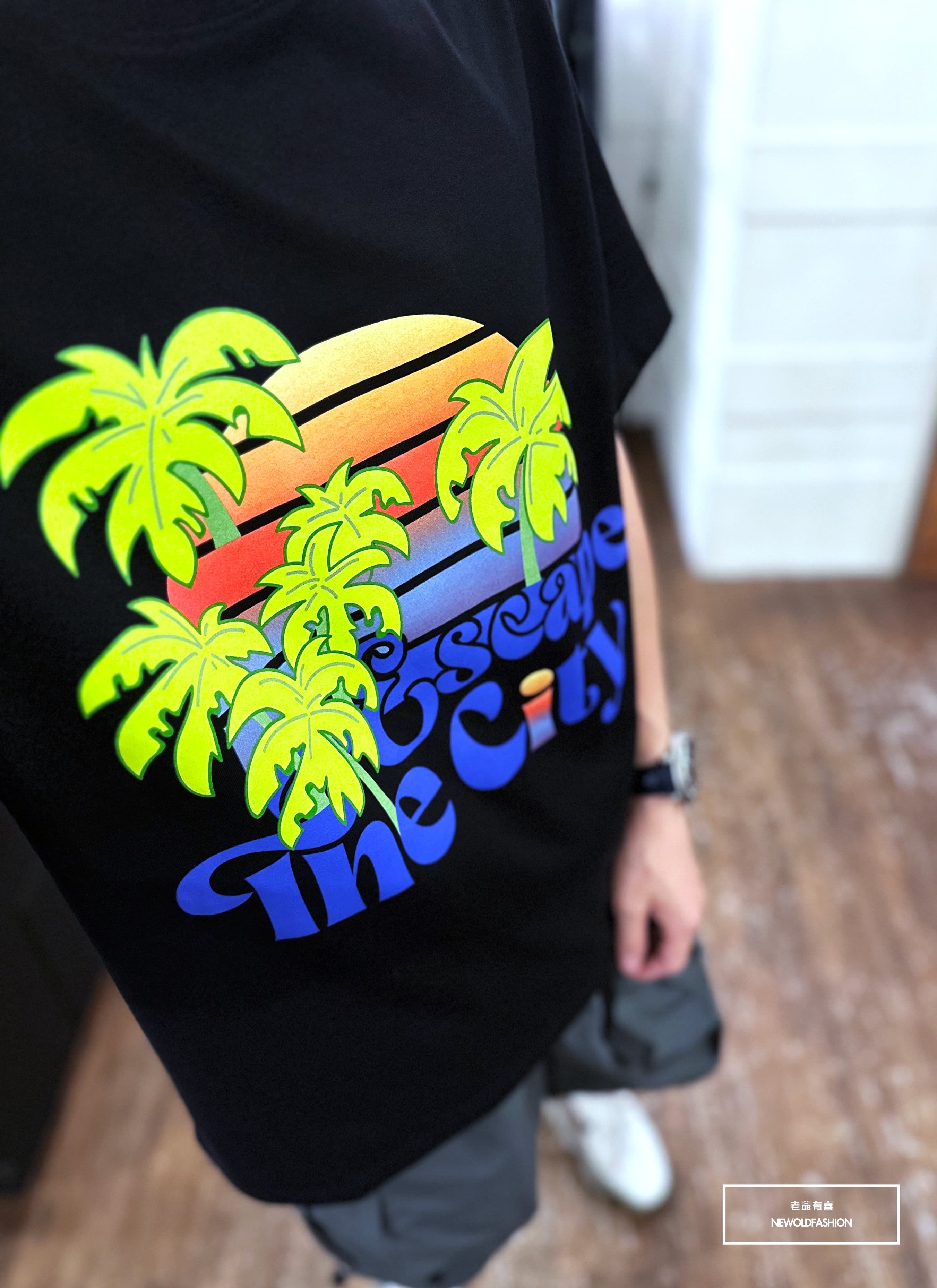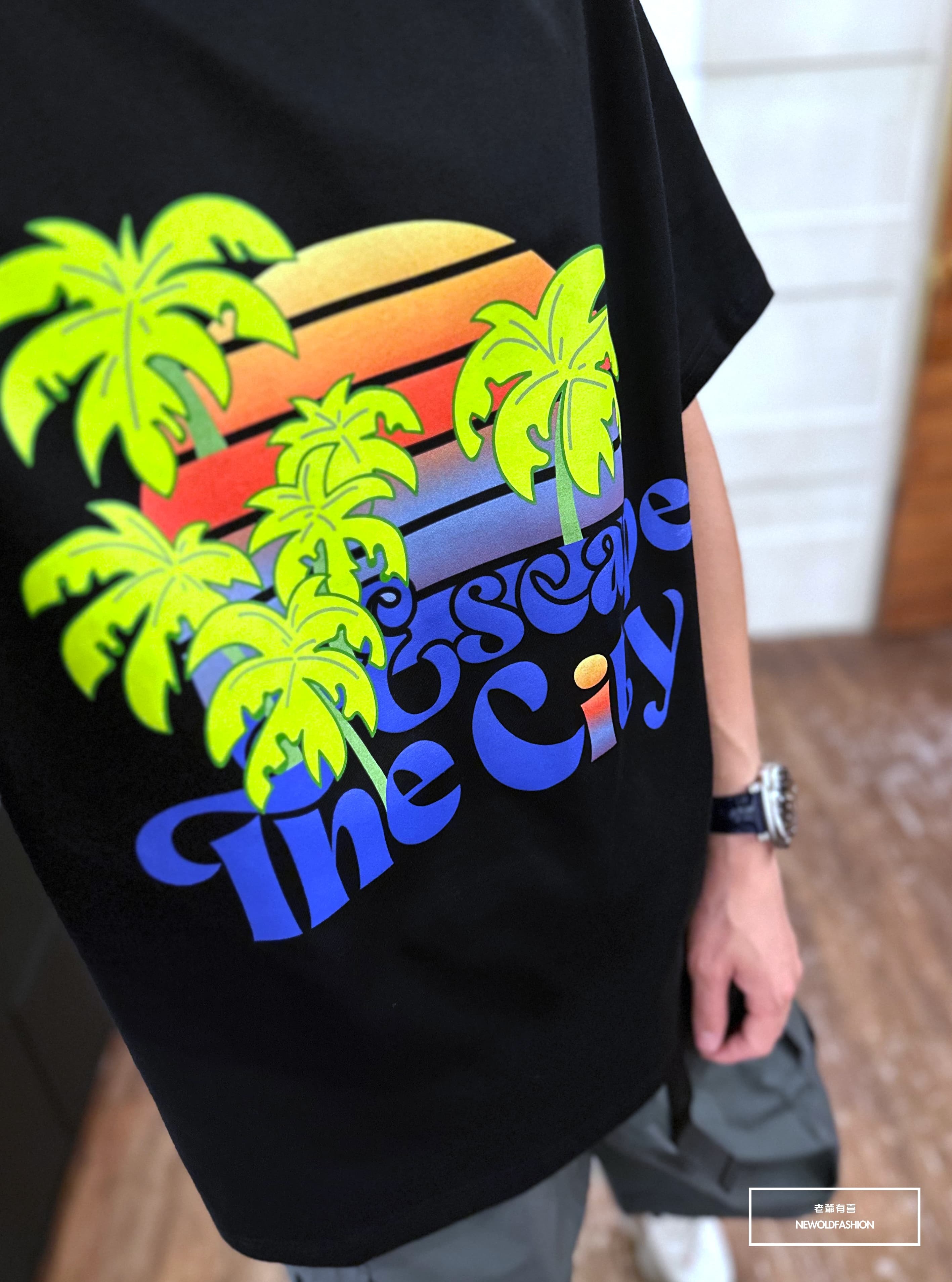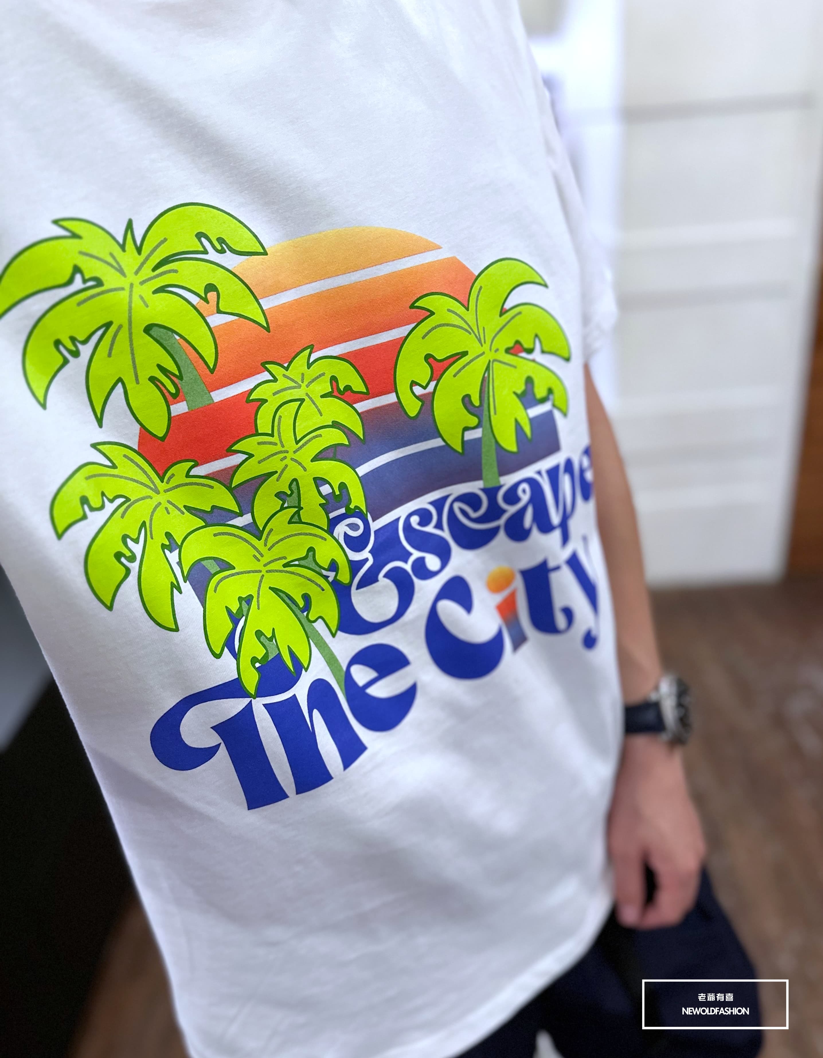 『新品上市』重磅漸層椰子樹短T(NOF23052696)-白