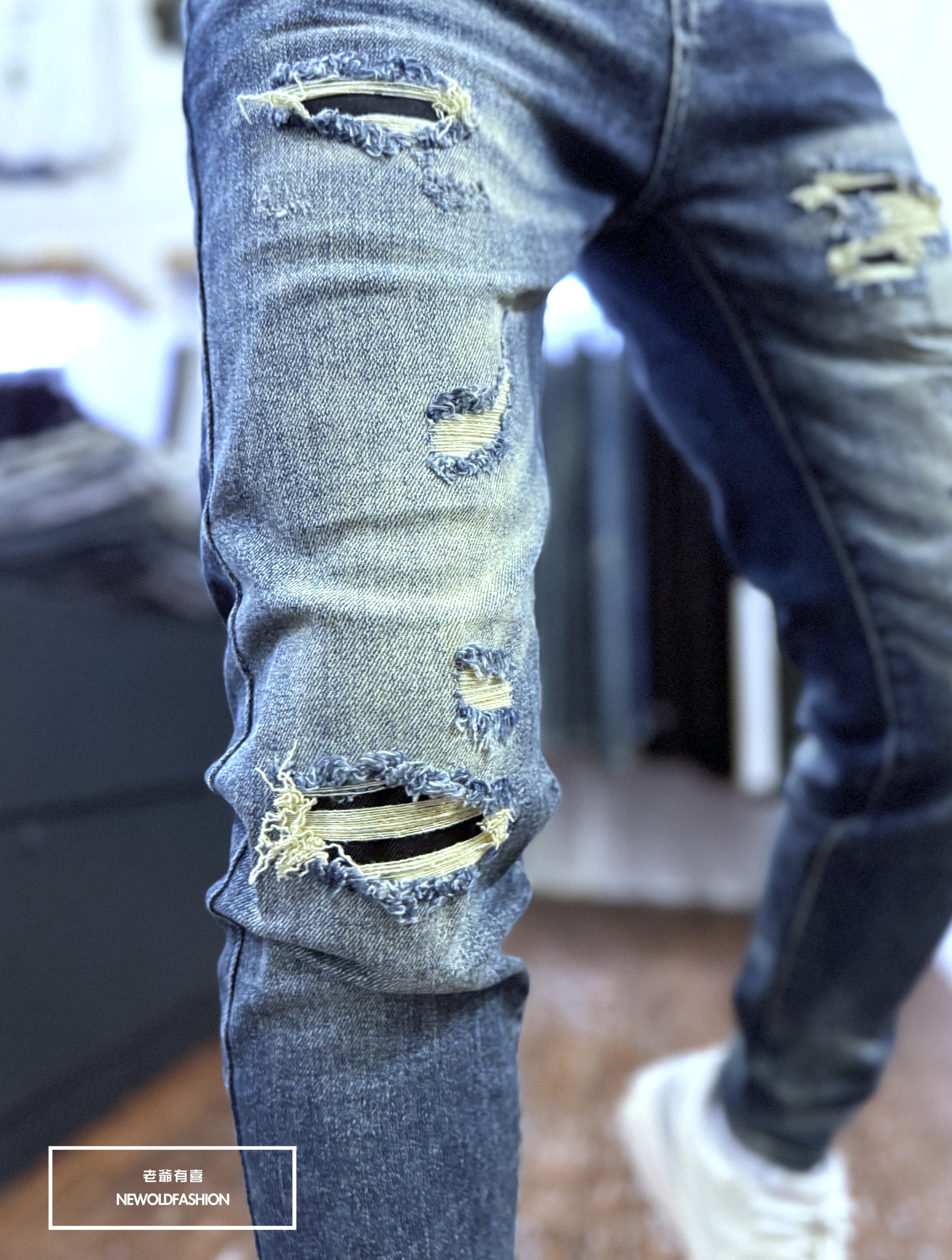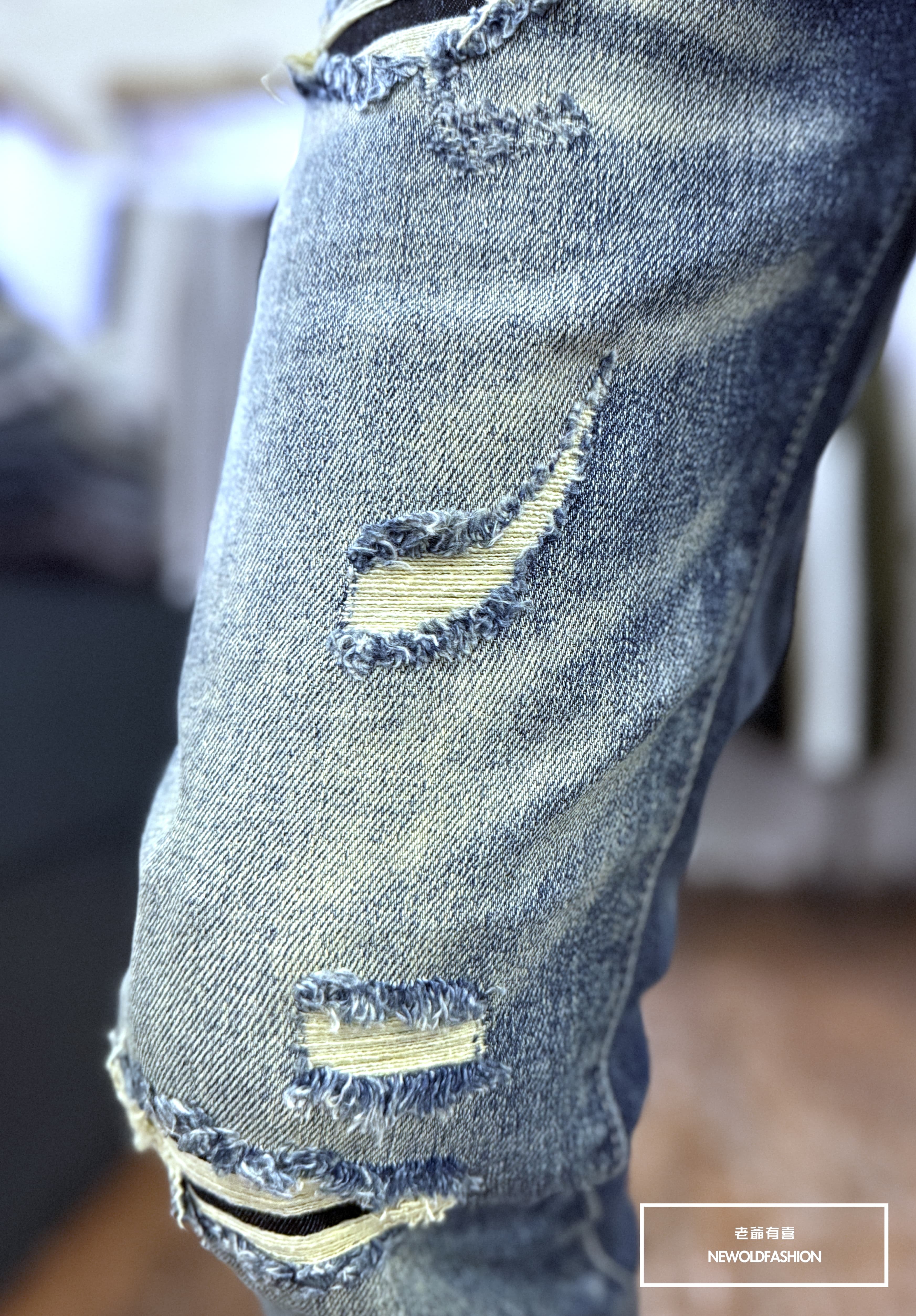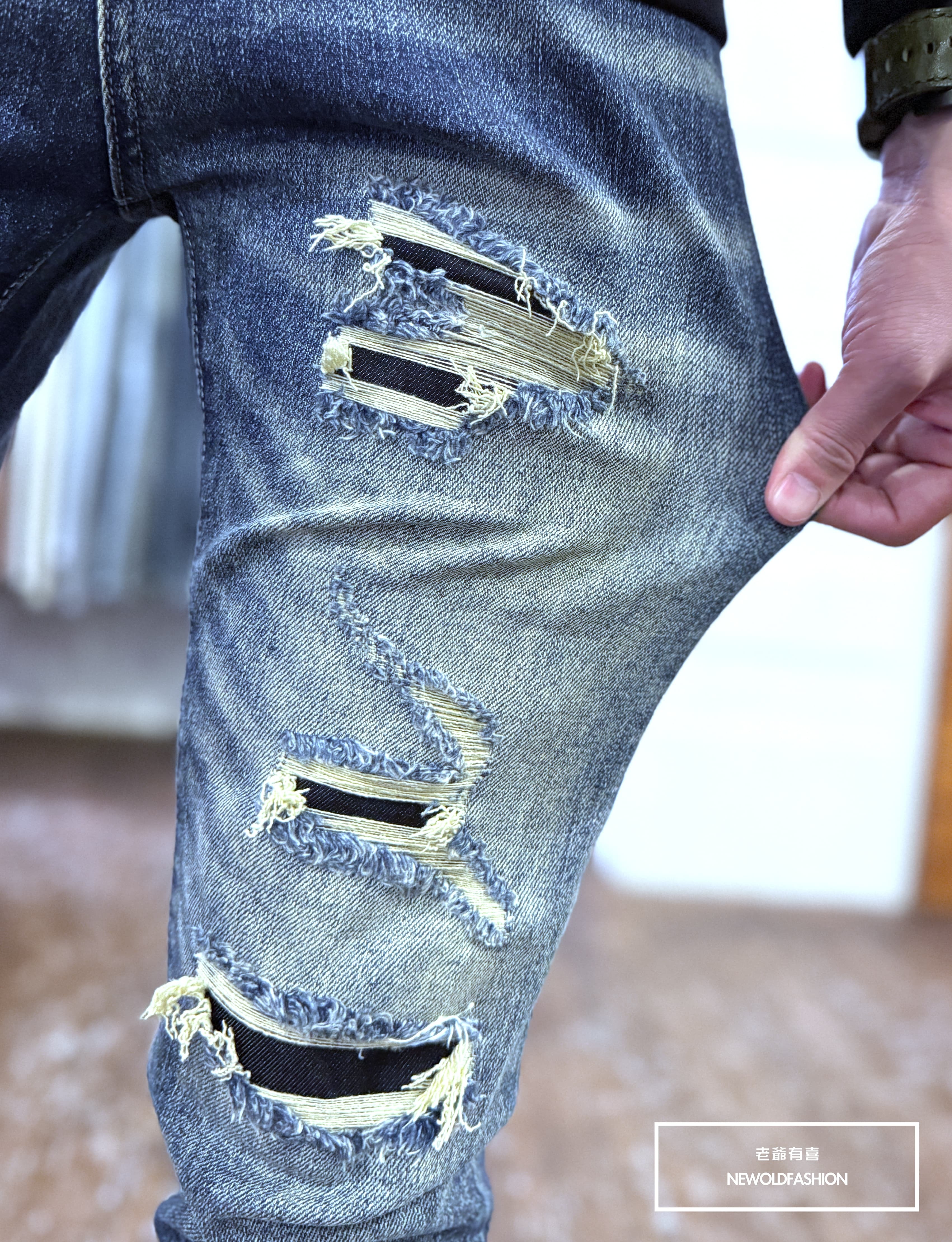 不規則破壞補丁仿舊刷痕造型設計!