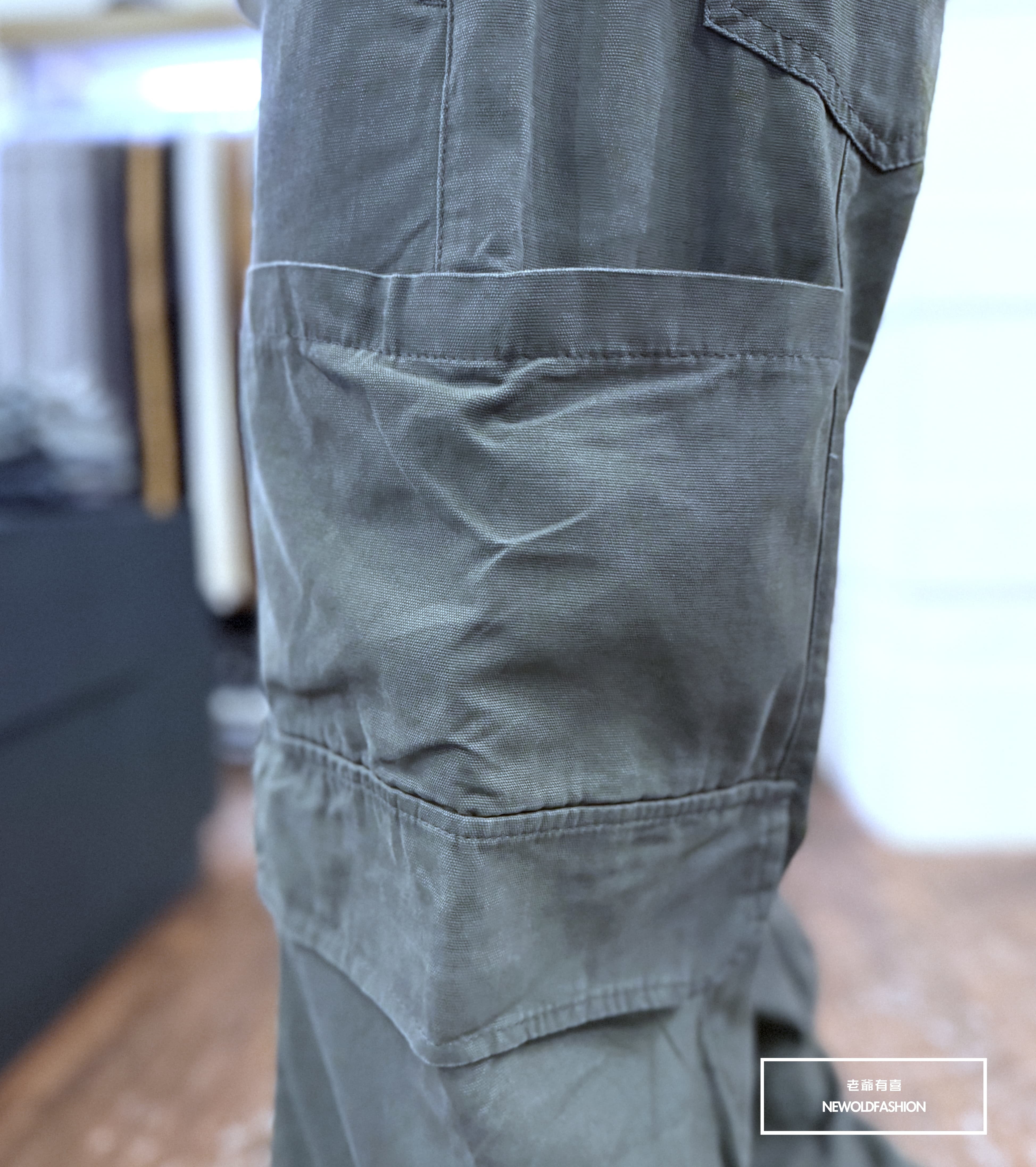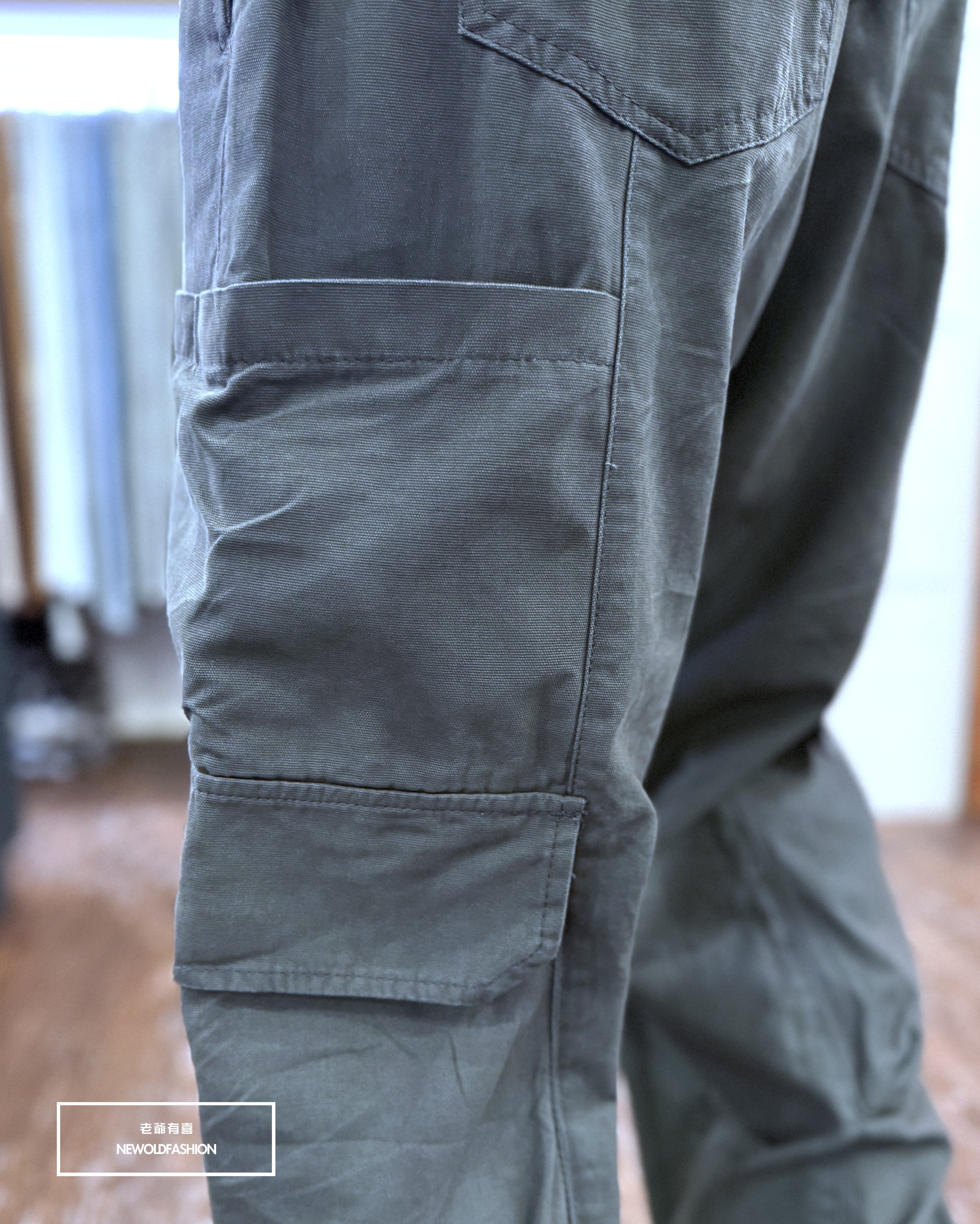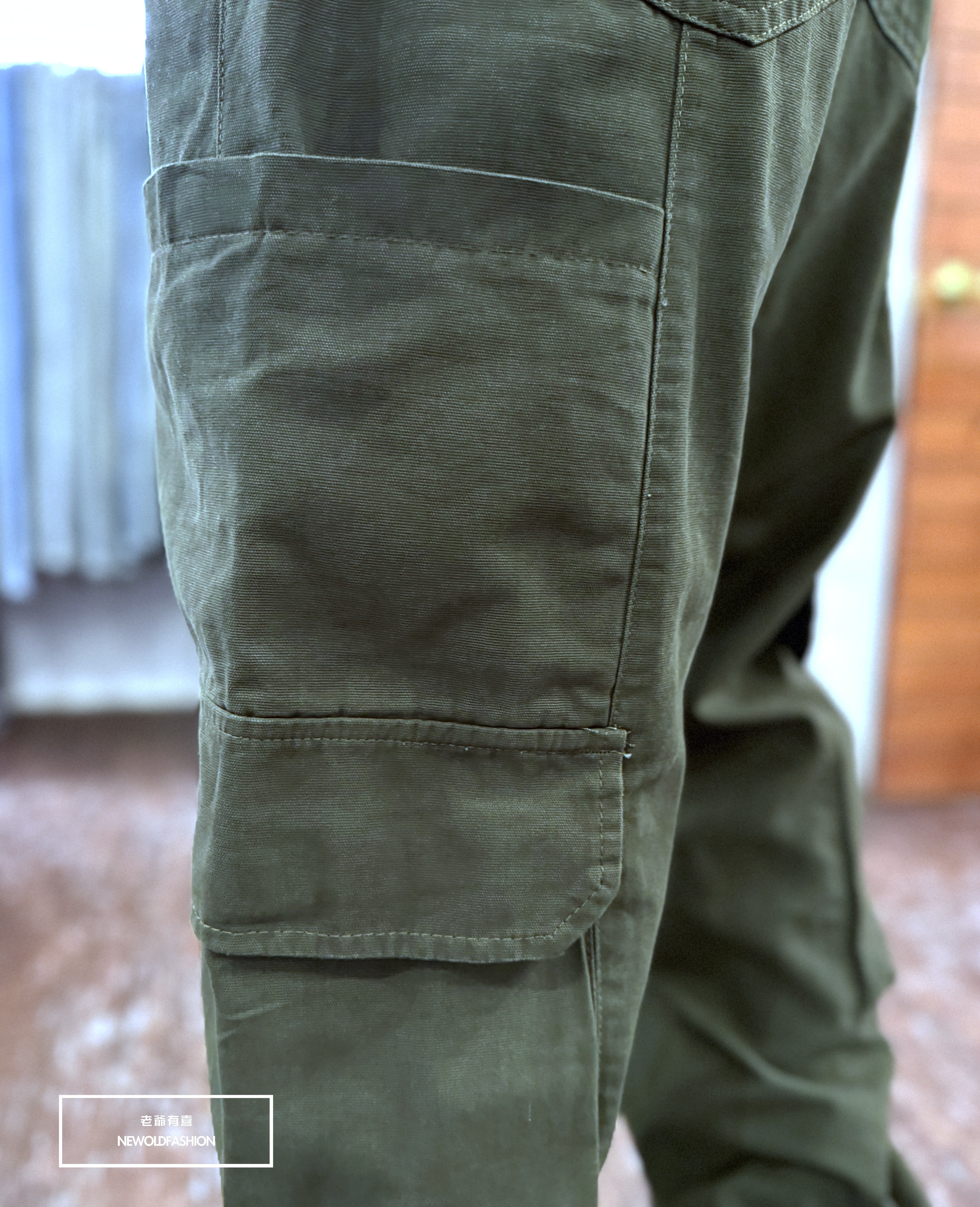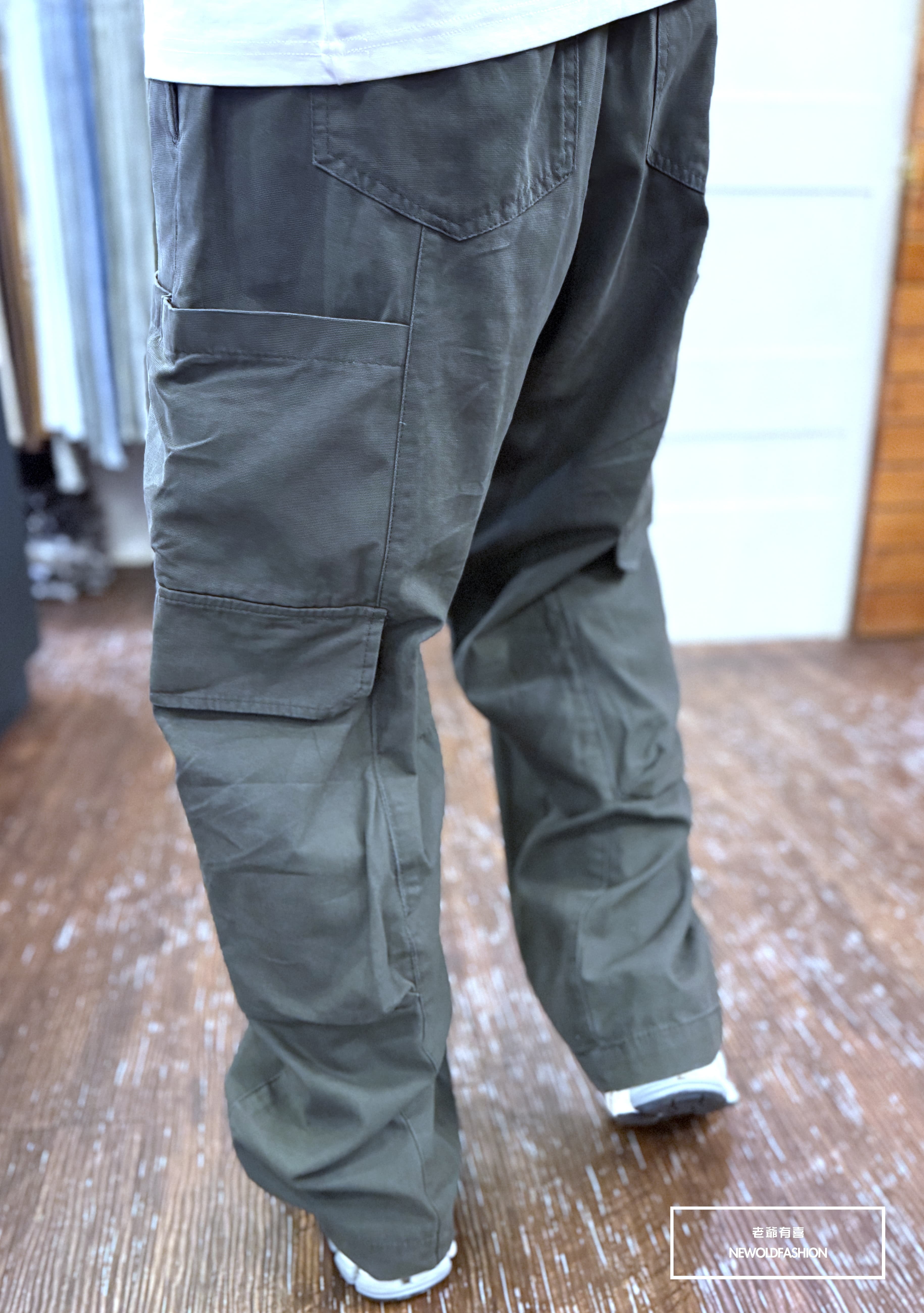 雙側多口袋造型,褲頭後鬆緊設計