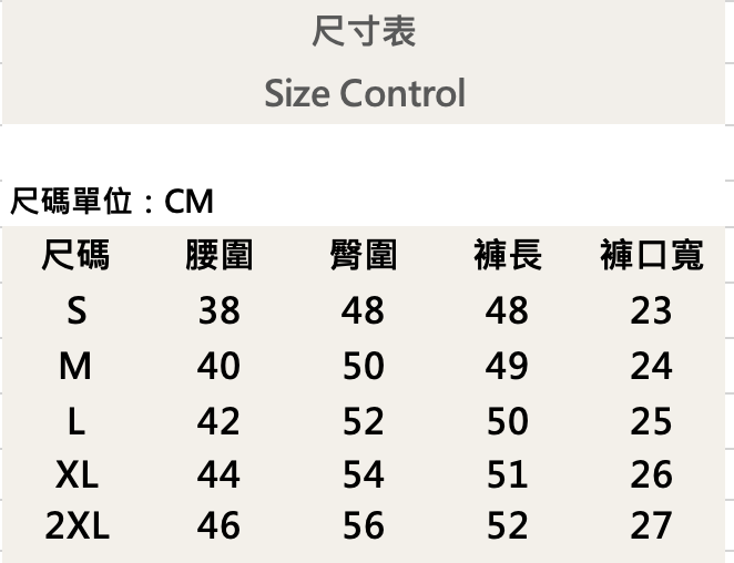 五個尺寸(S、M、L、XL、XXL)