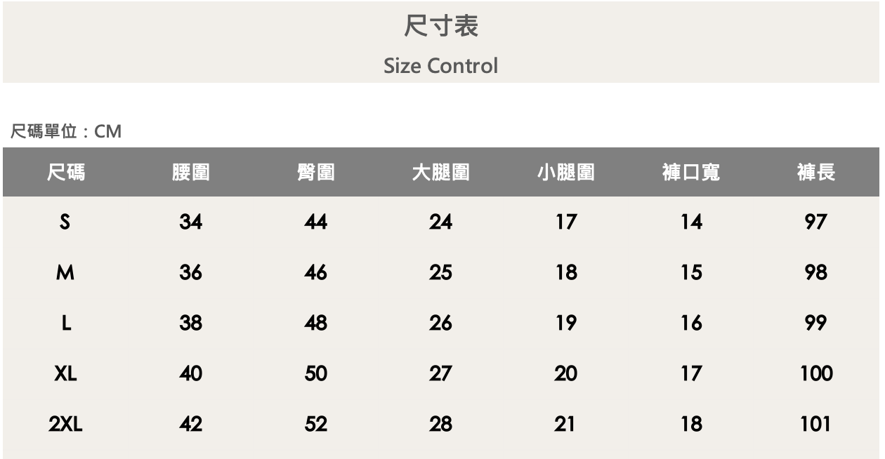 五個尺寸(S、M、L、XL、XXL)