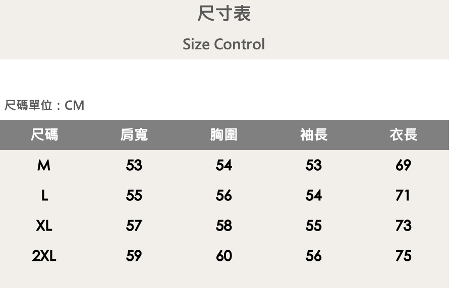 四個尺寸(M、L、XL、XXL)