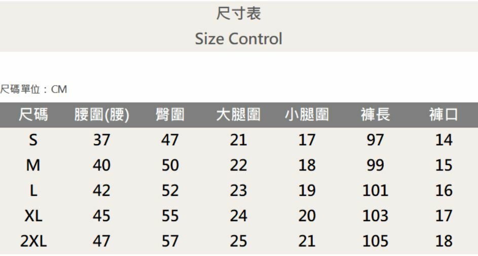 五個尺寸(S、M、L、XL、XXL)