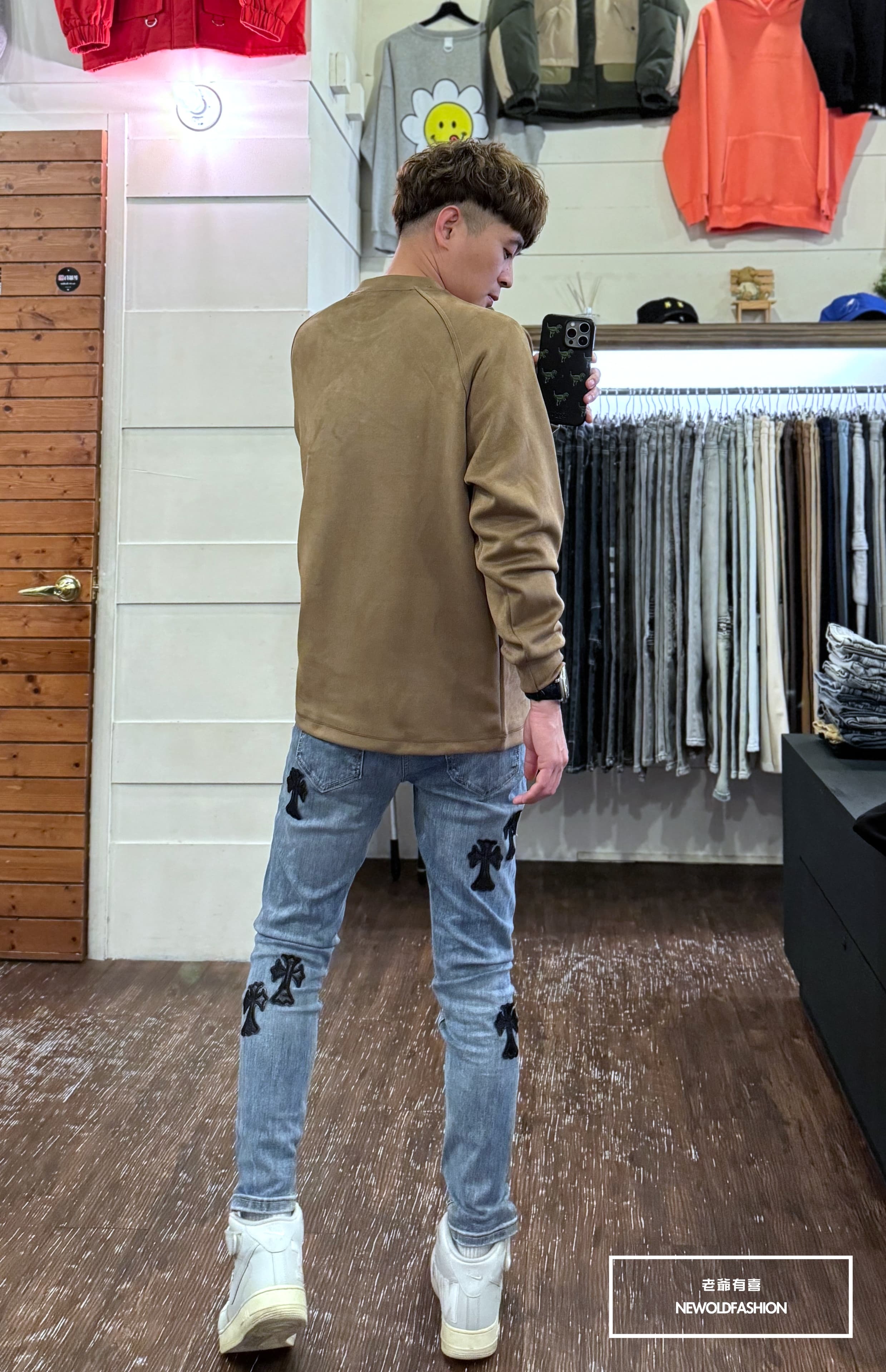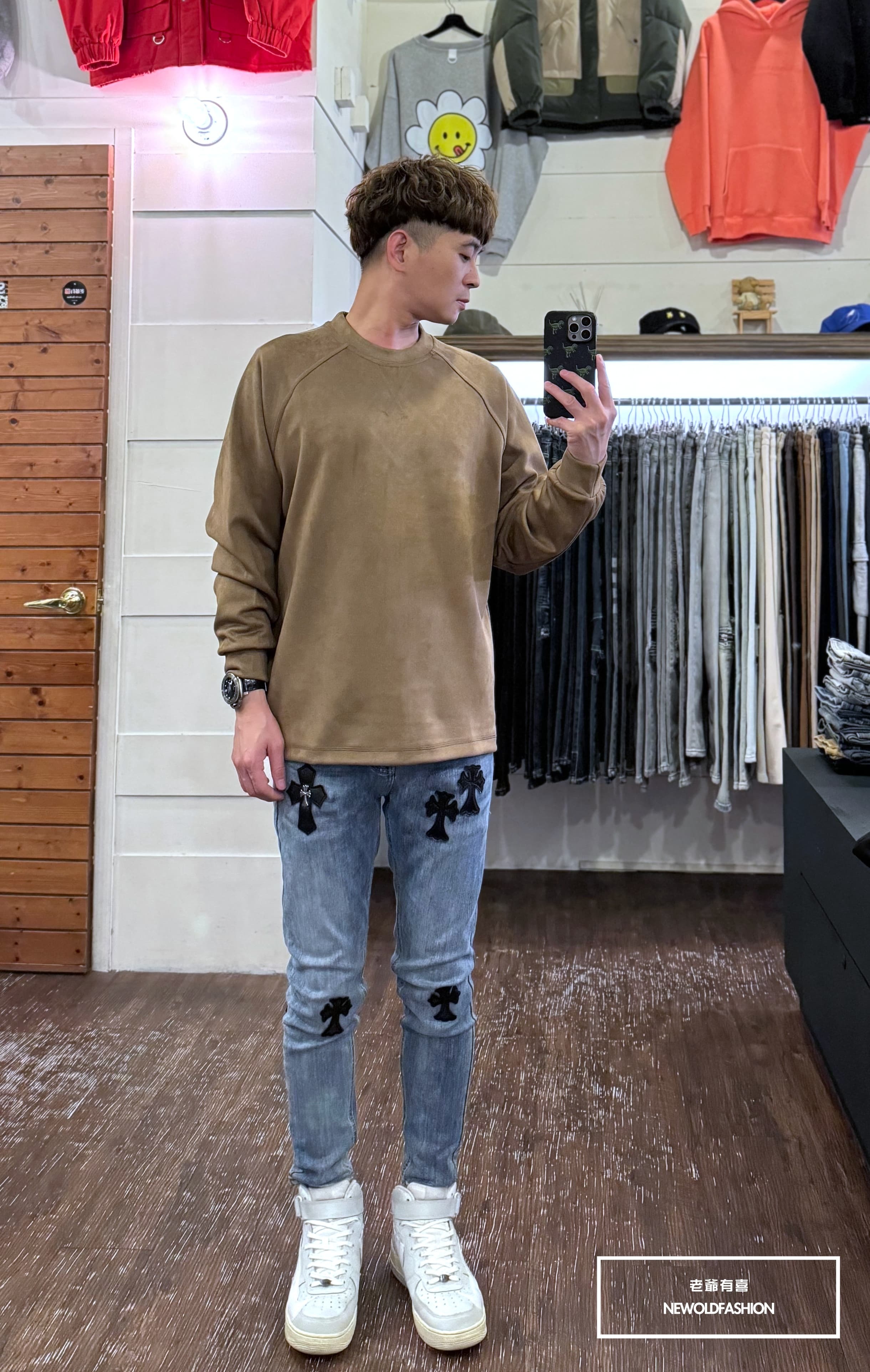 『新品上市』重磅純色三角領絨布大學T-卡其(NOF2309392)