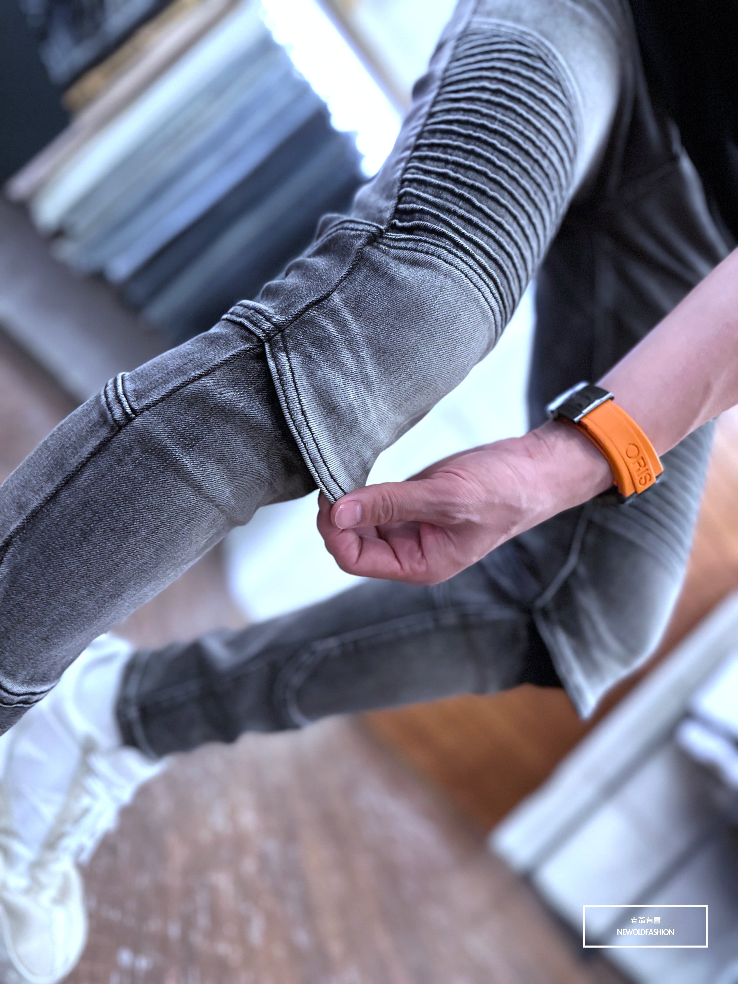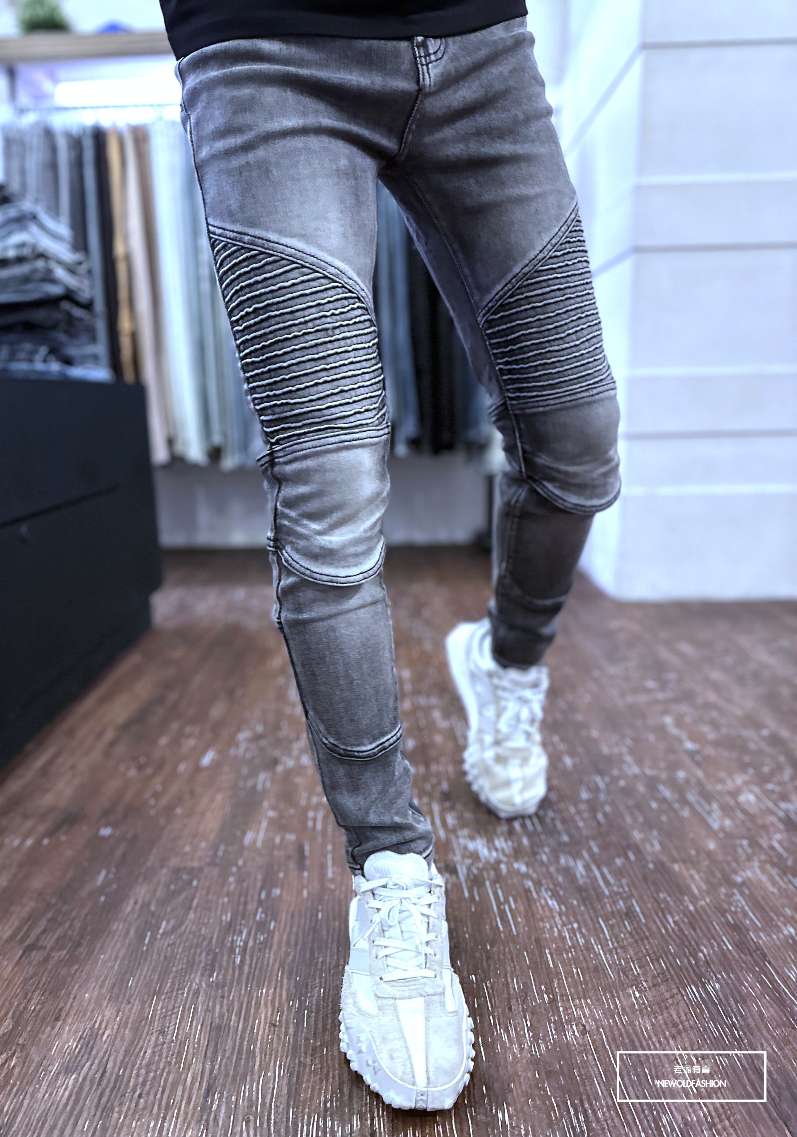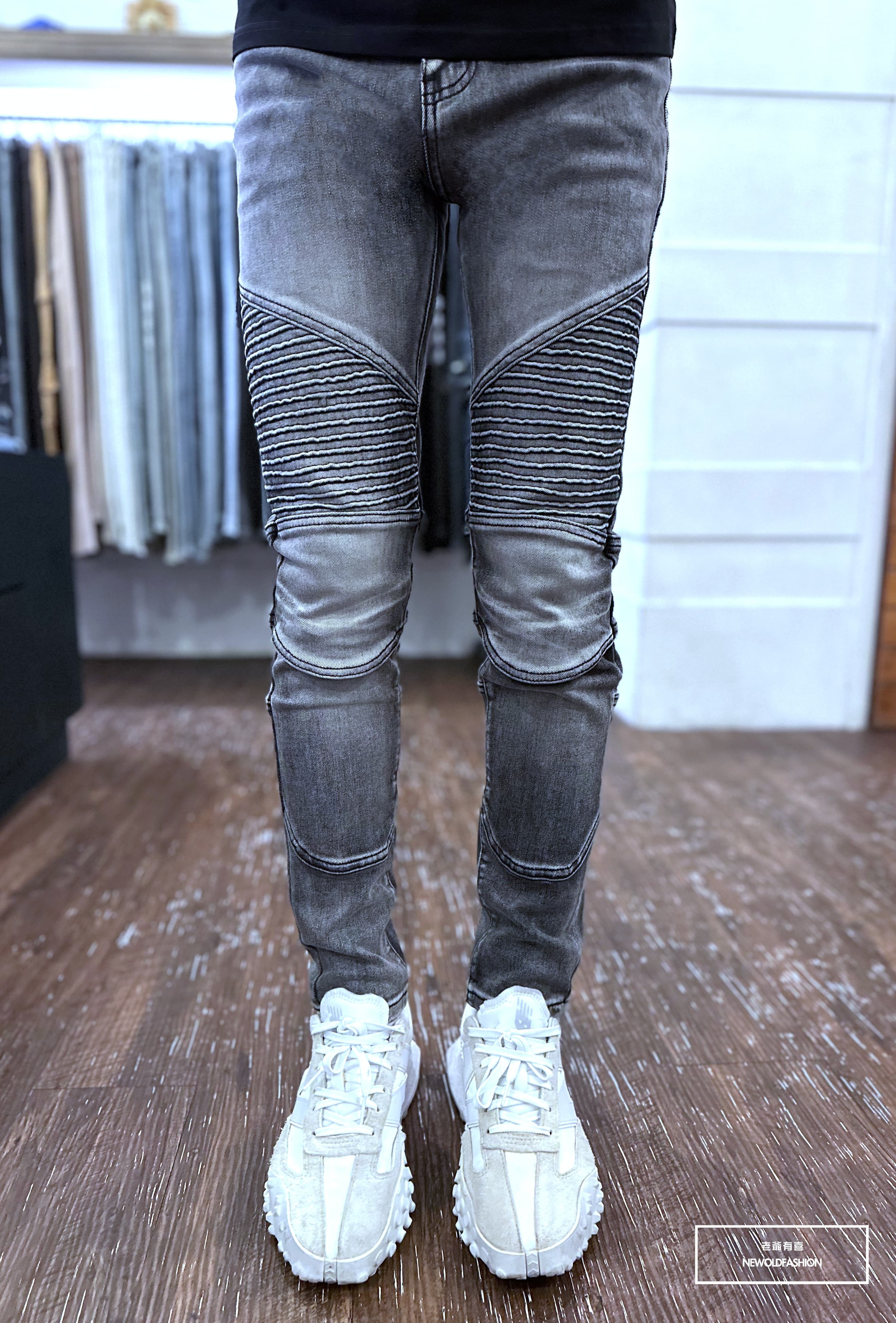 機車補丁造型設計!膝蓋為立體造型,穿上後更加立體!