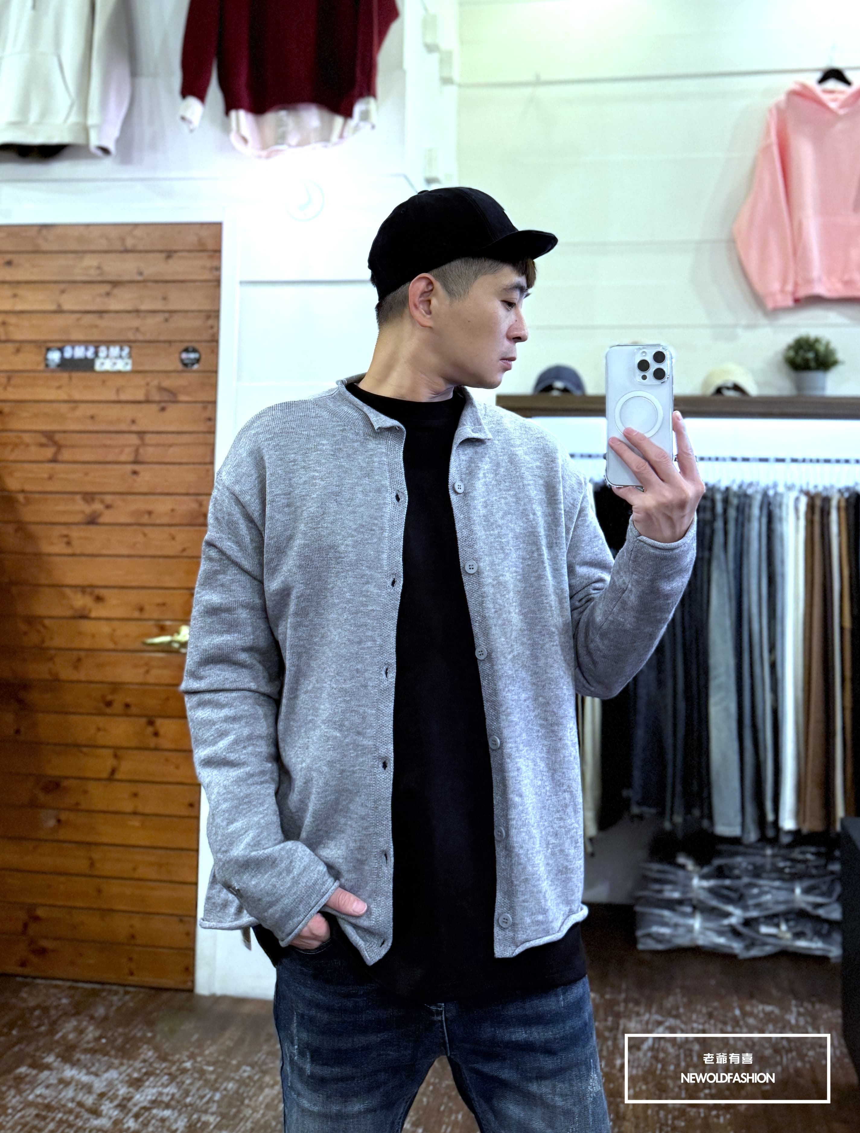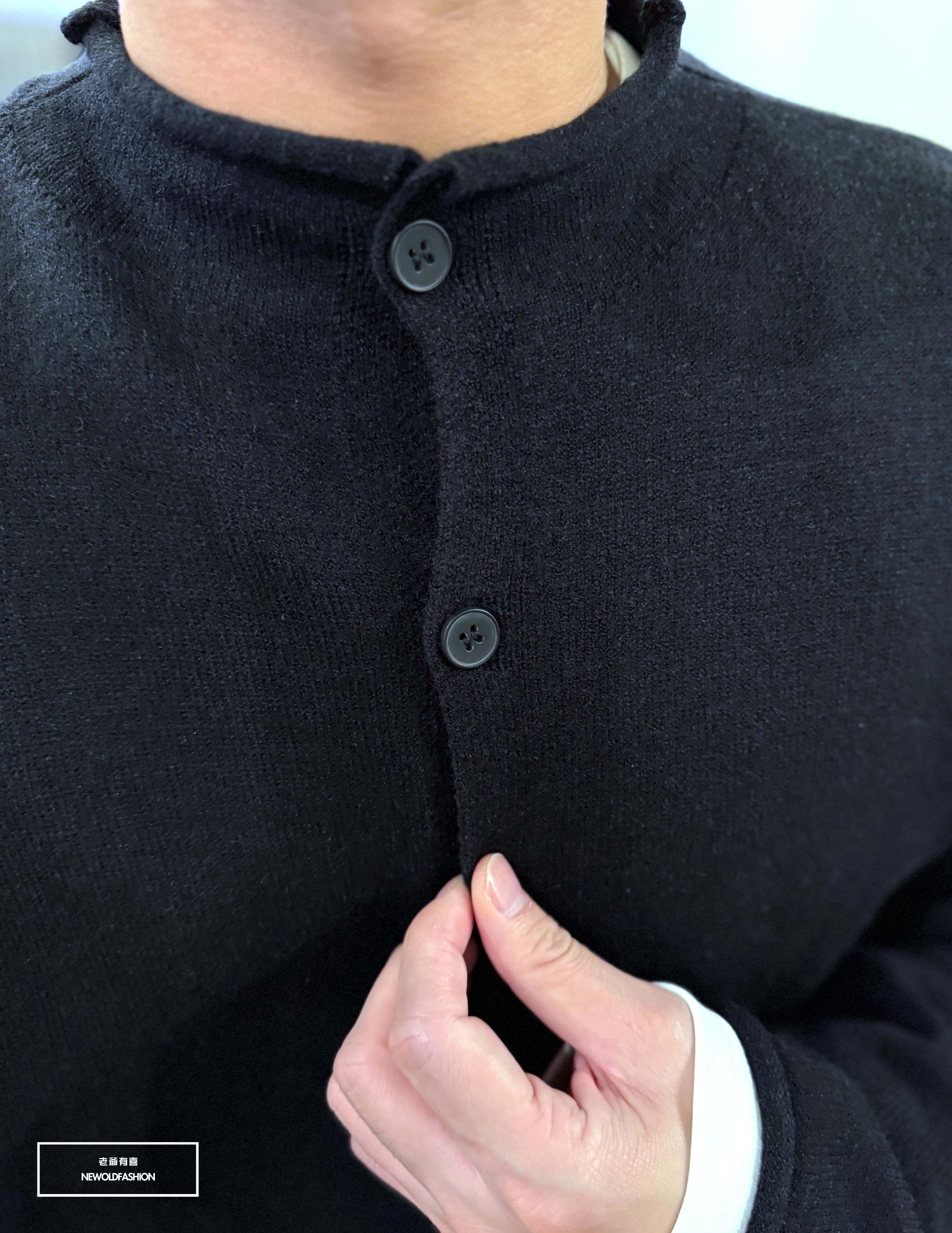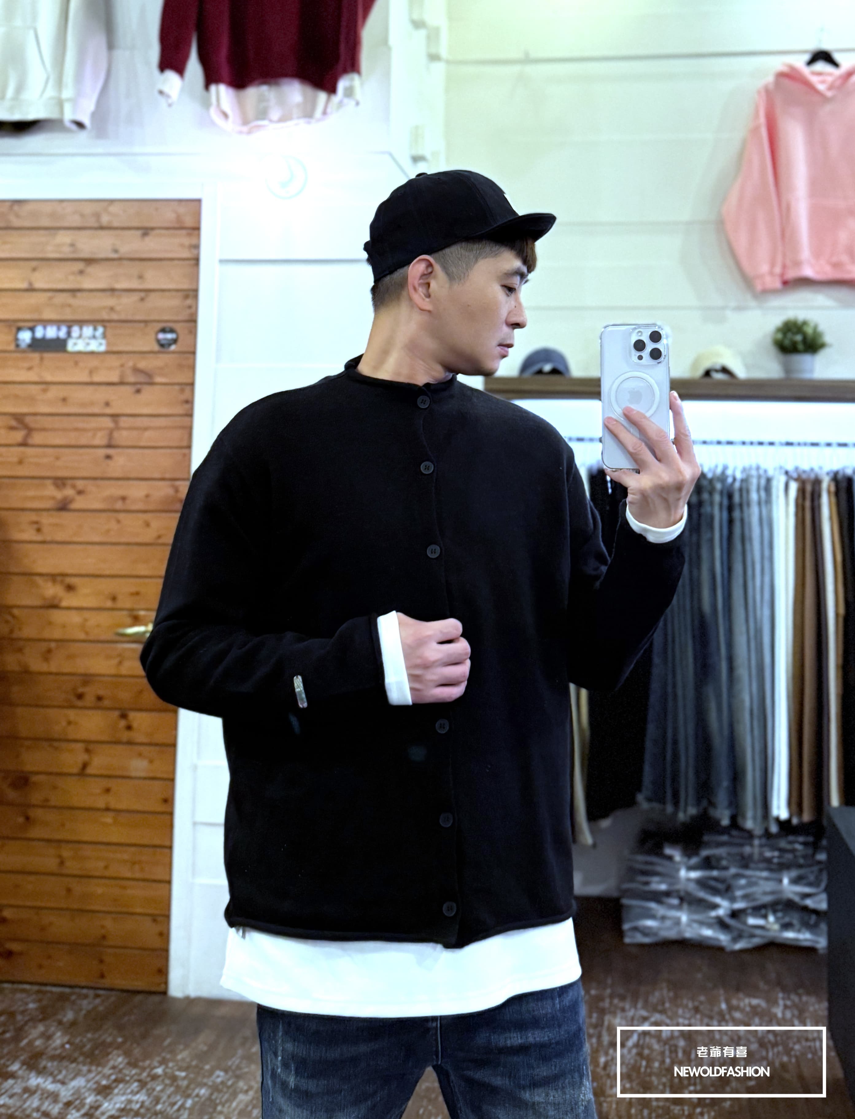 『新品上市』重磅木耳領排釦針織罩衫(NOF251051166)-黑