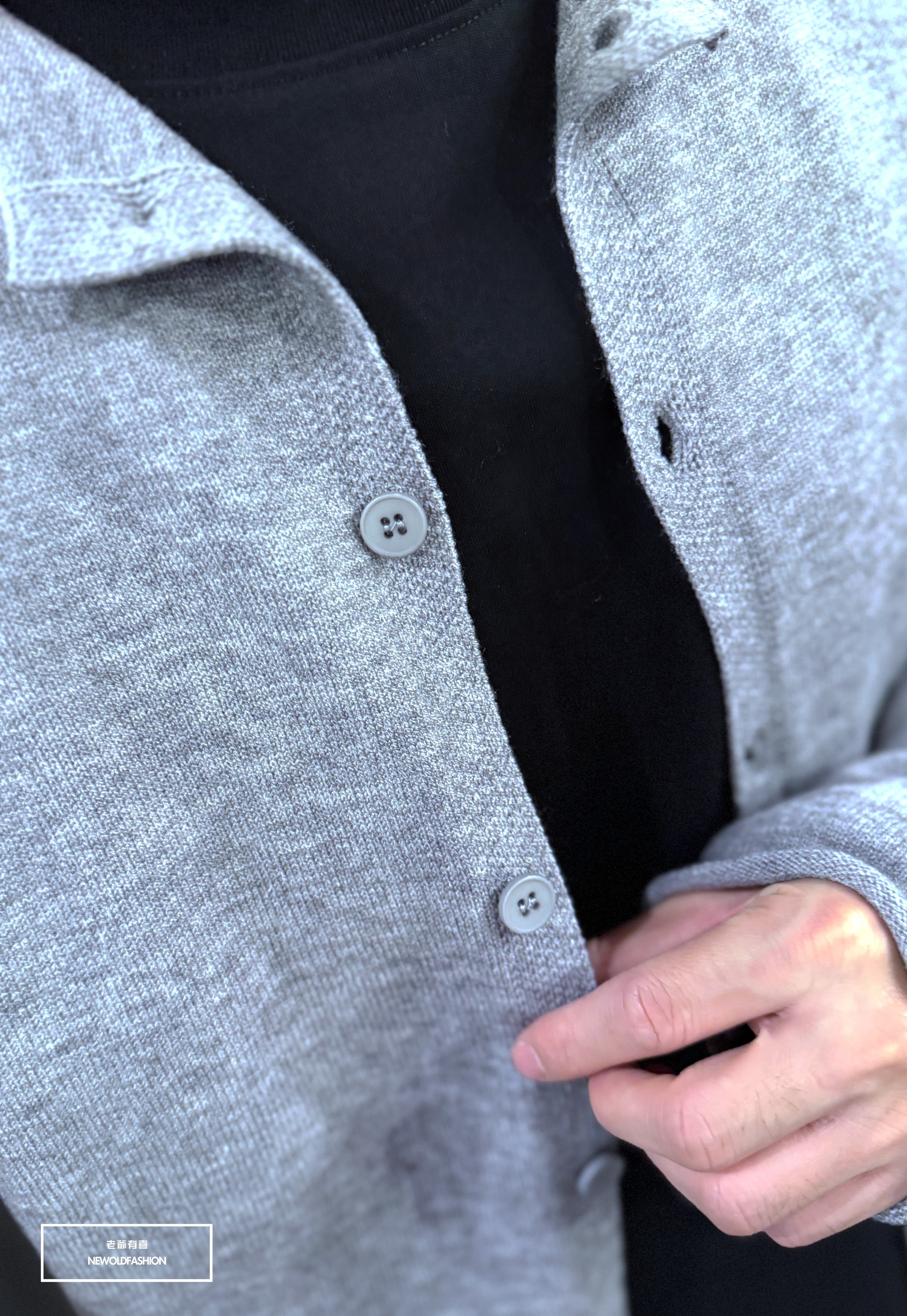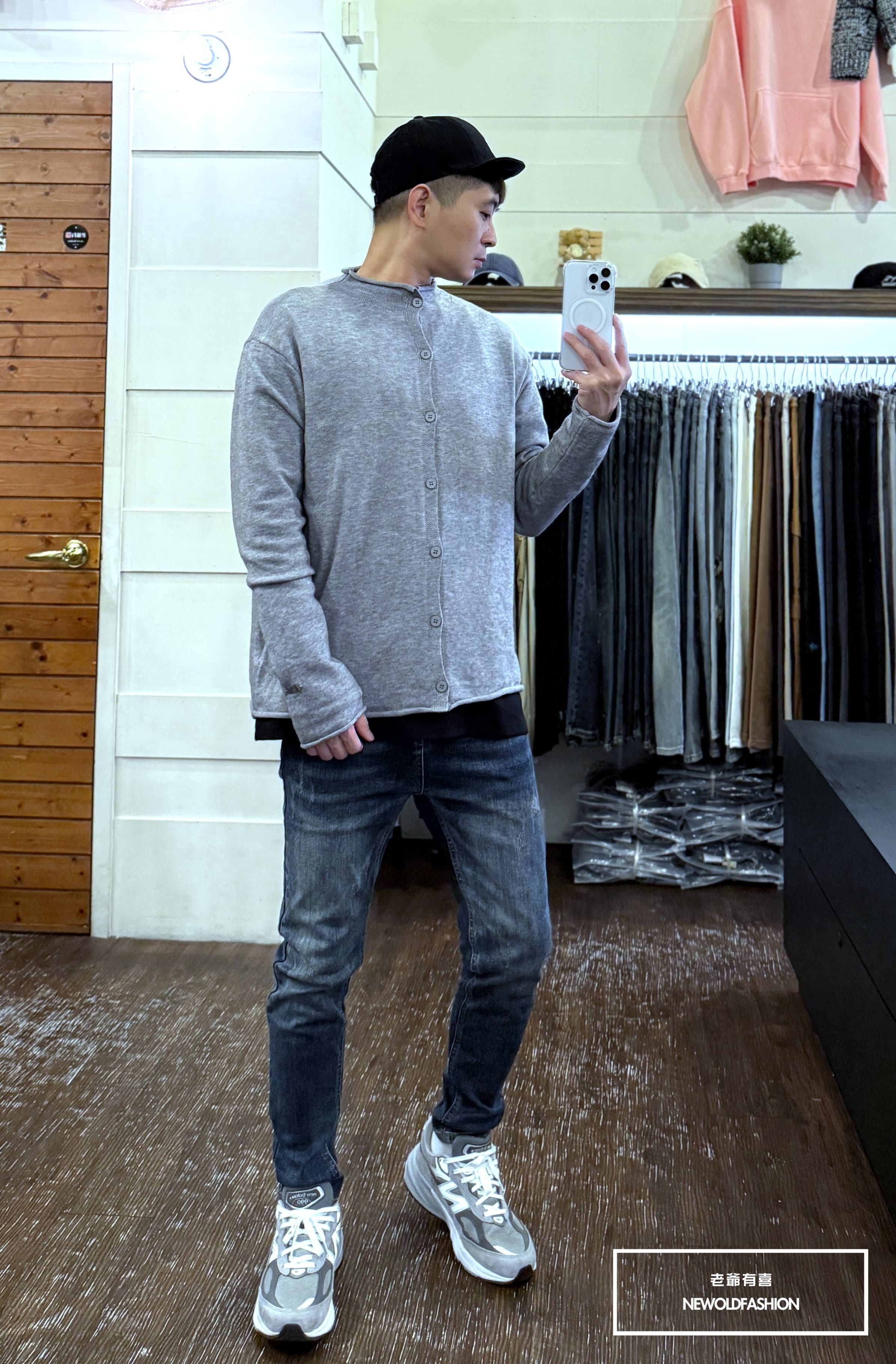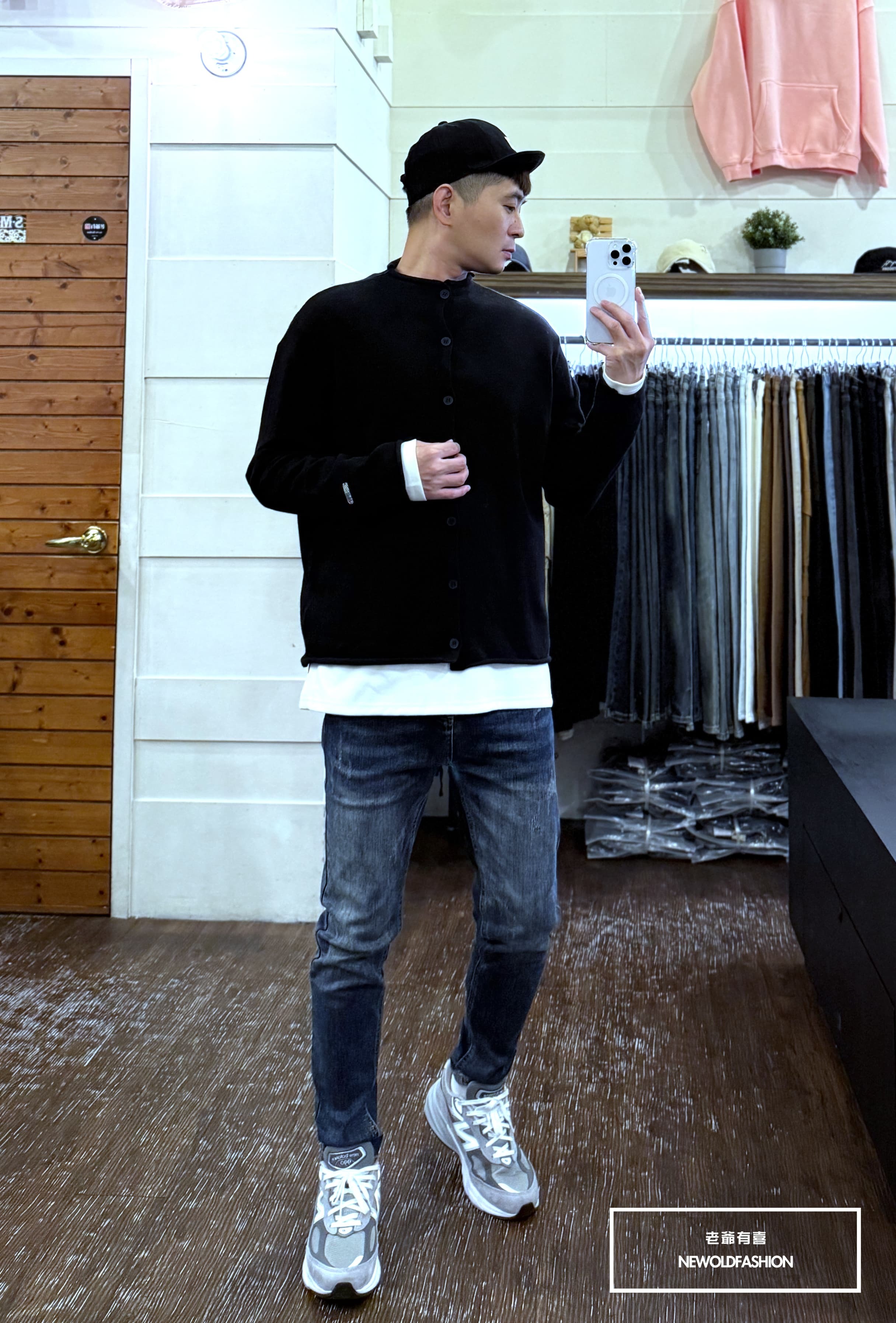 『新品上市』重磅木耳領排釦針織罩衫(NOF251051166)-黑