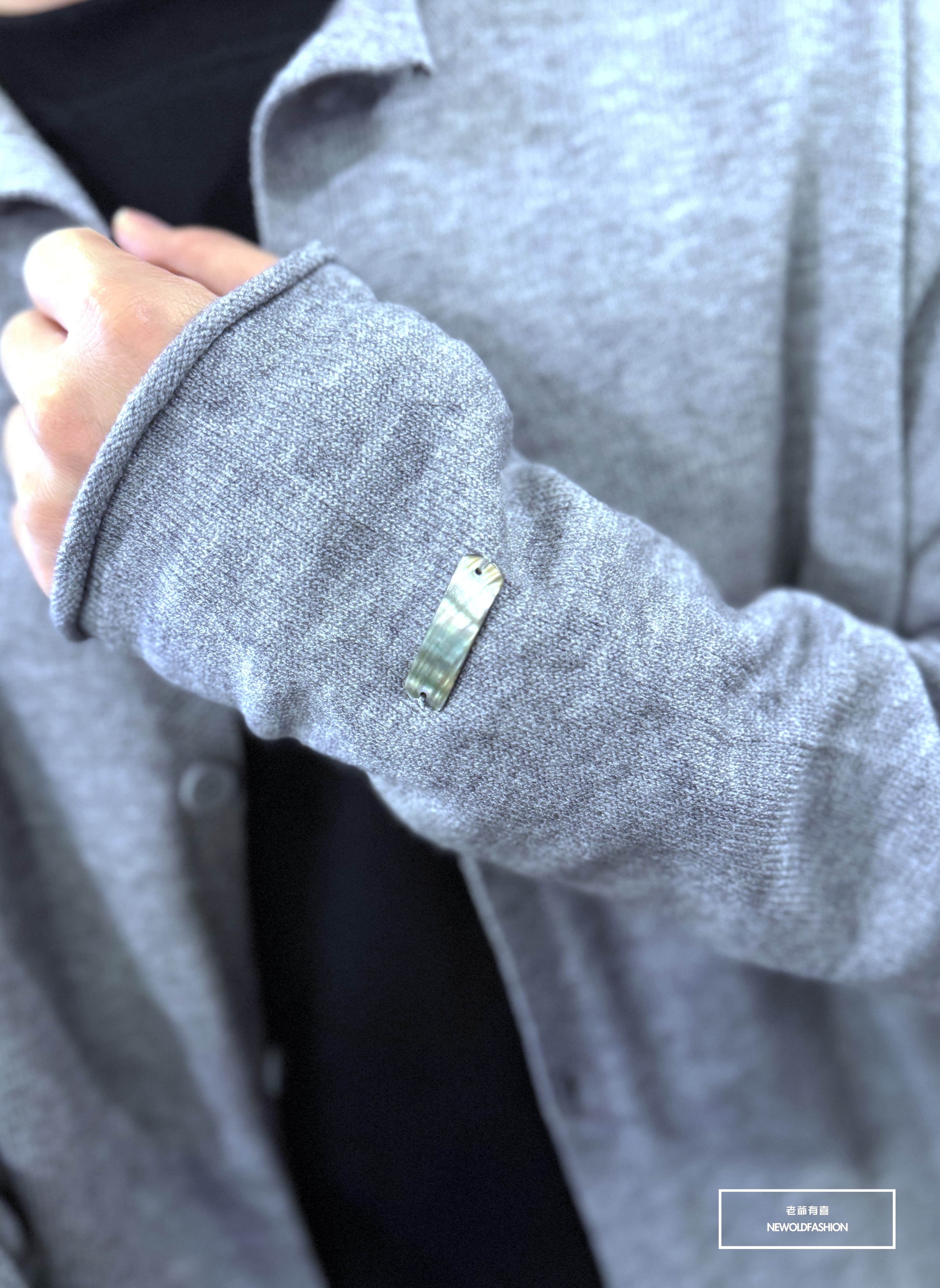 木耳領排釦、手袖光澤飾片造型設計,亦可全釦當上衣