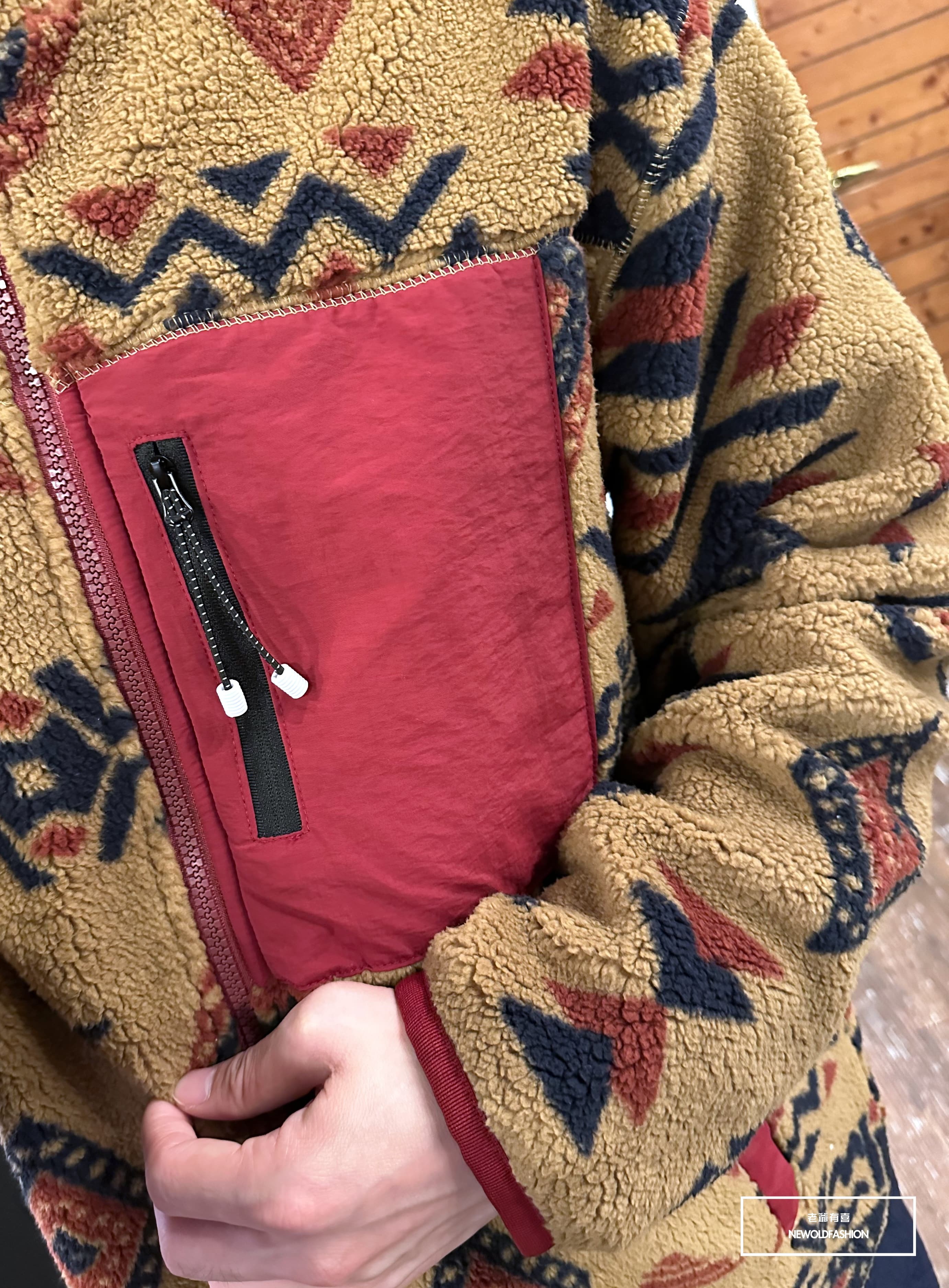 『新品上市』重磅民族風拉鍊口袋拼接外套-卡其(NOF23095263)
