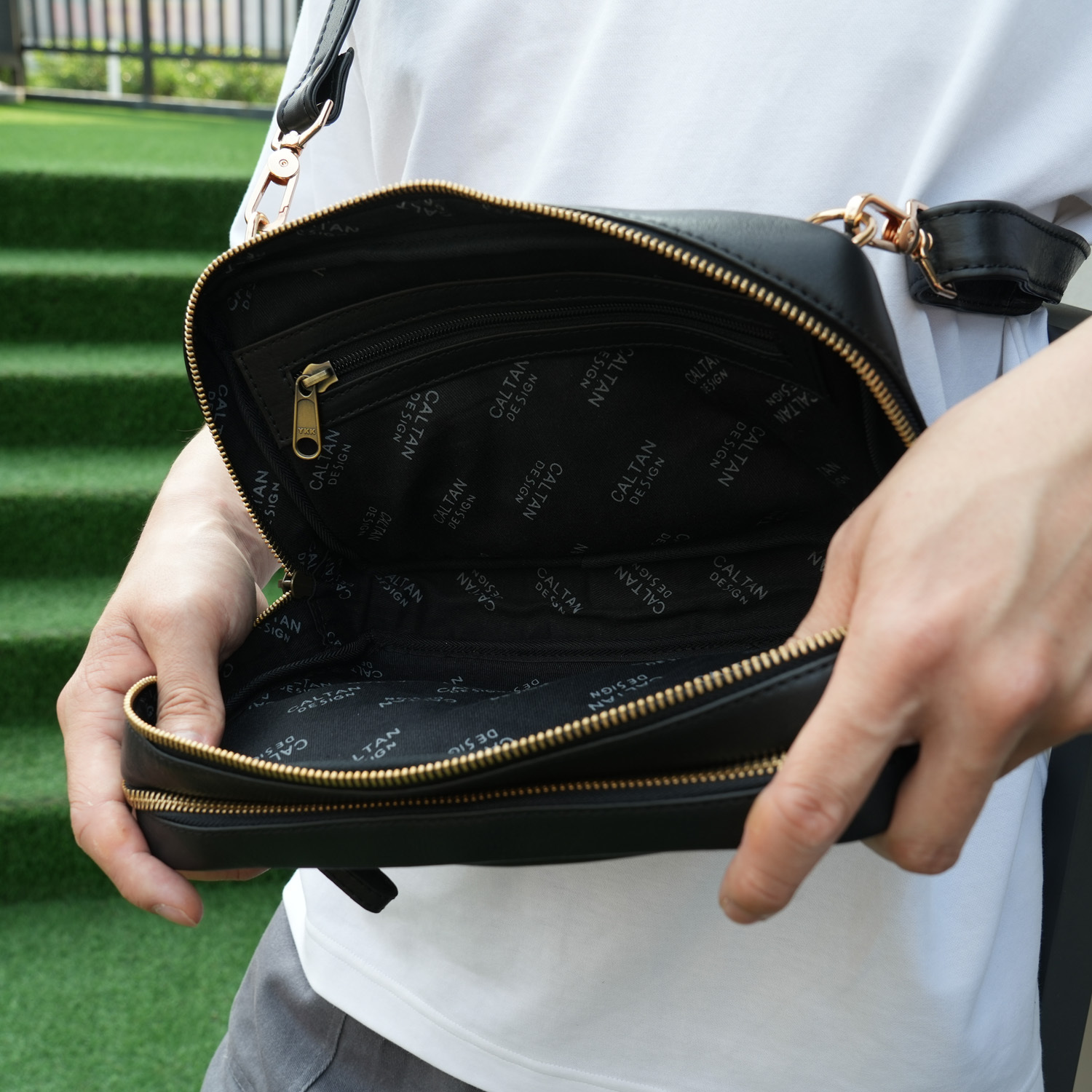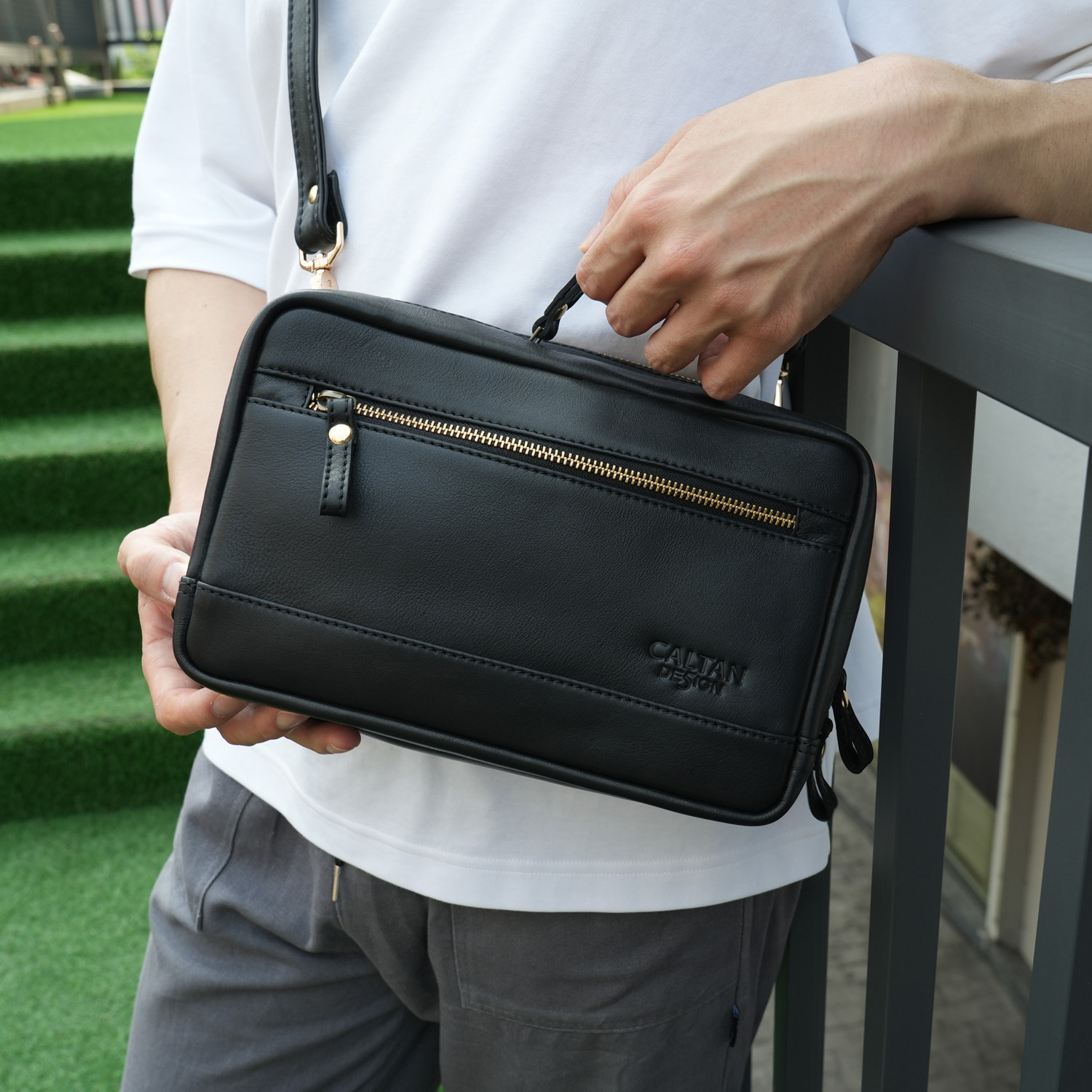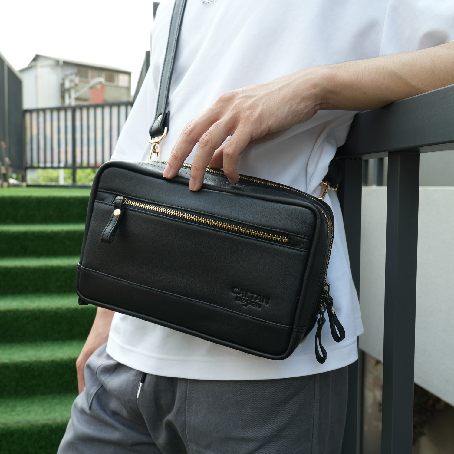 『新品上市』老爺有喜 多功能三用拉鍊真皮包(5456bk)