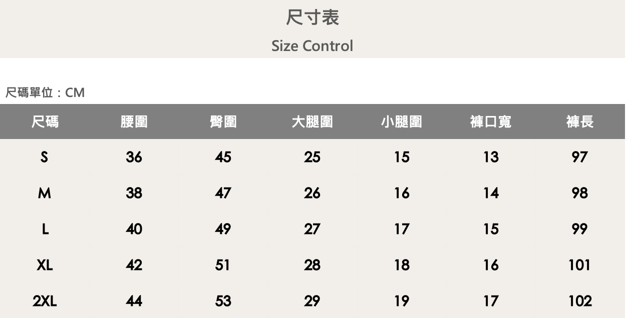 五個尺寸(S、M、L、XL、XXL)