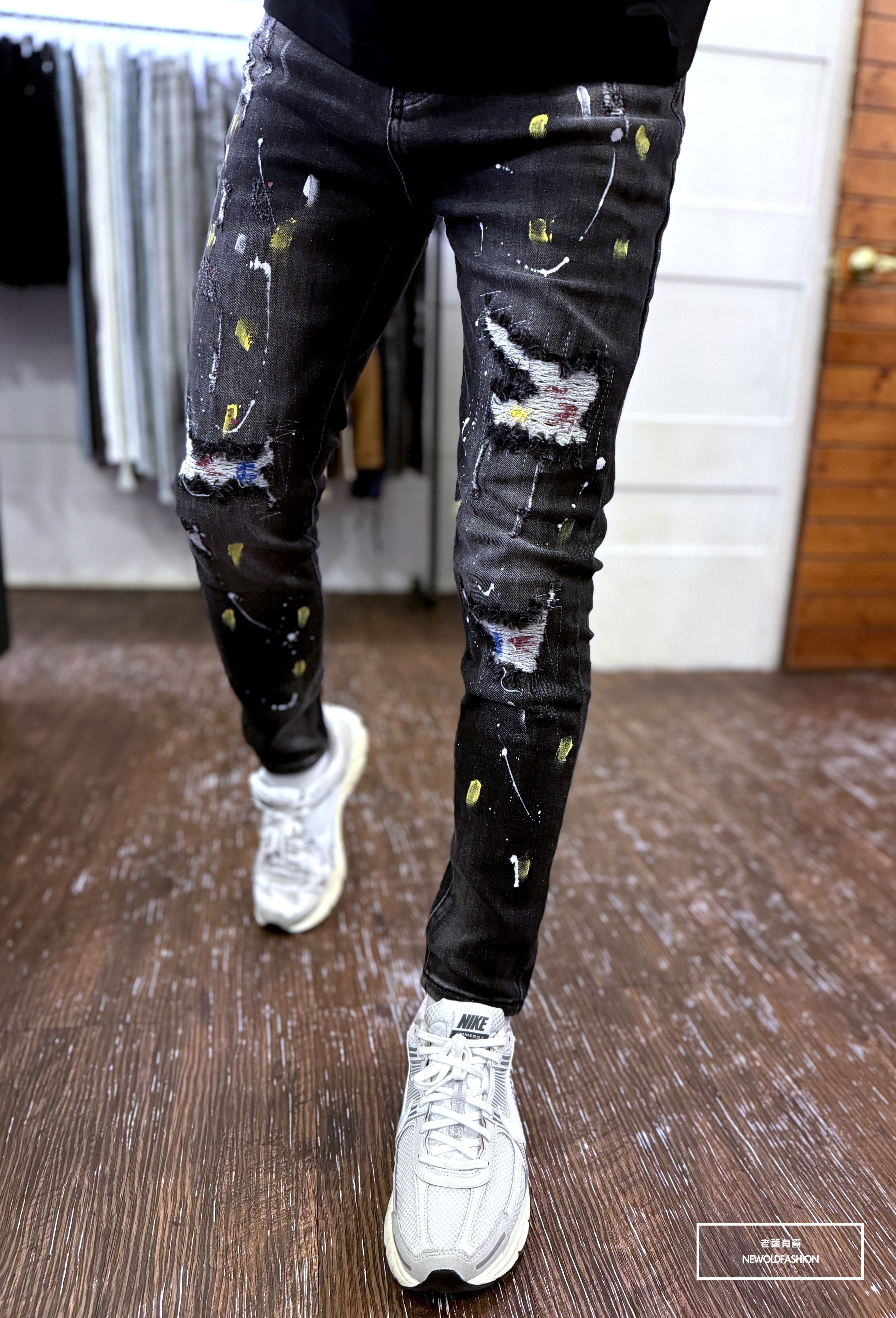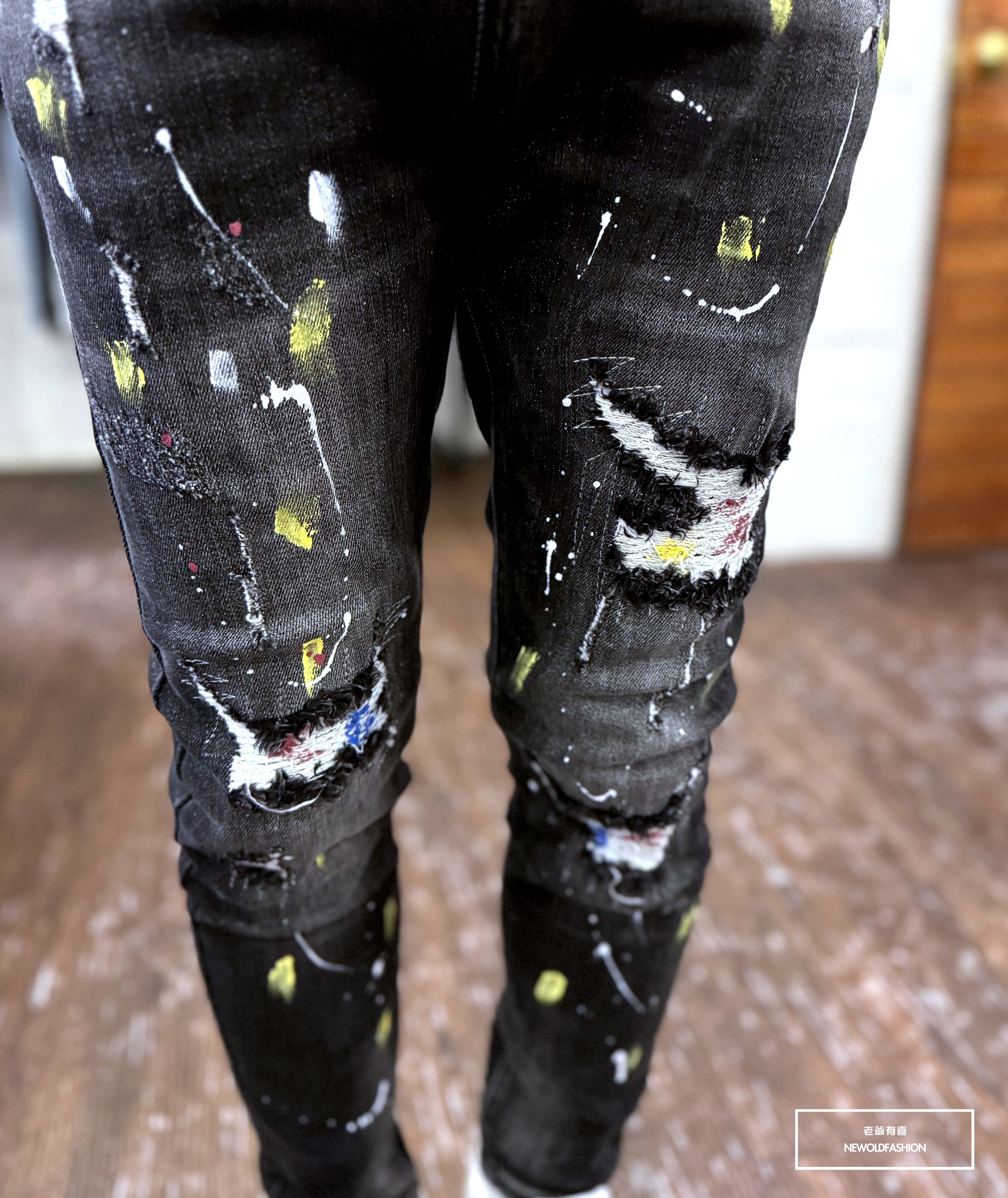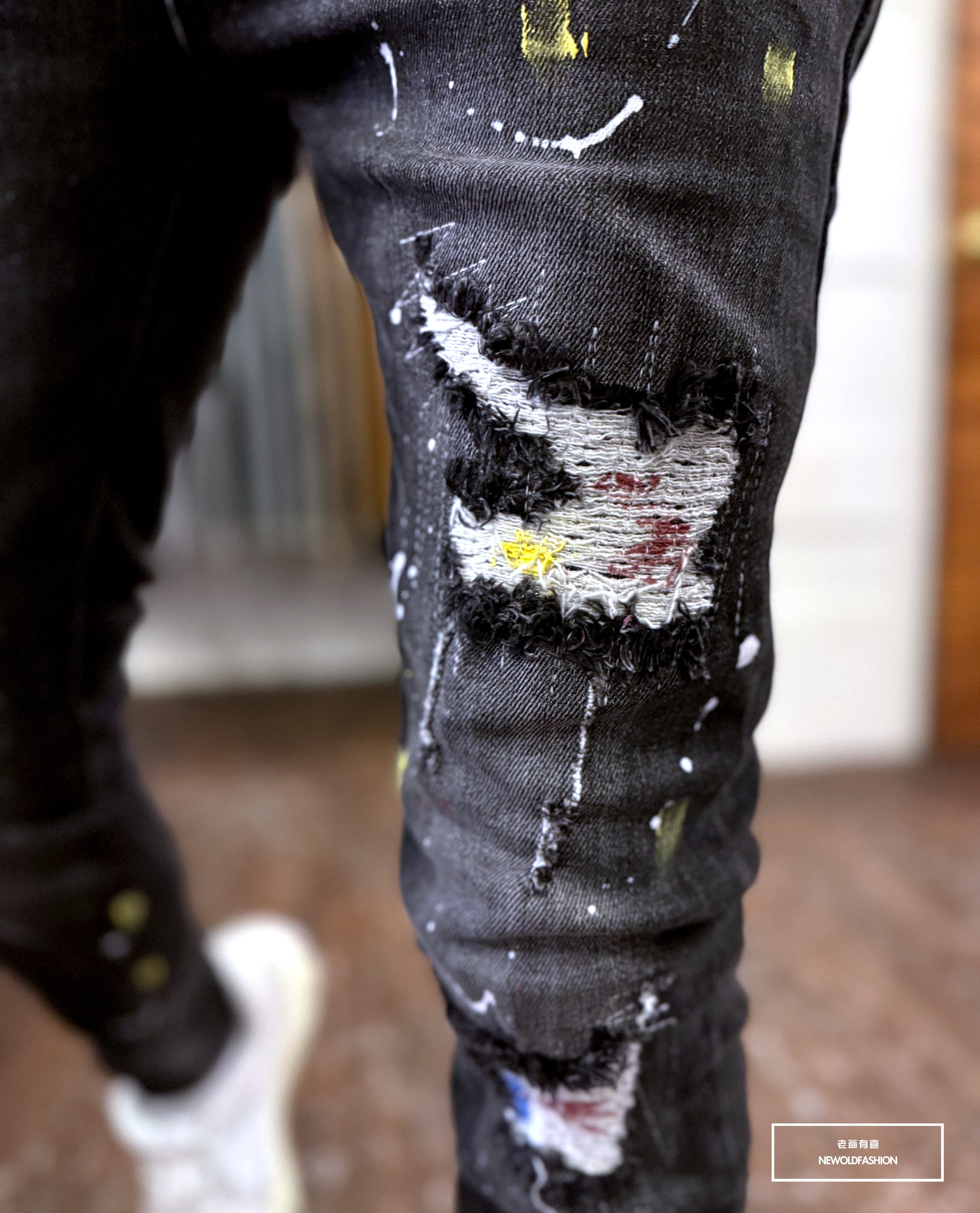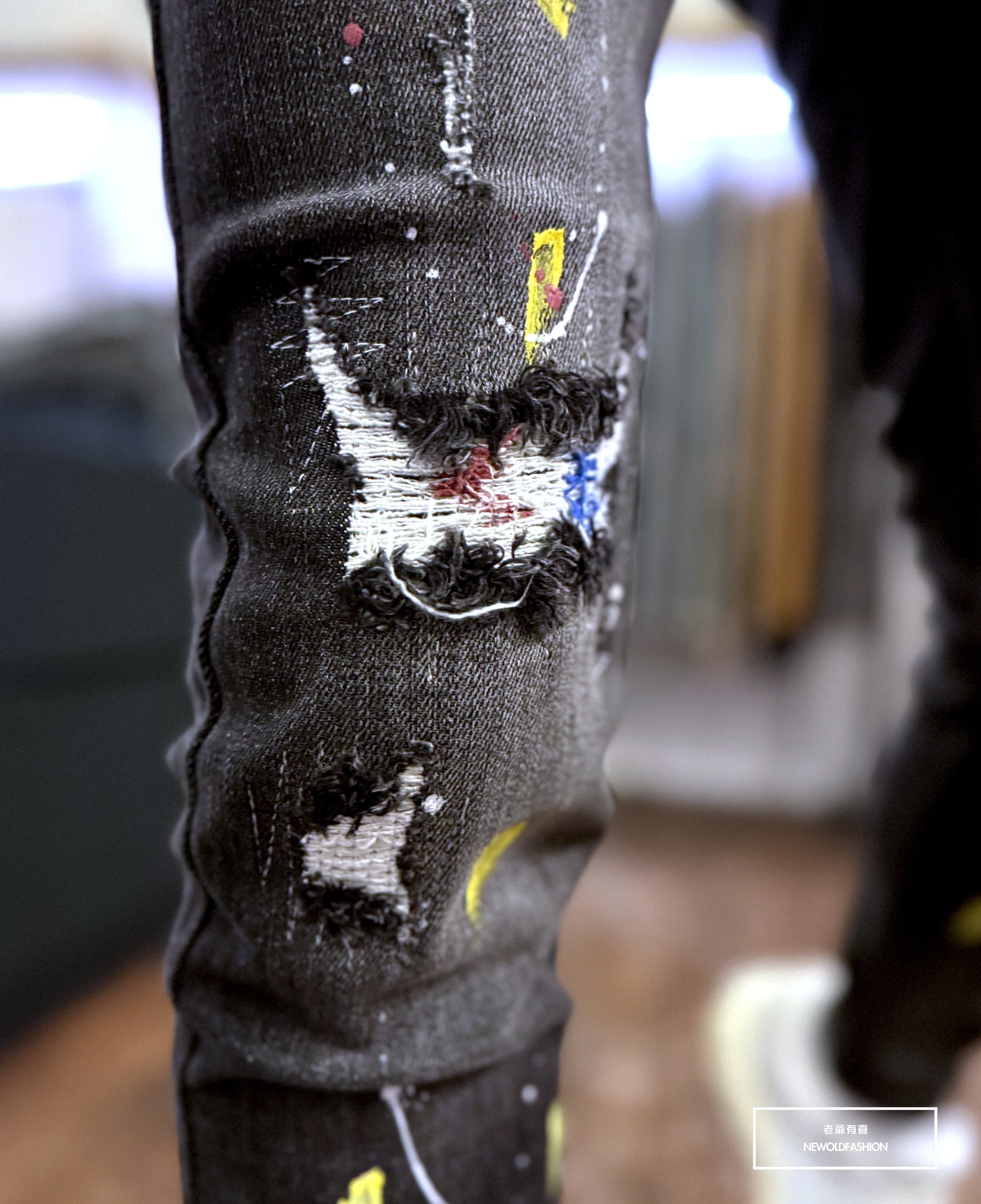 大面積潑漆、破壞車縫補丁造型設計!