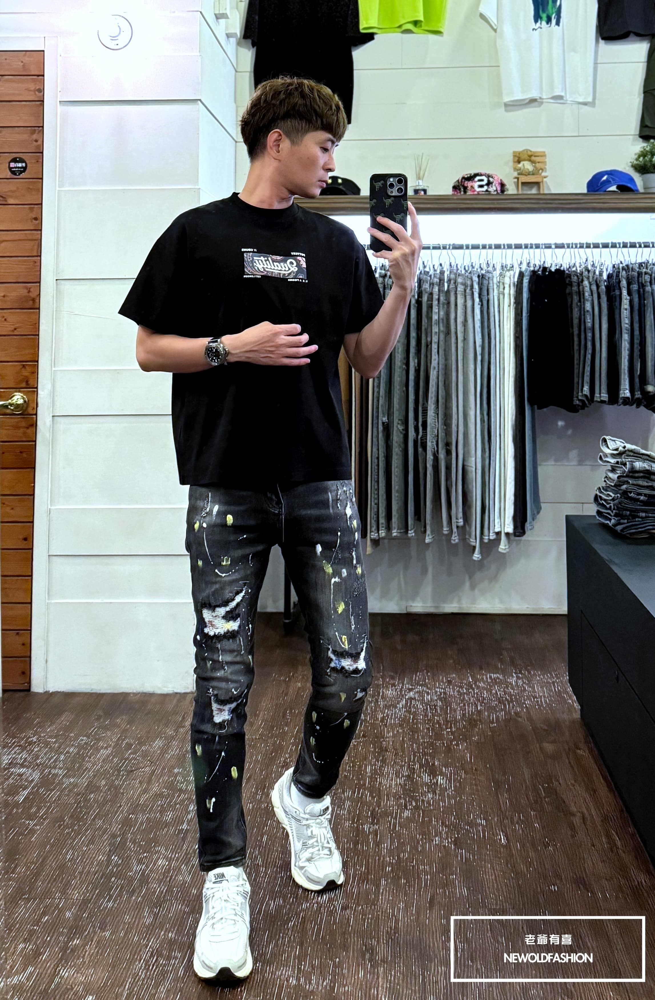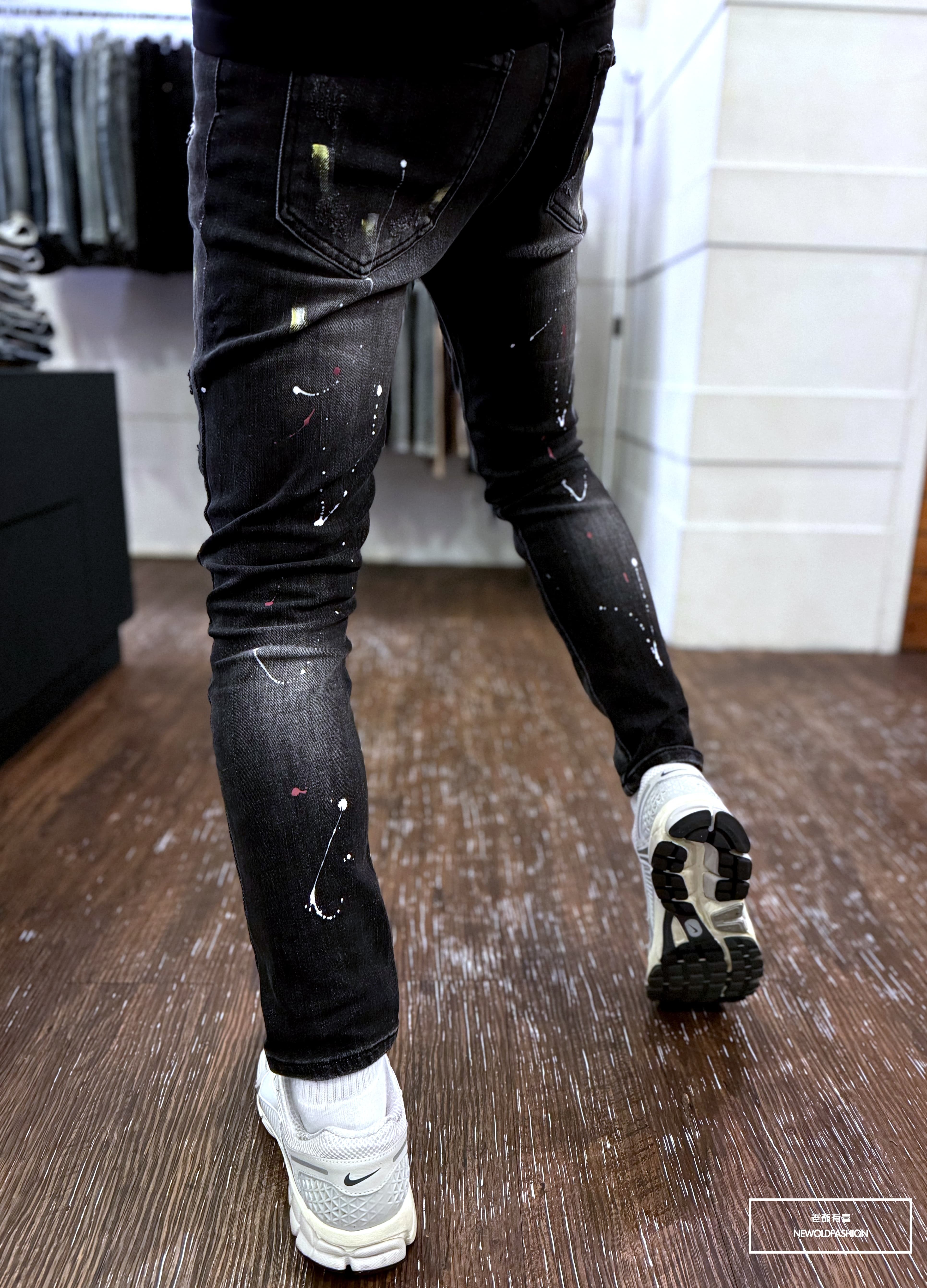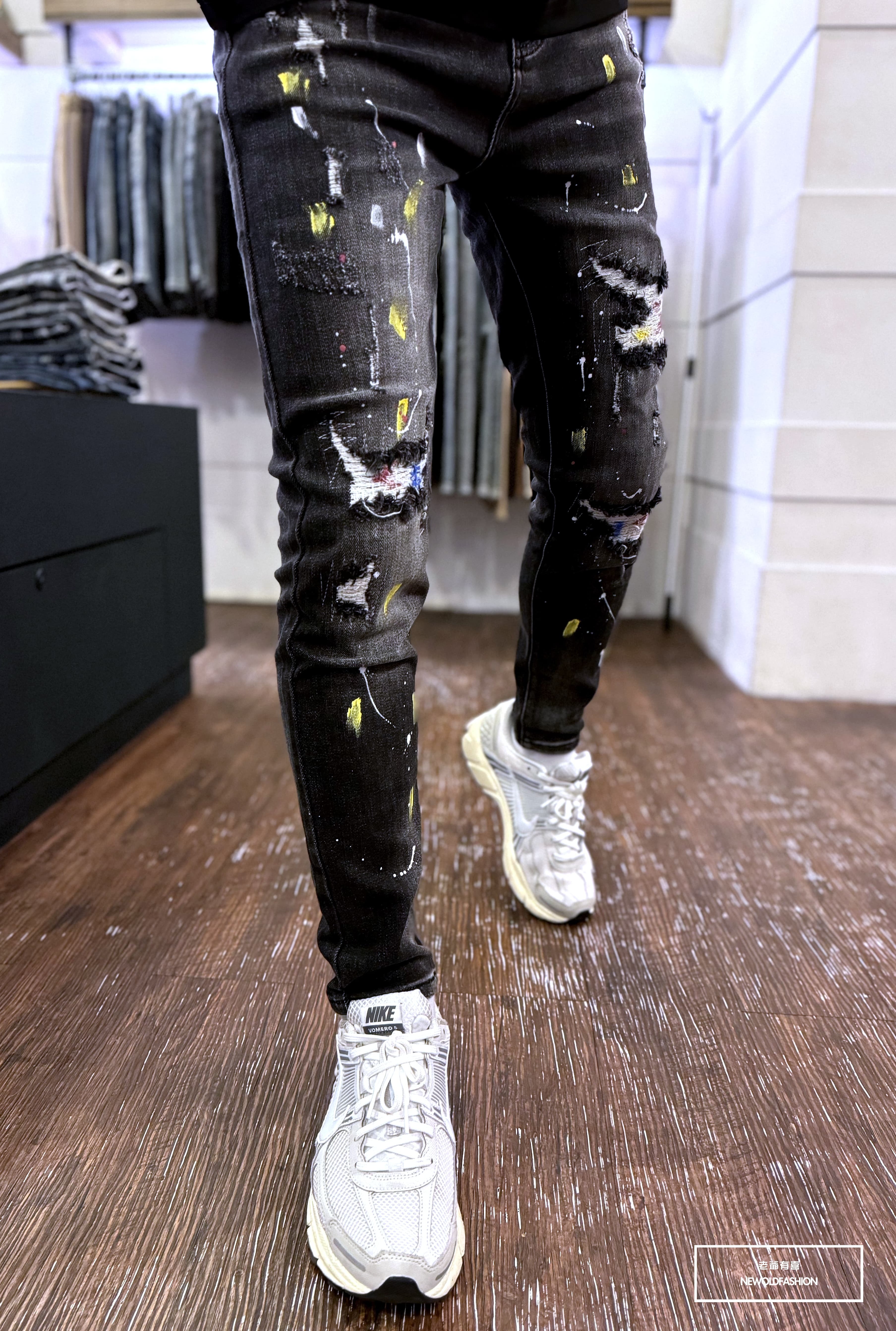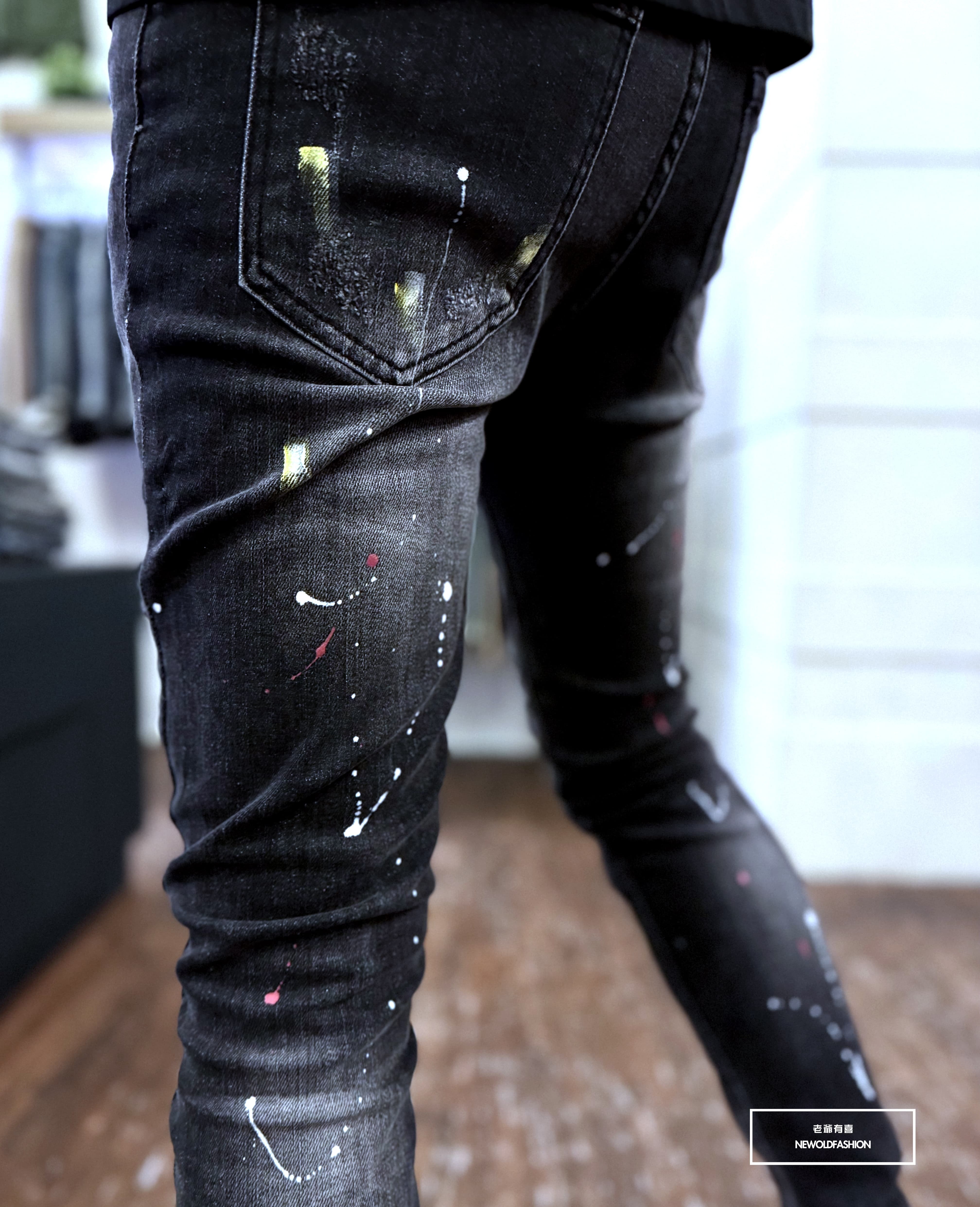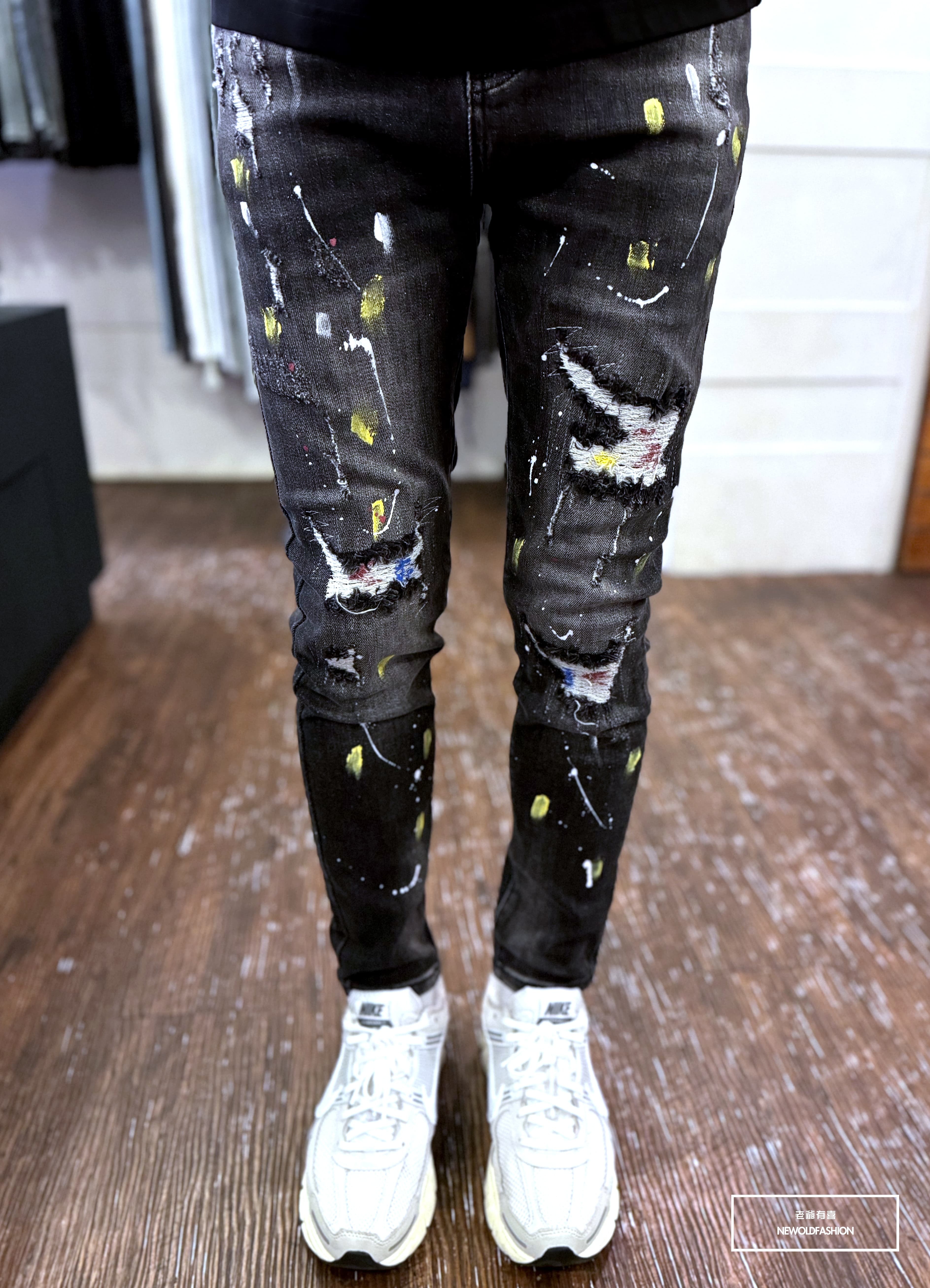 大面積潑漆、破壞車縫補丁造型設計!