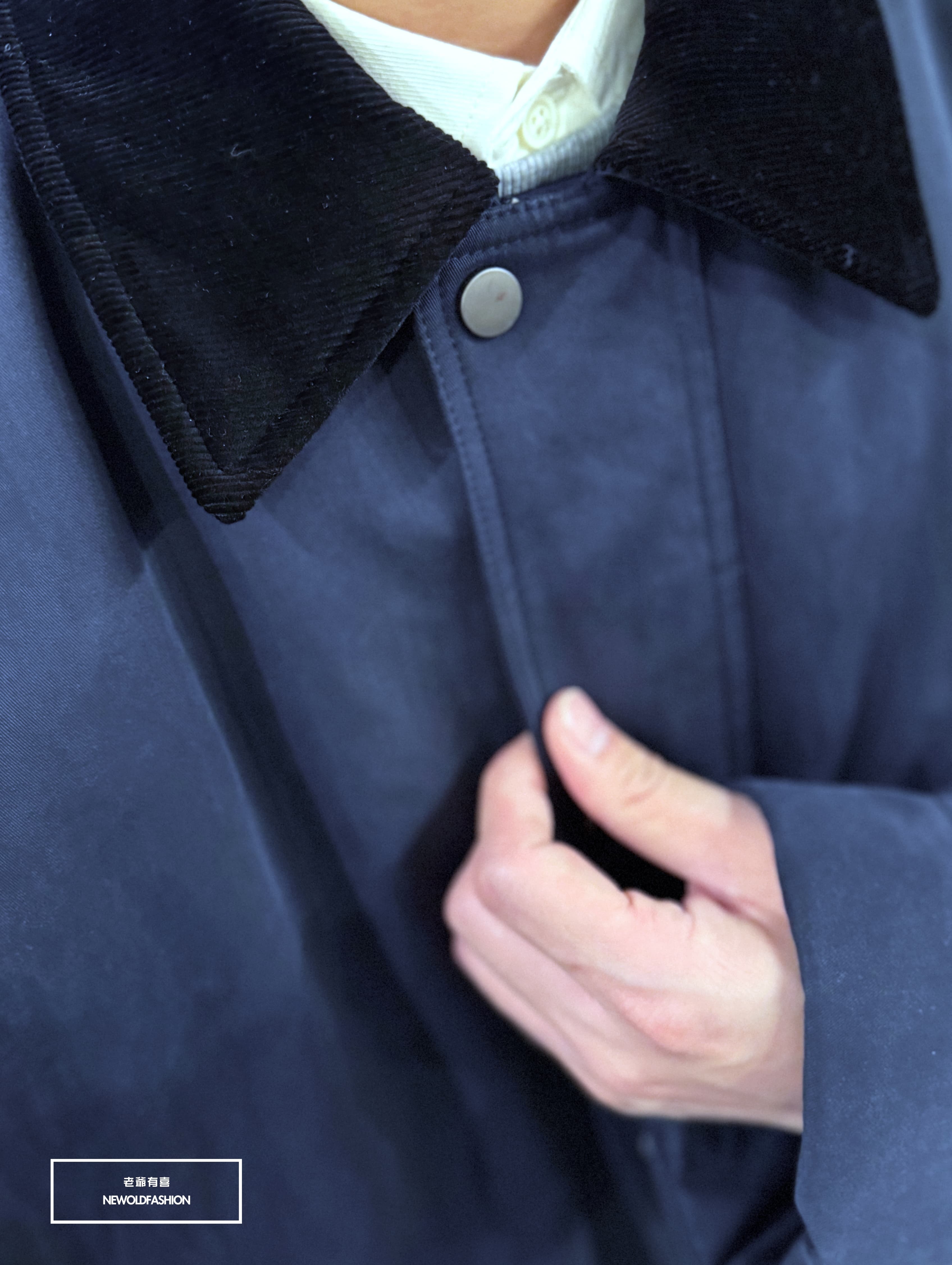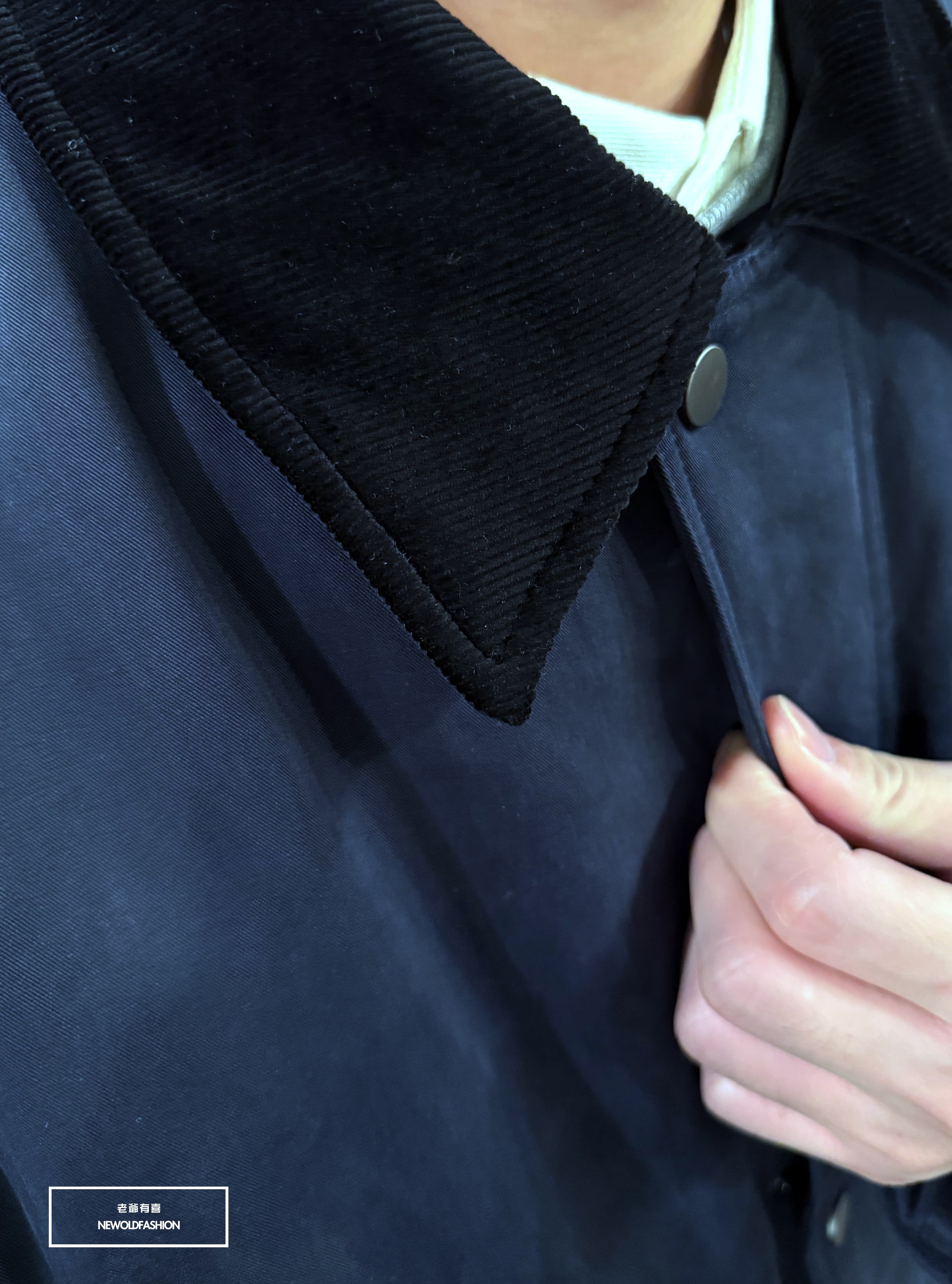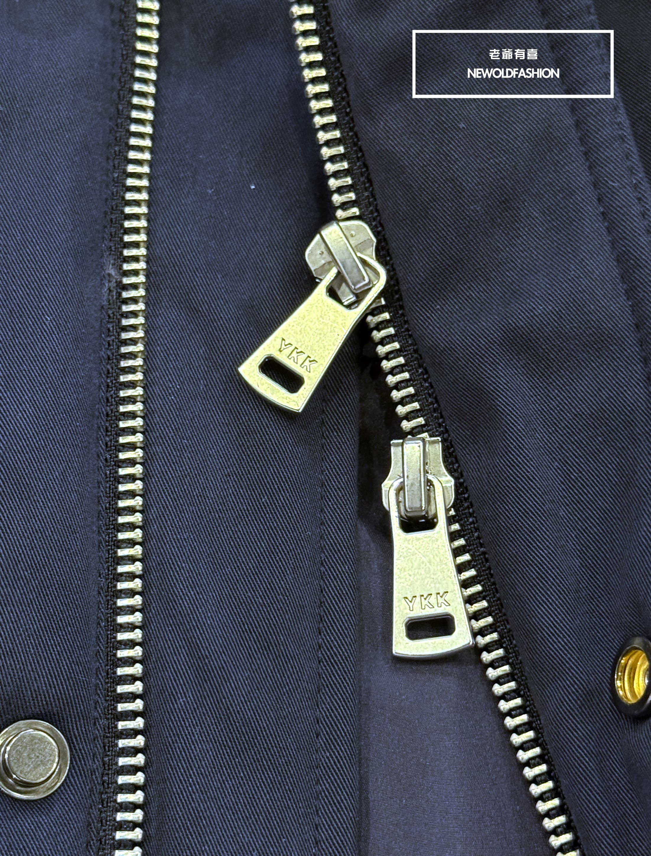 燈芯領釘釦雙拉鏈造型設計
