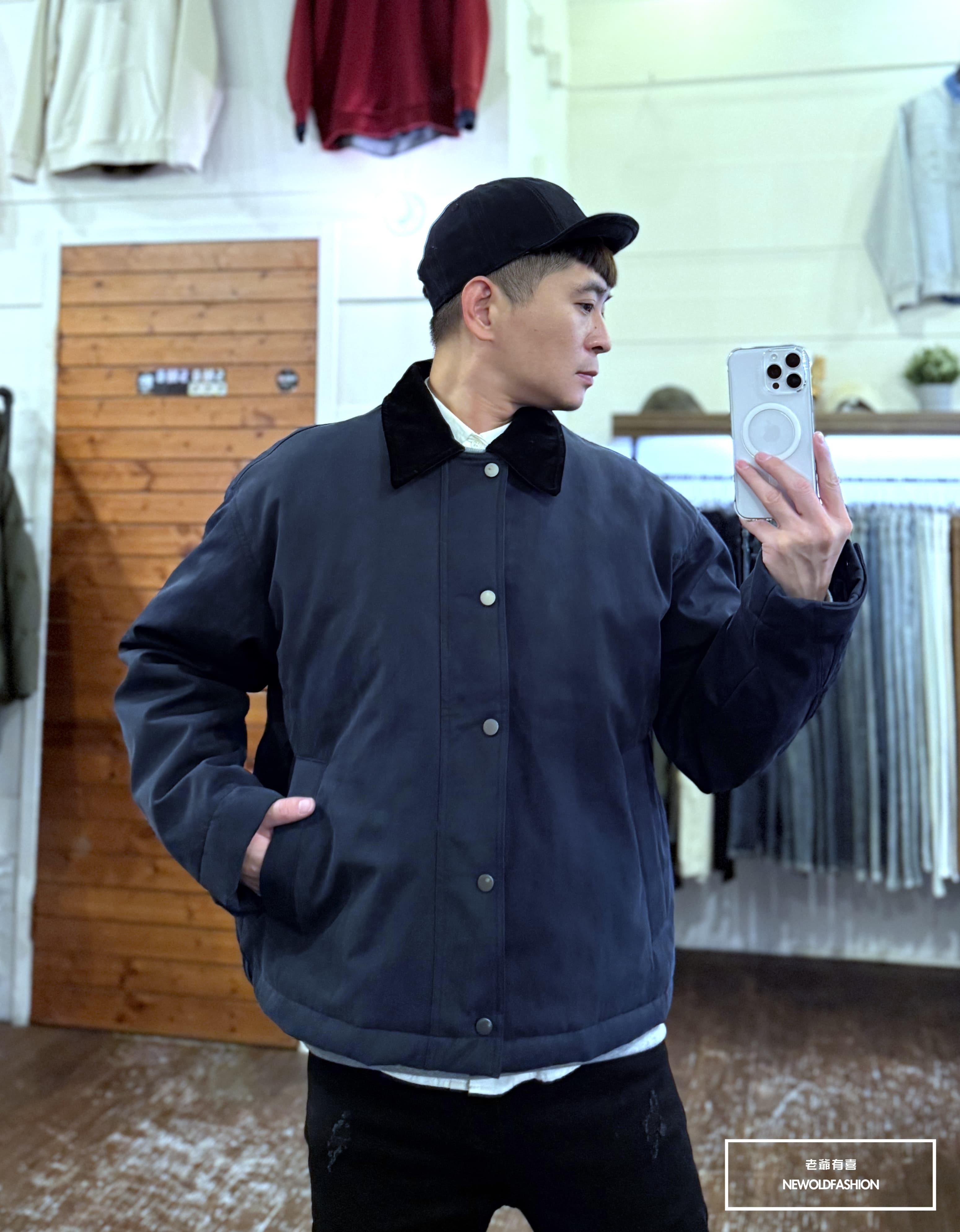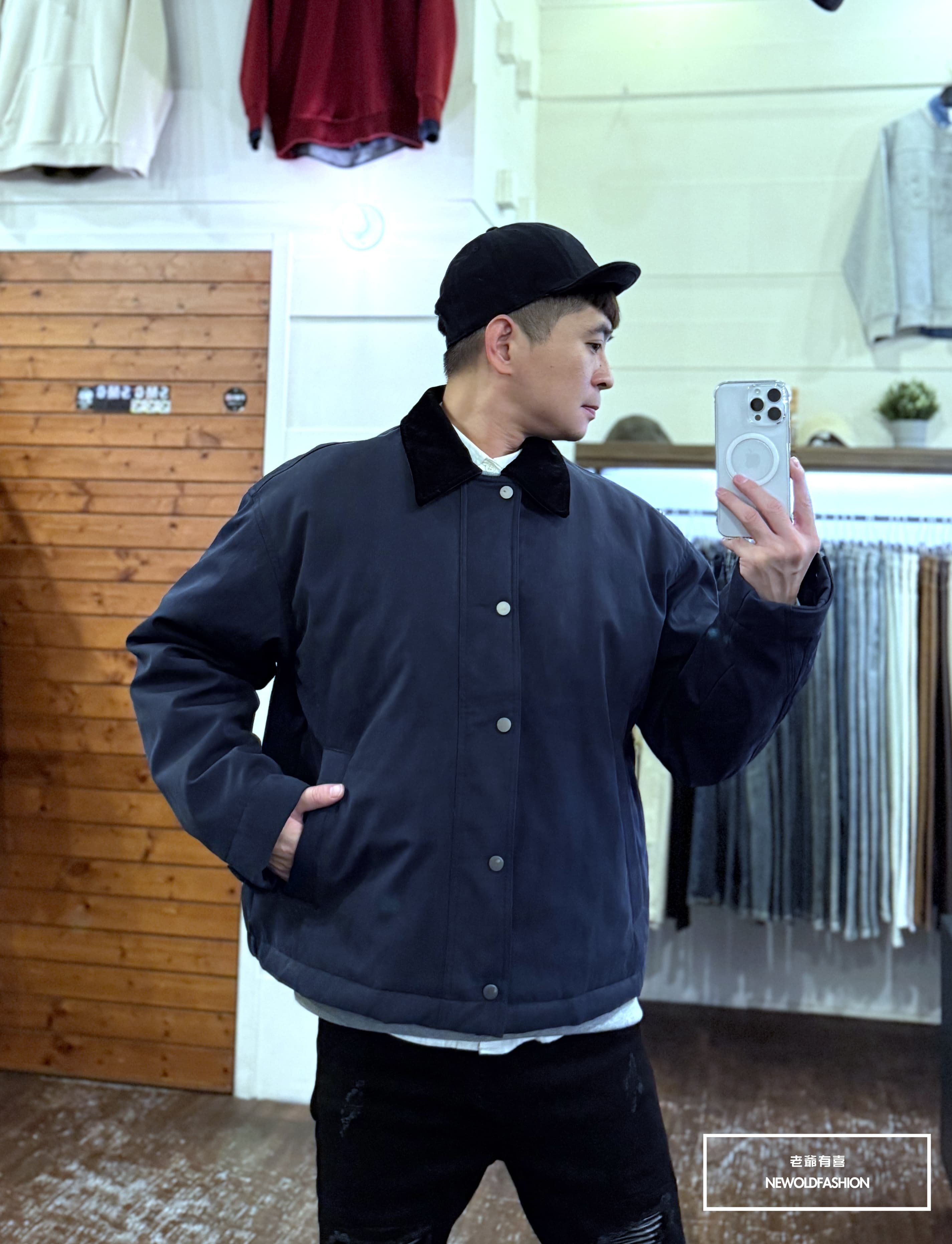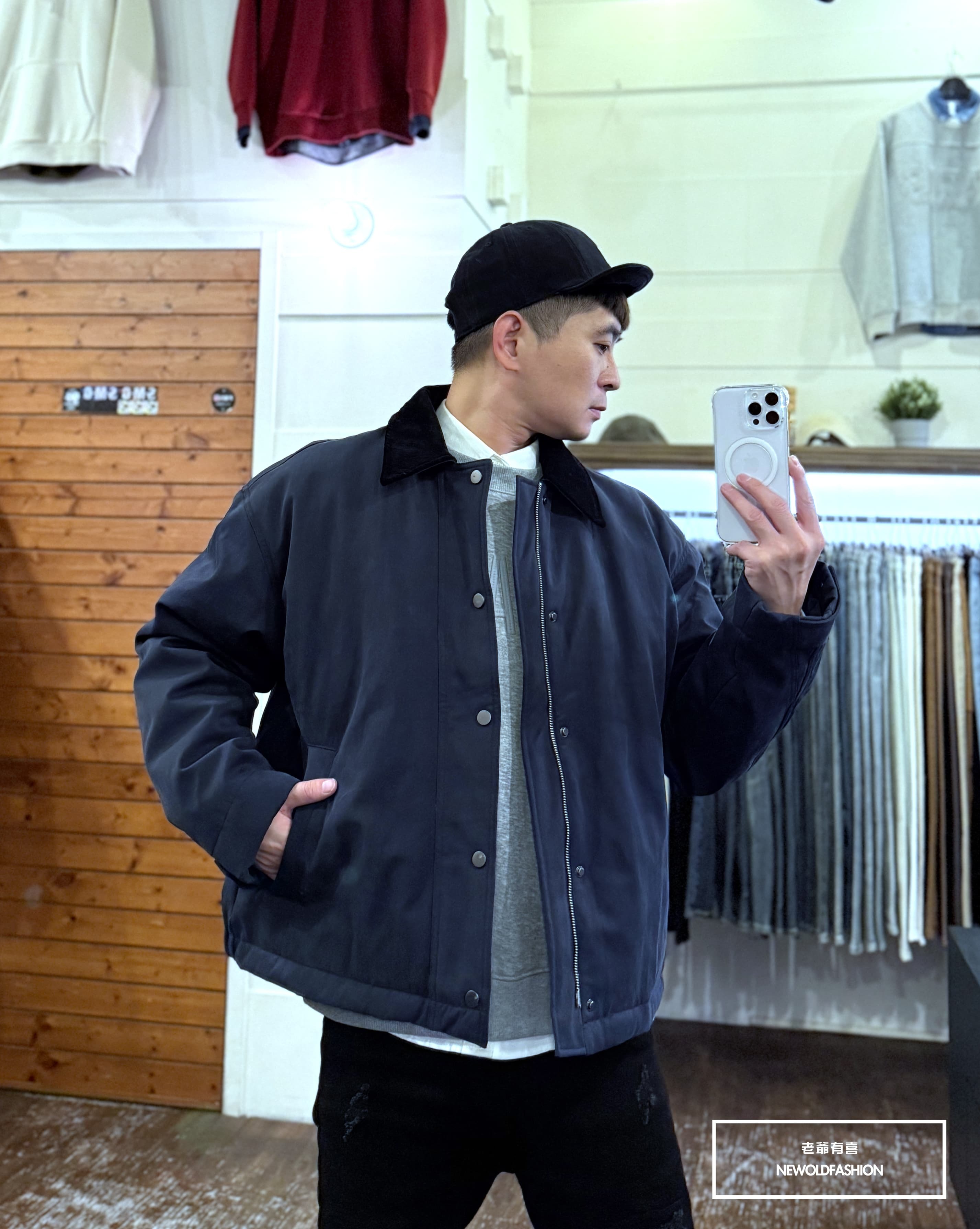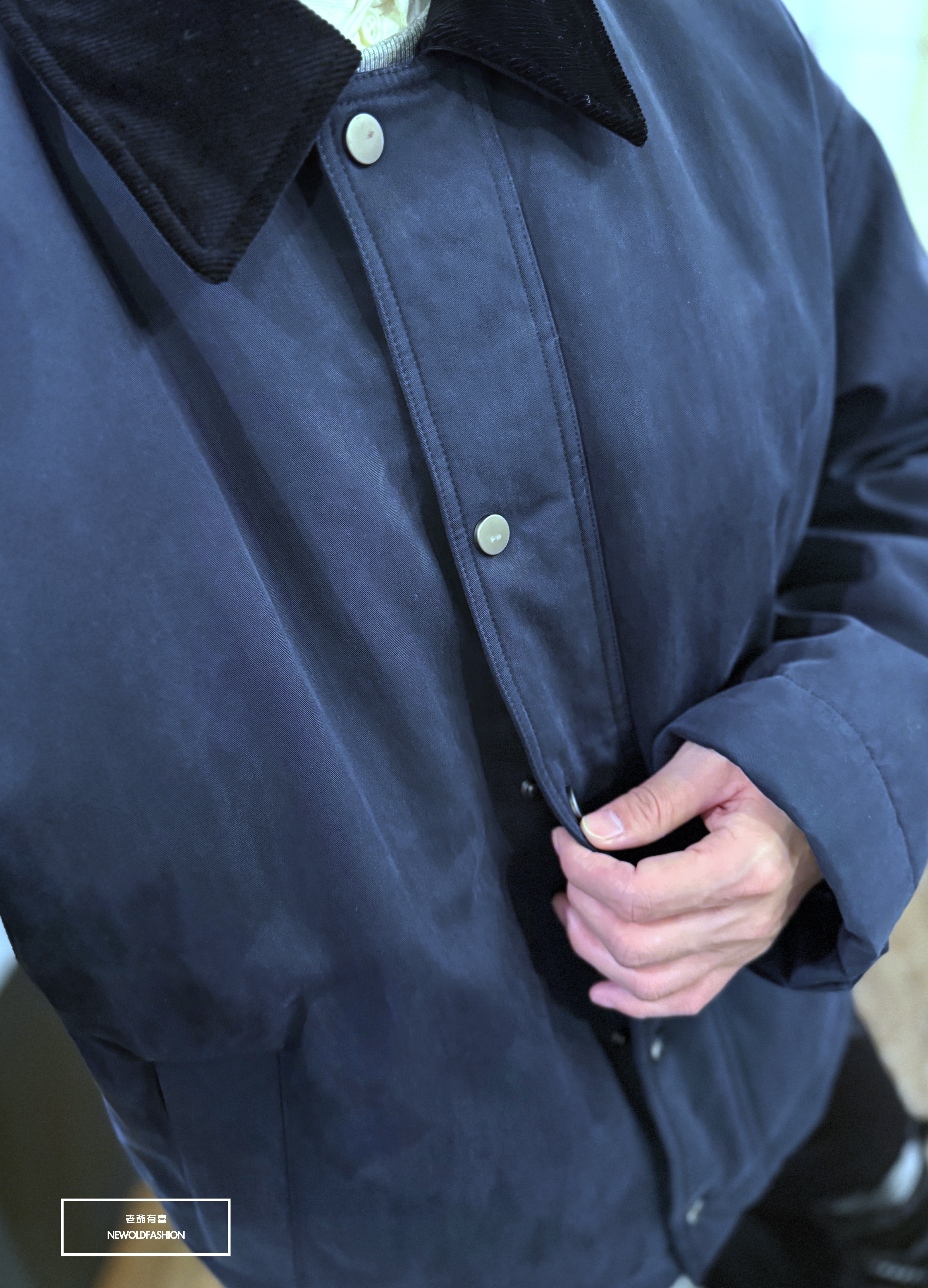 燈芯領釘釦雙拉鏈造型設計