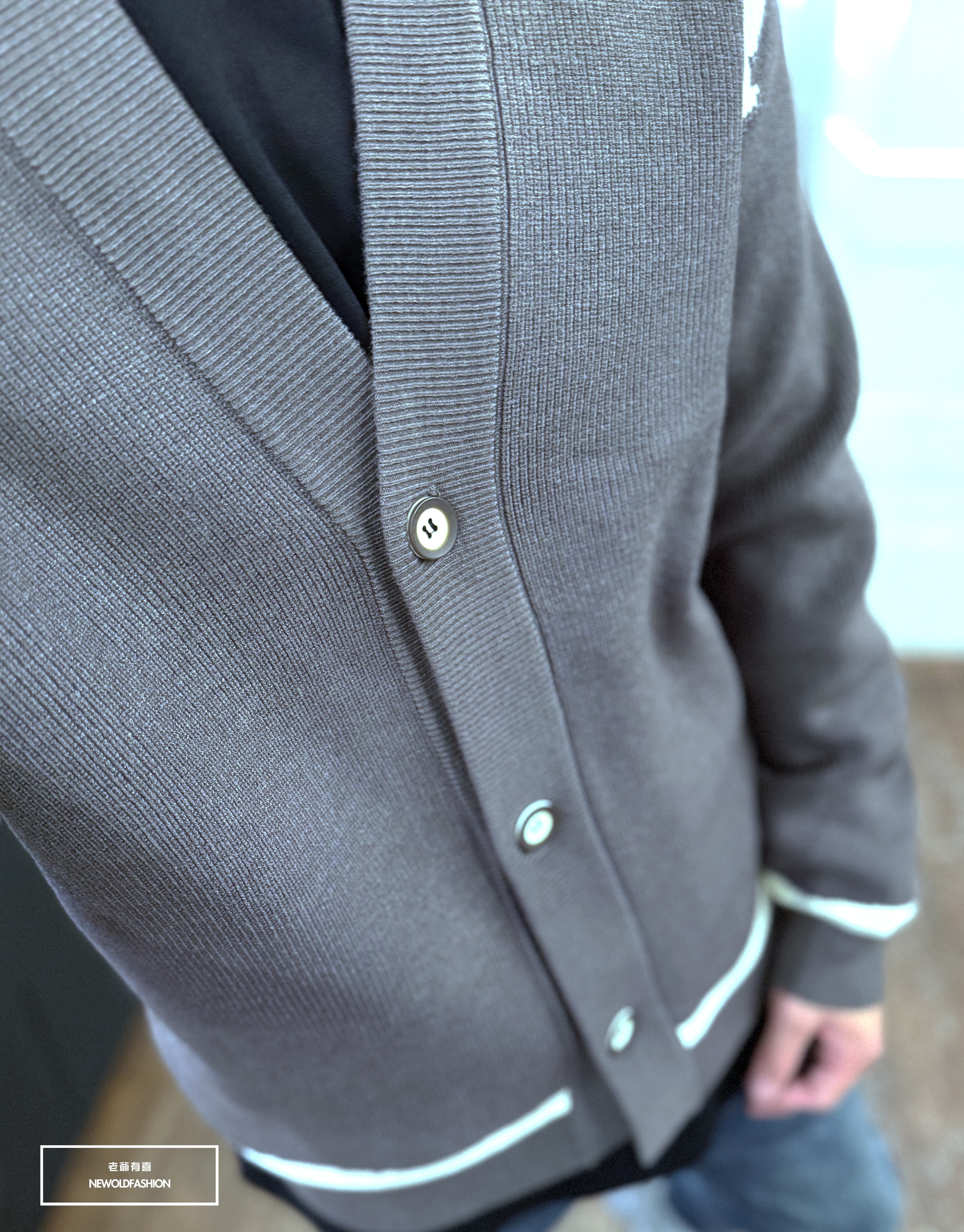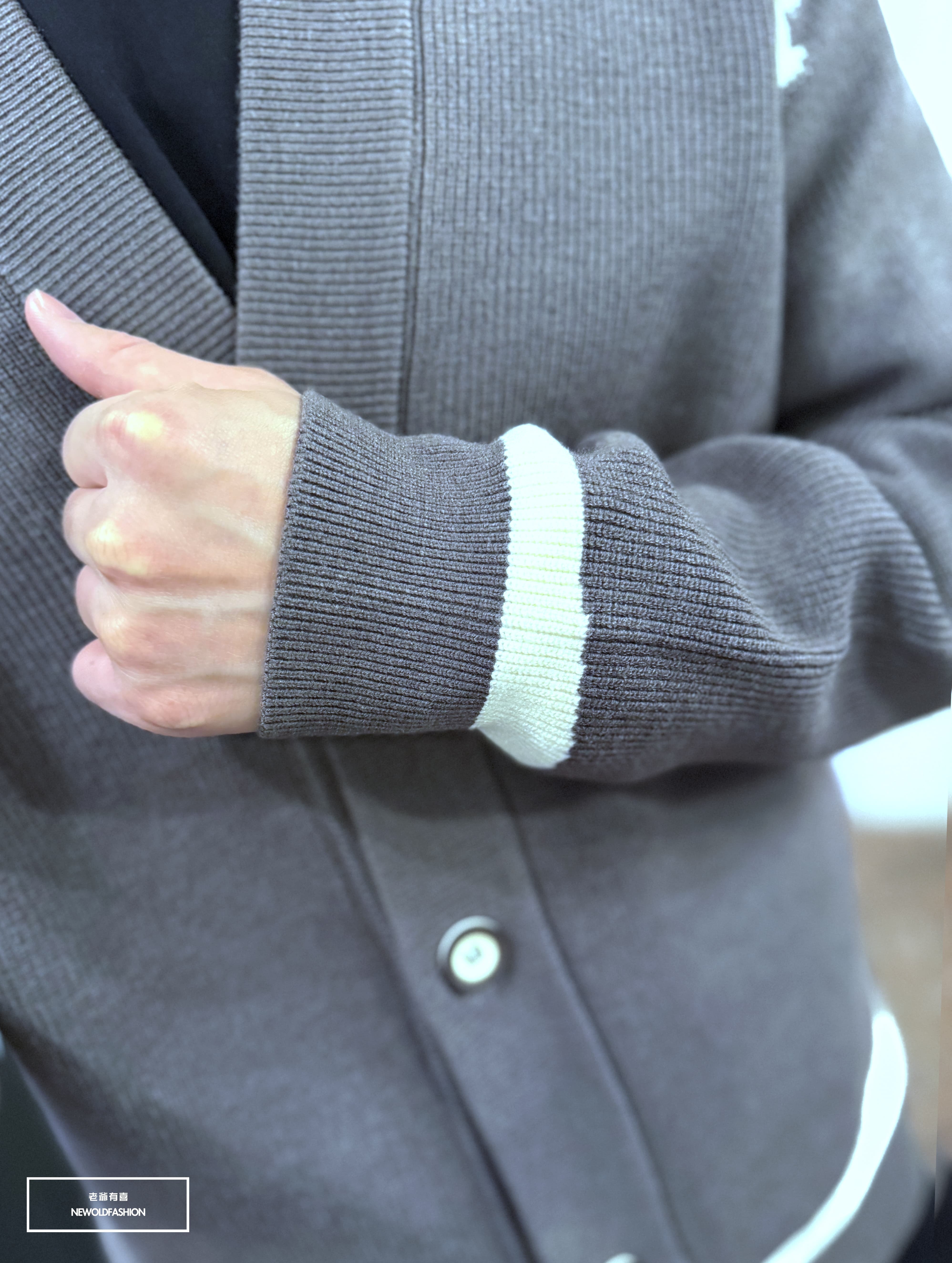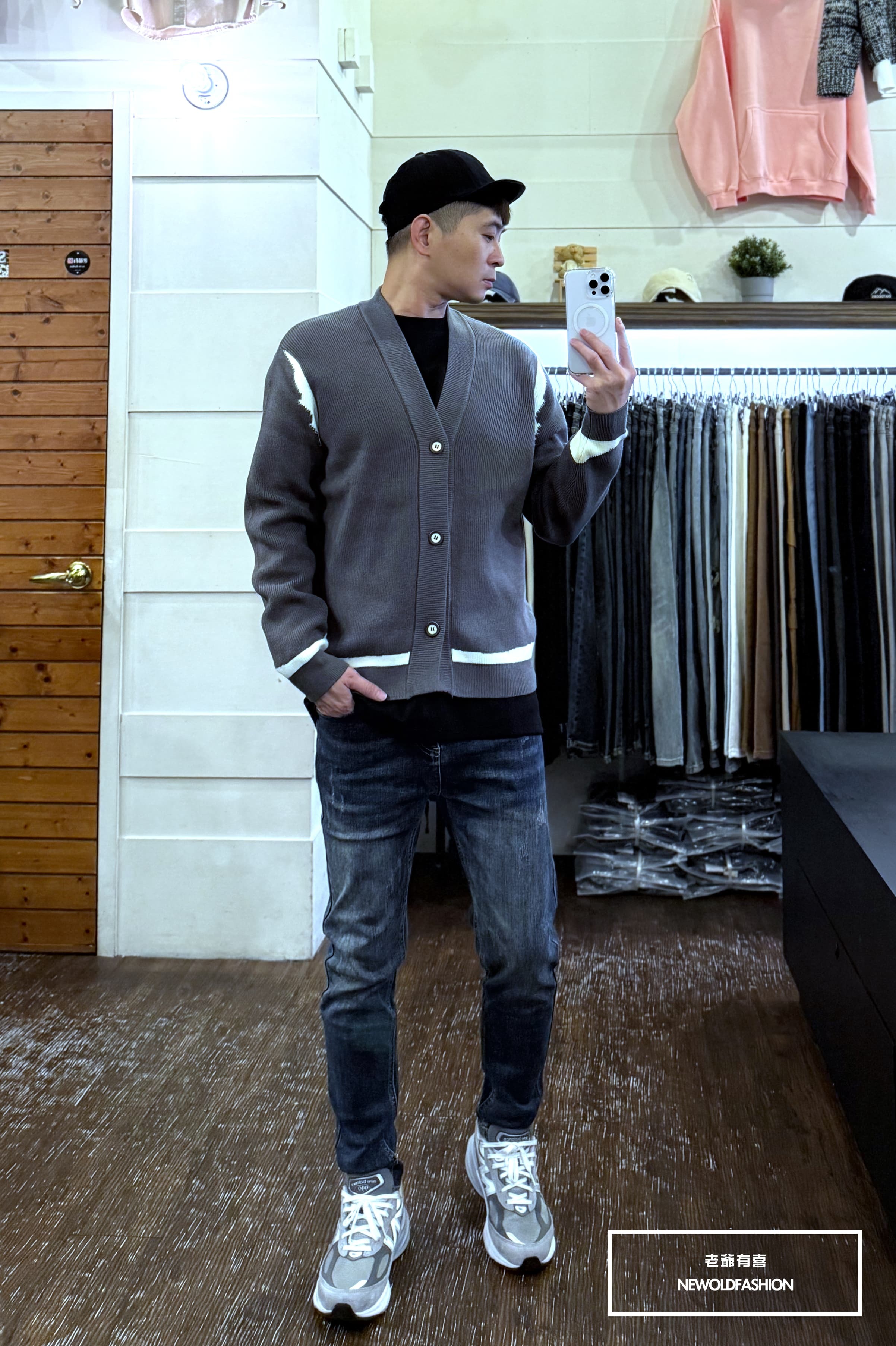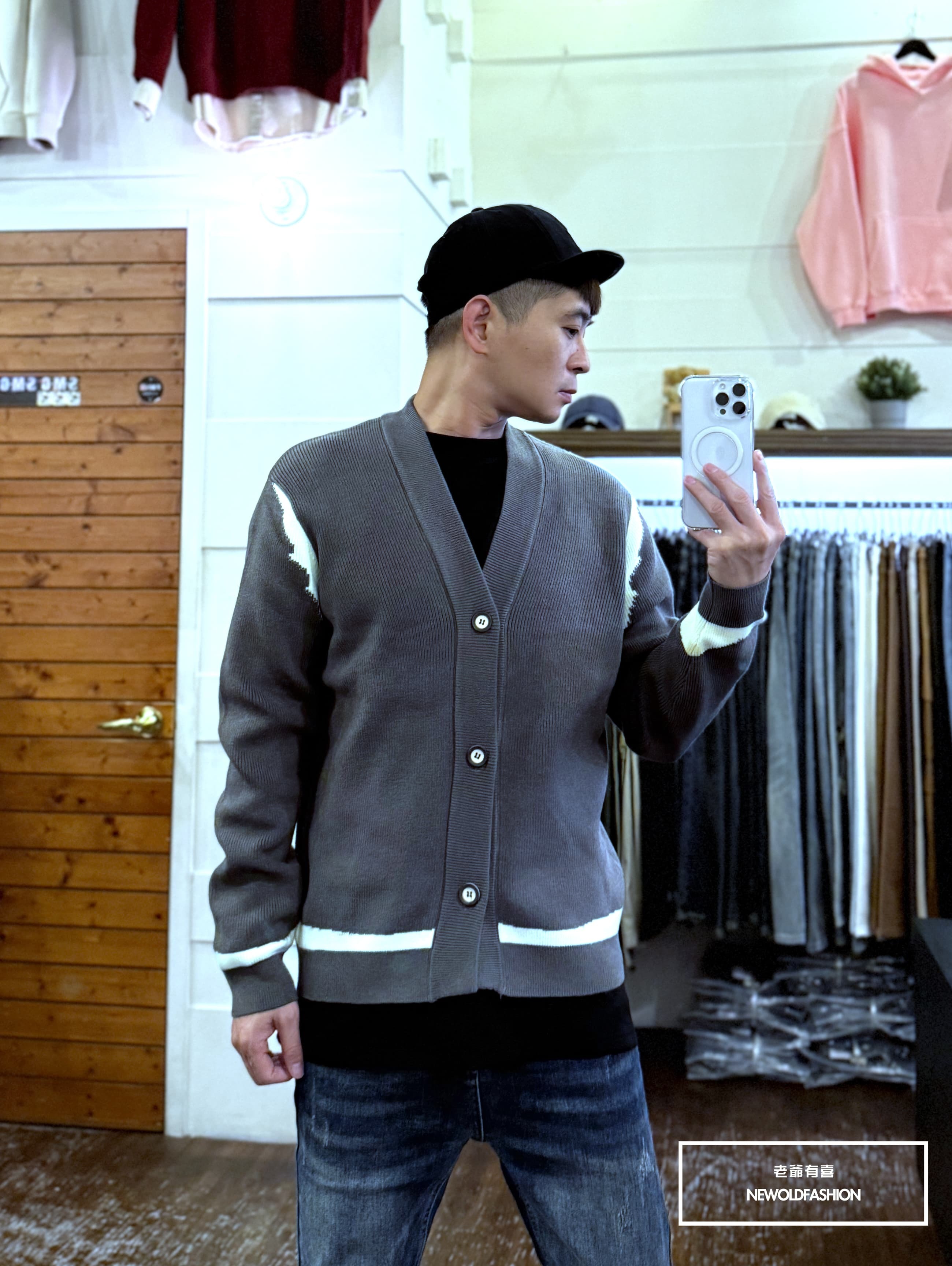 『新品上市』重磅撞色弧形滾邊針織罩衫(NOF25106702)-灰咖