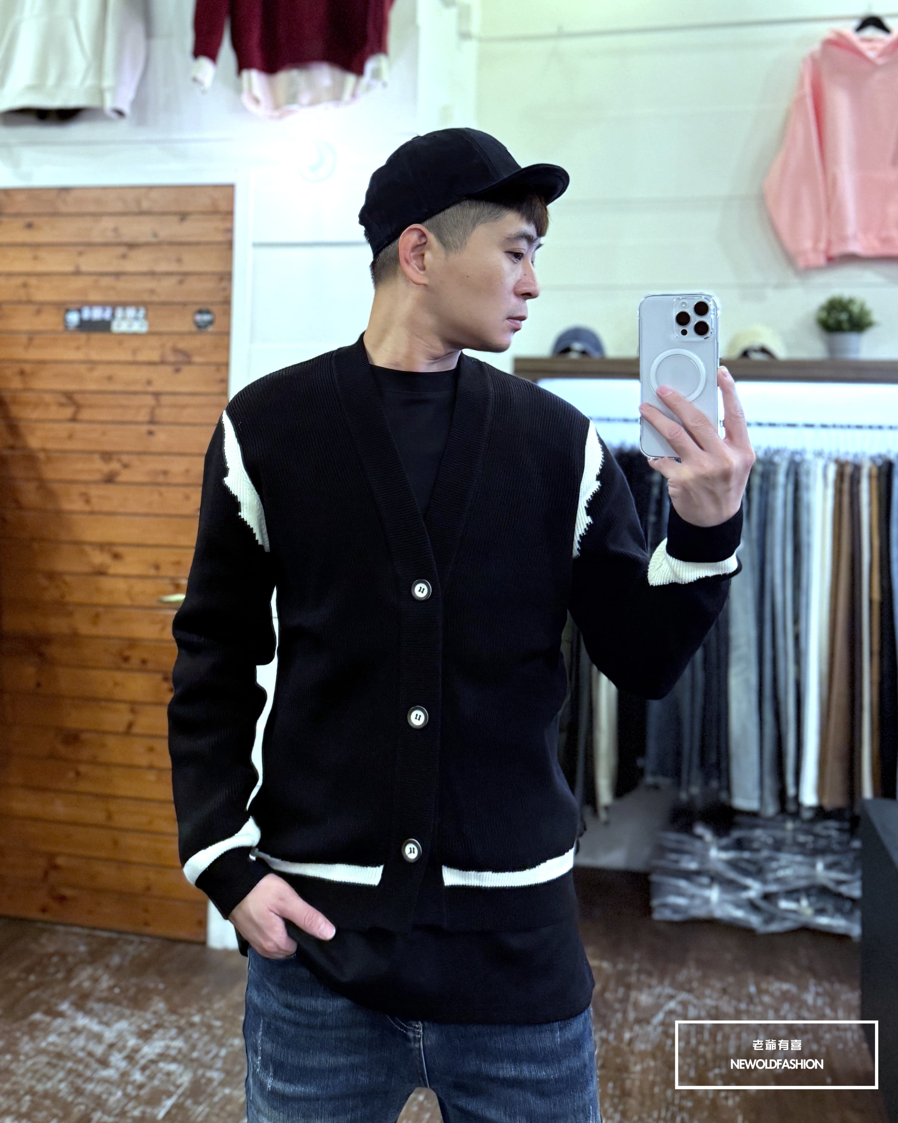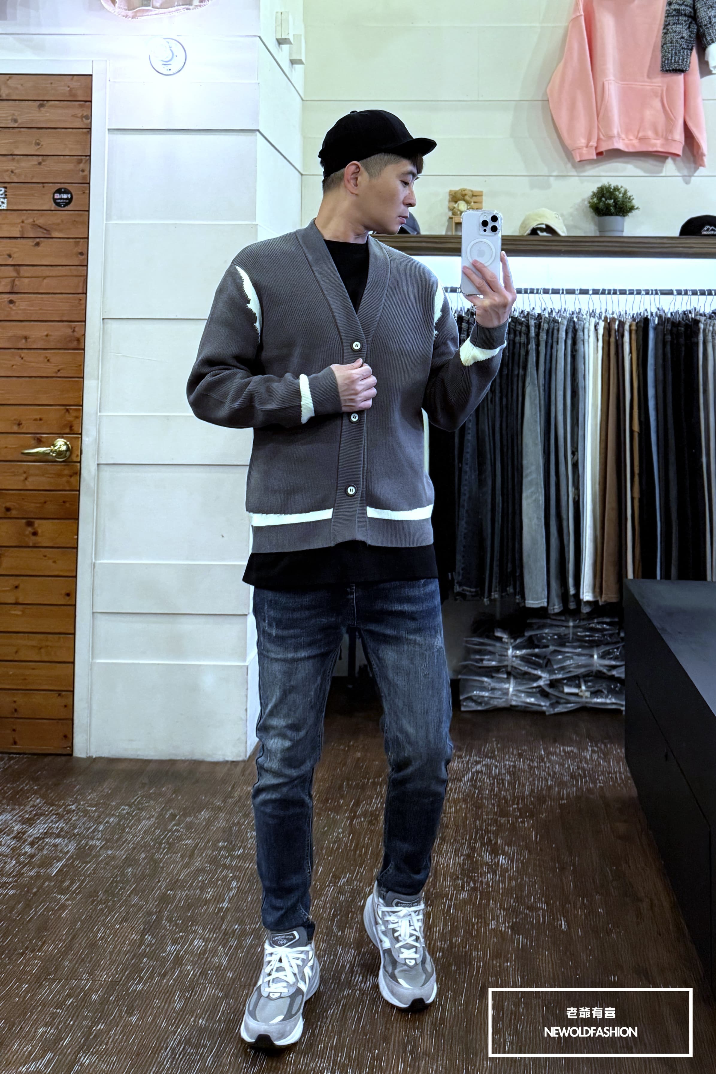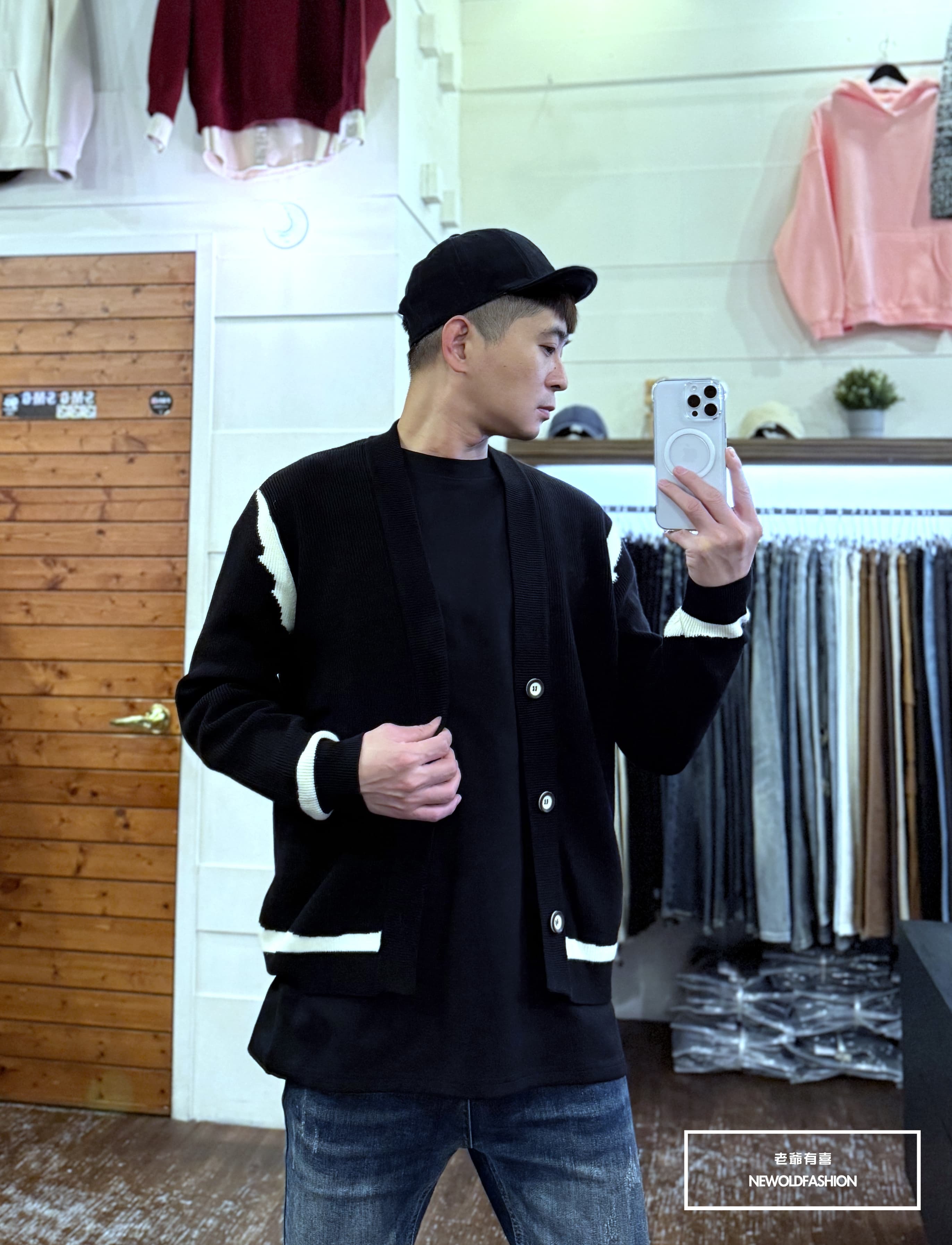 『新品上市』重磅撞色弧形滾邊針織罩衫(NOF25106702)-灰咖