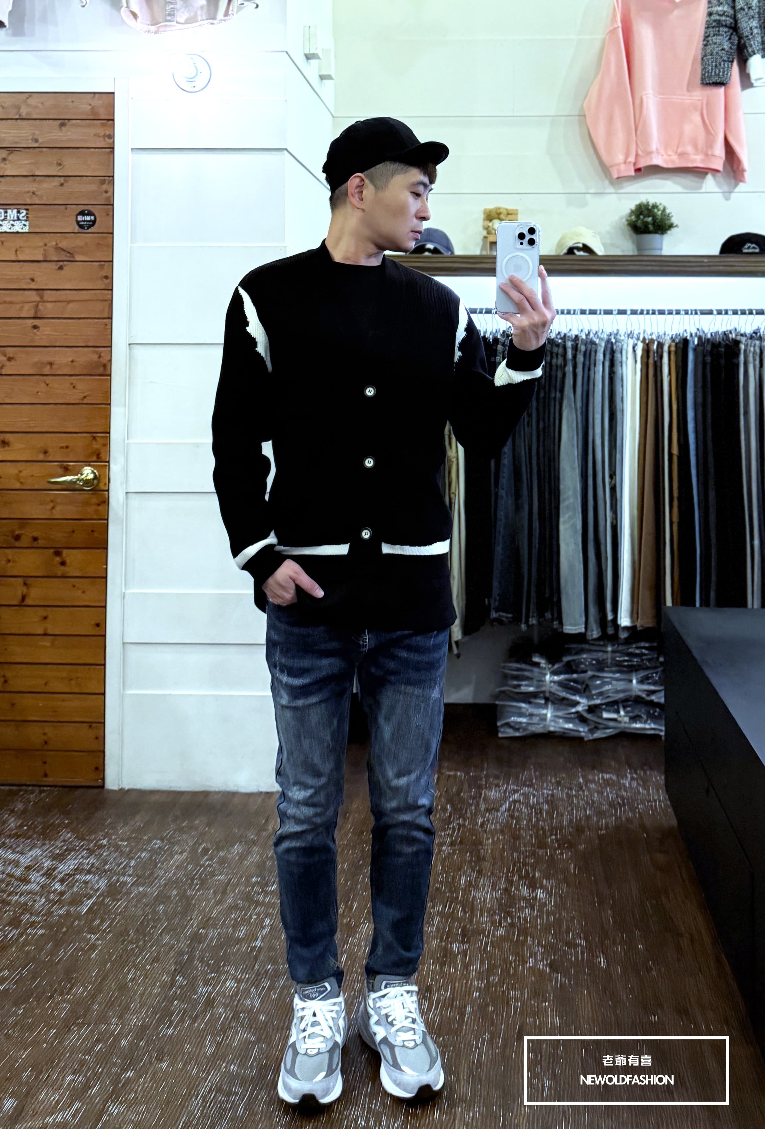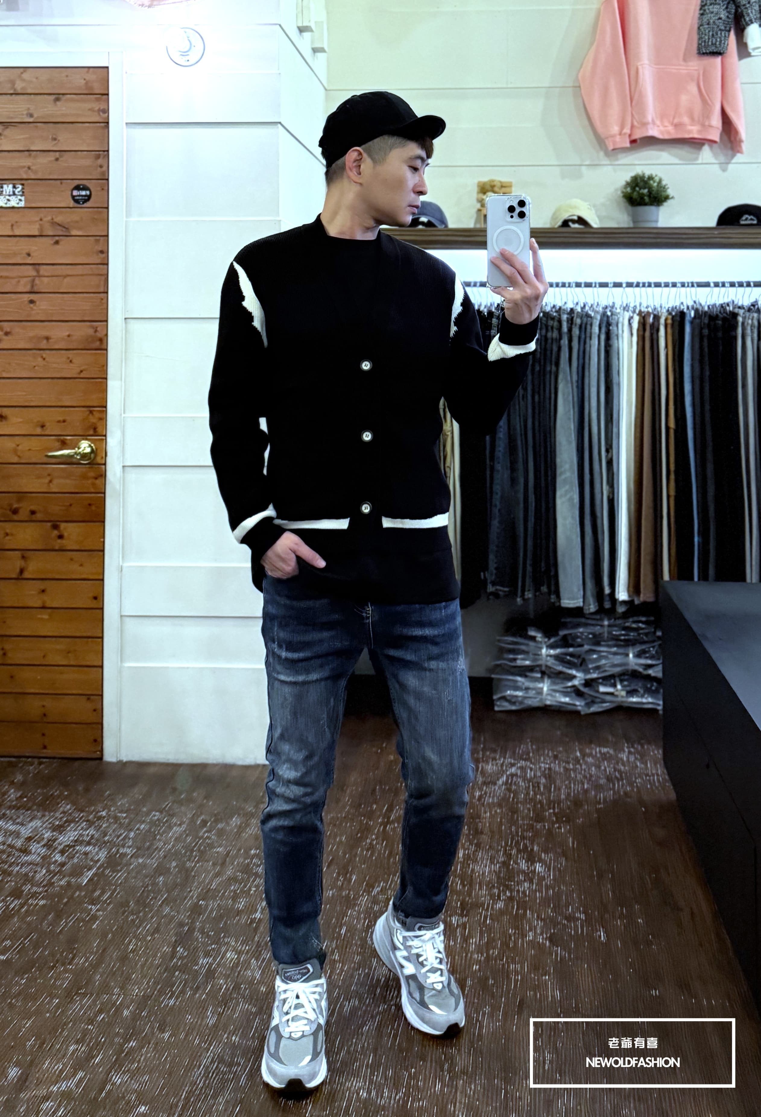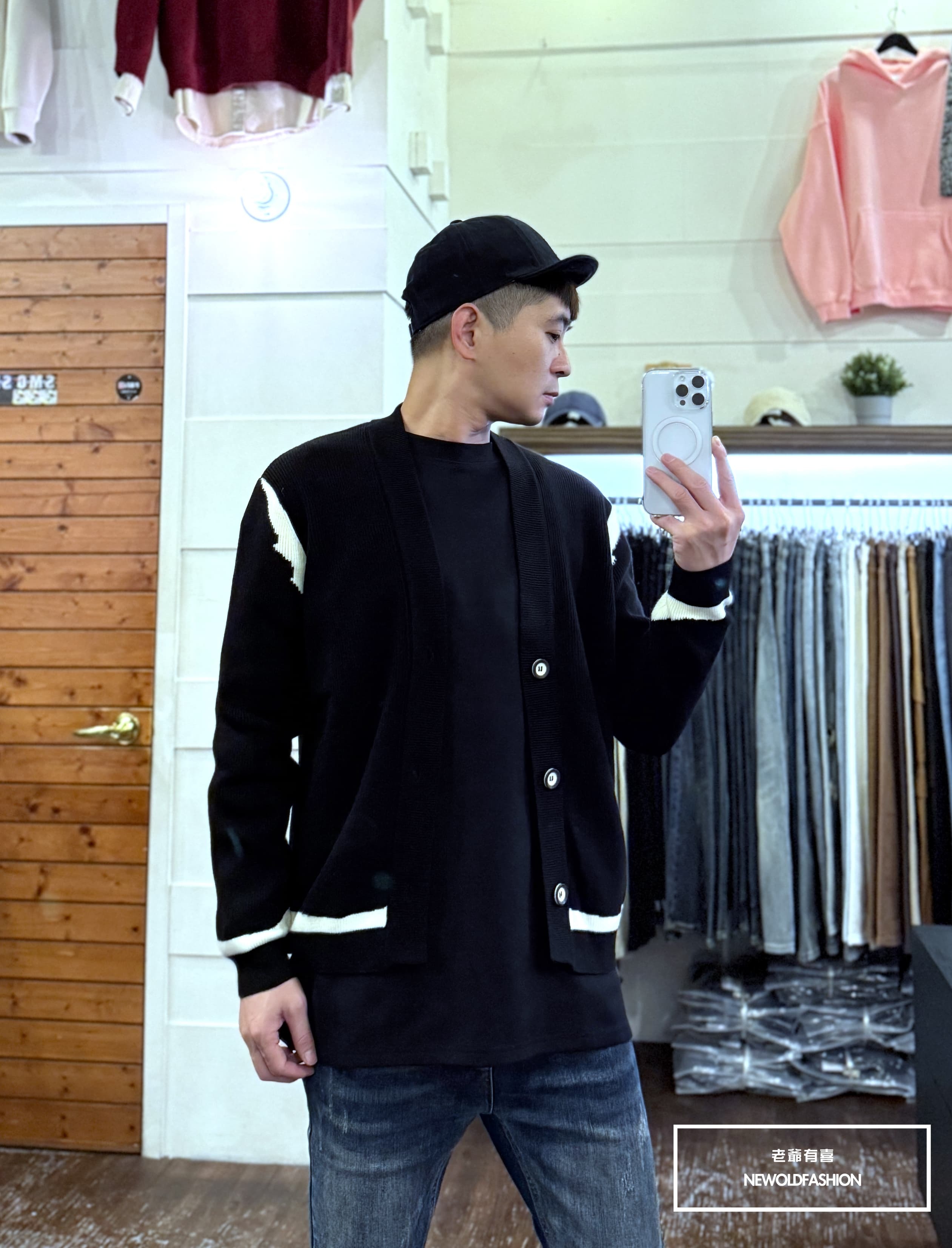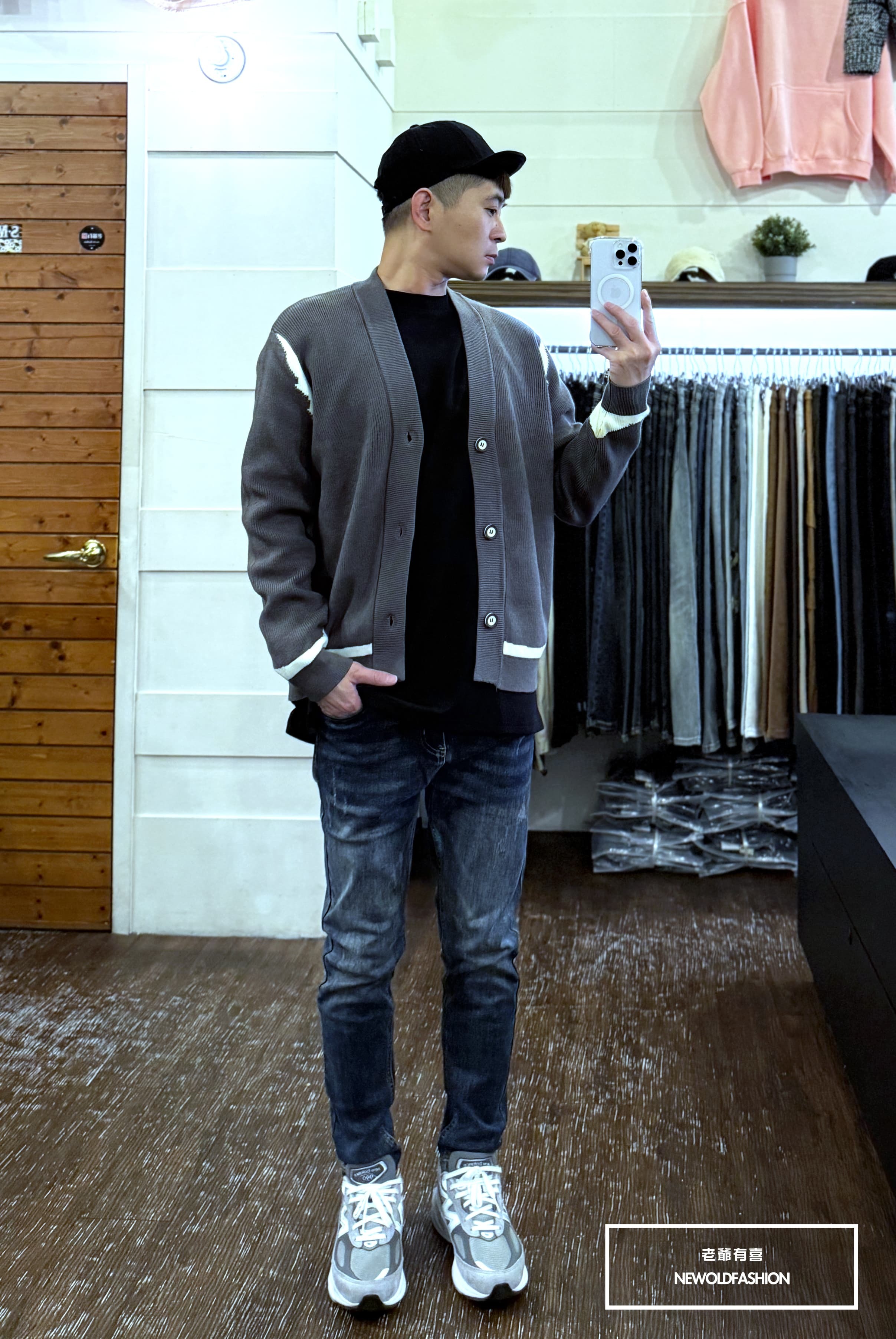 『新品上市』重磅撞色弧形滾邊針織罩衫(NOF25106702)-灰咖