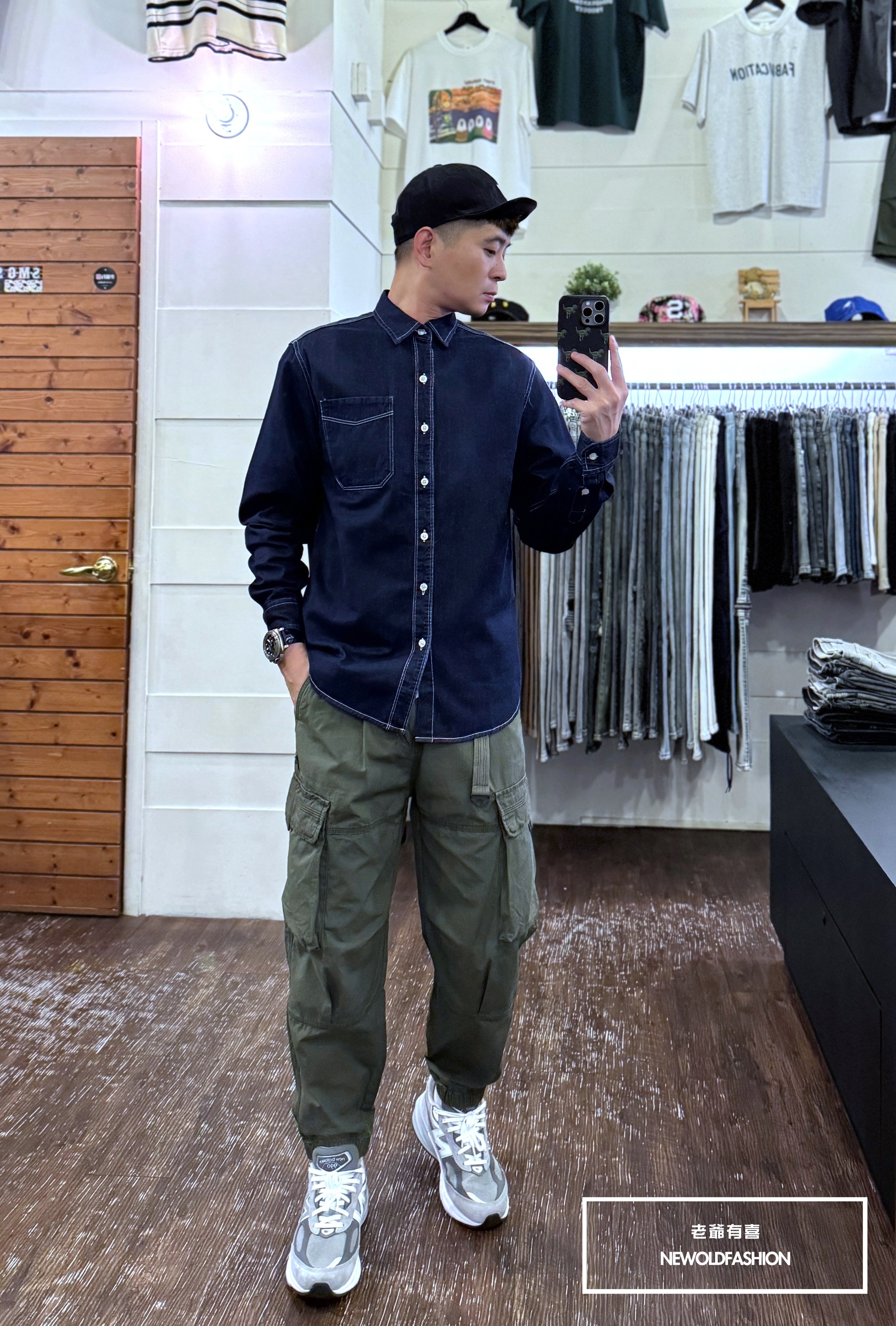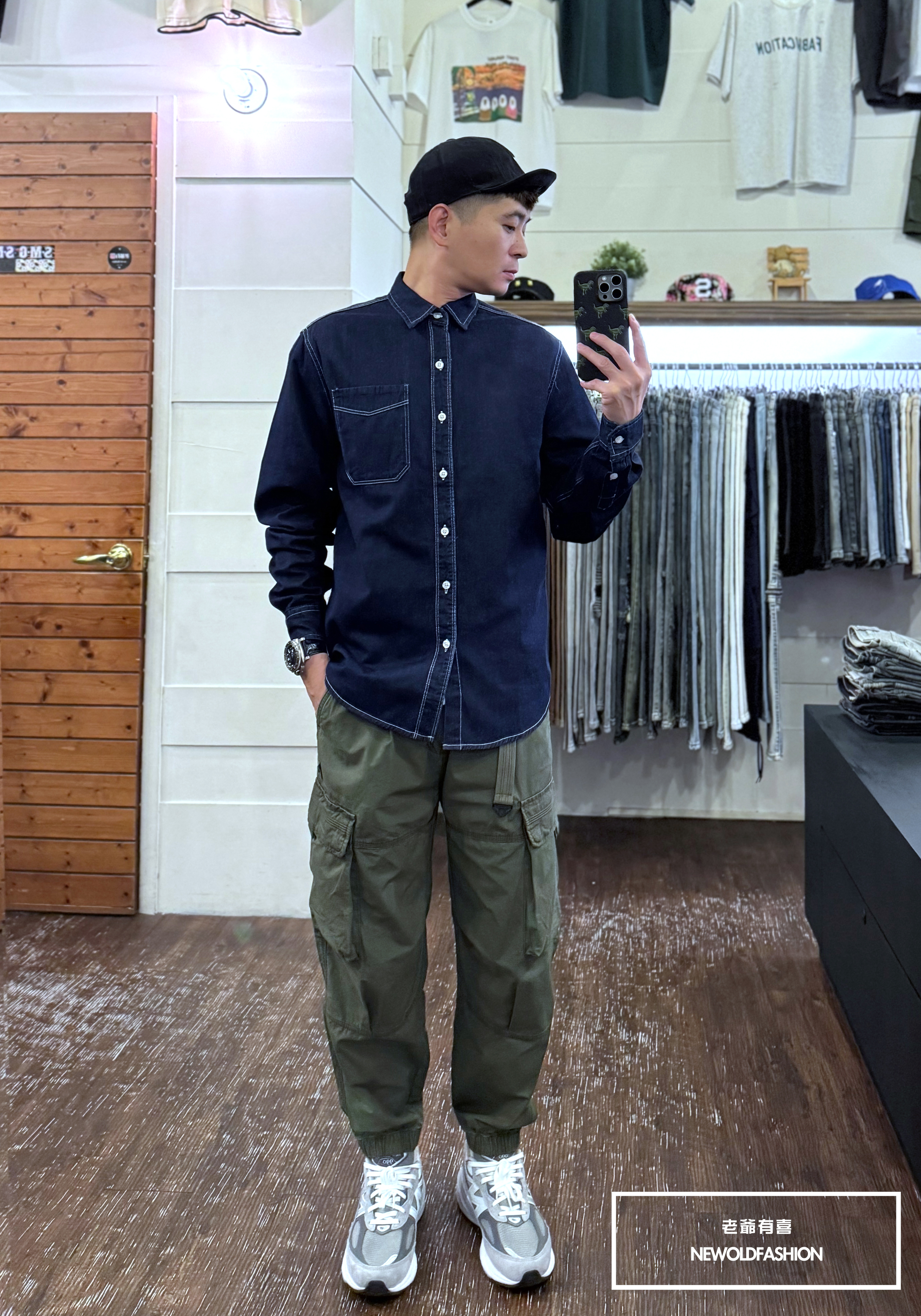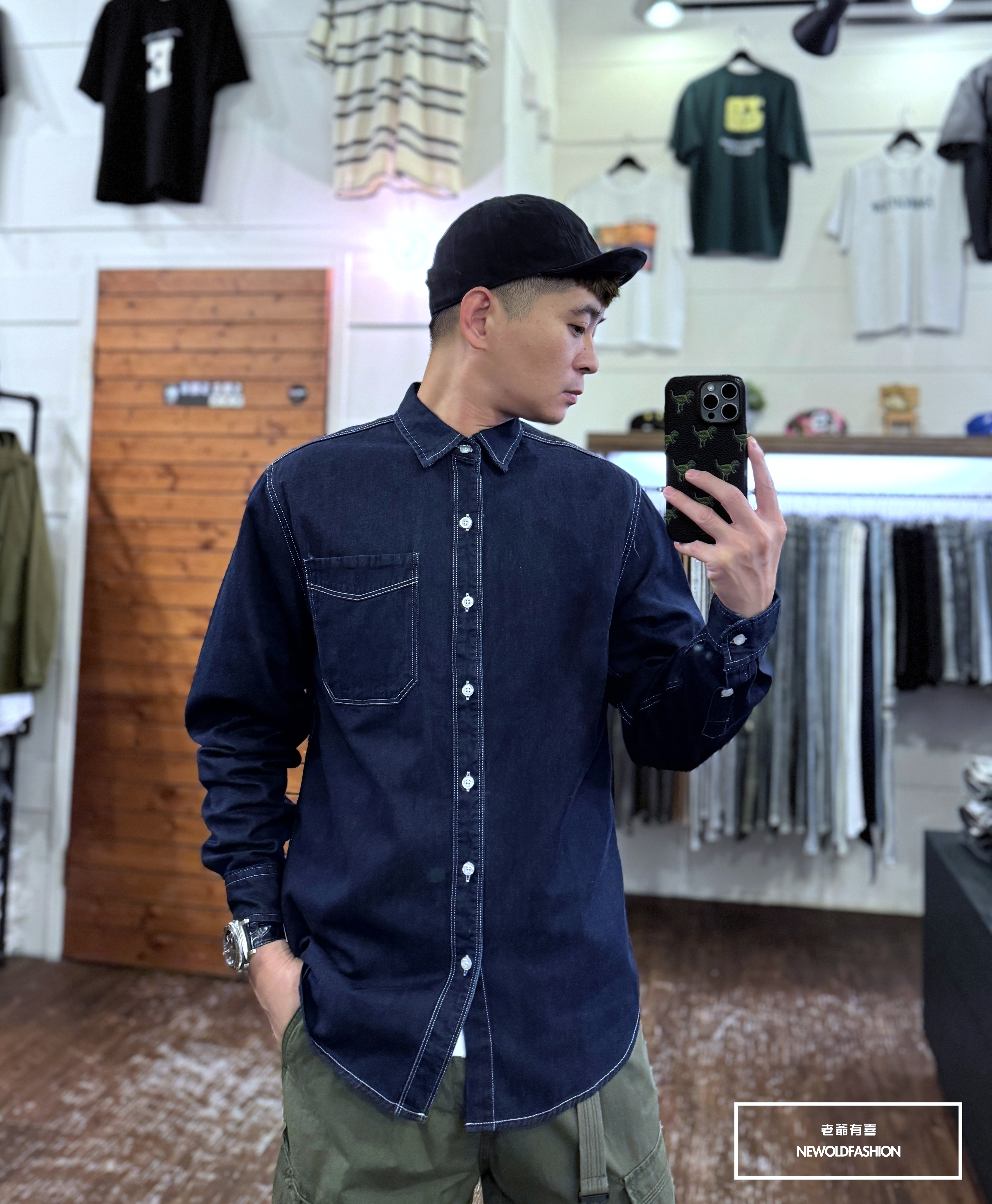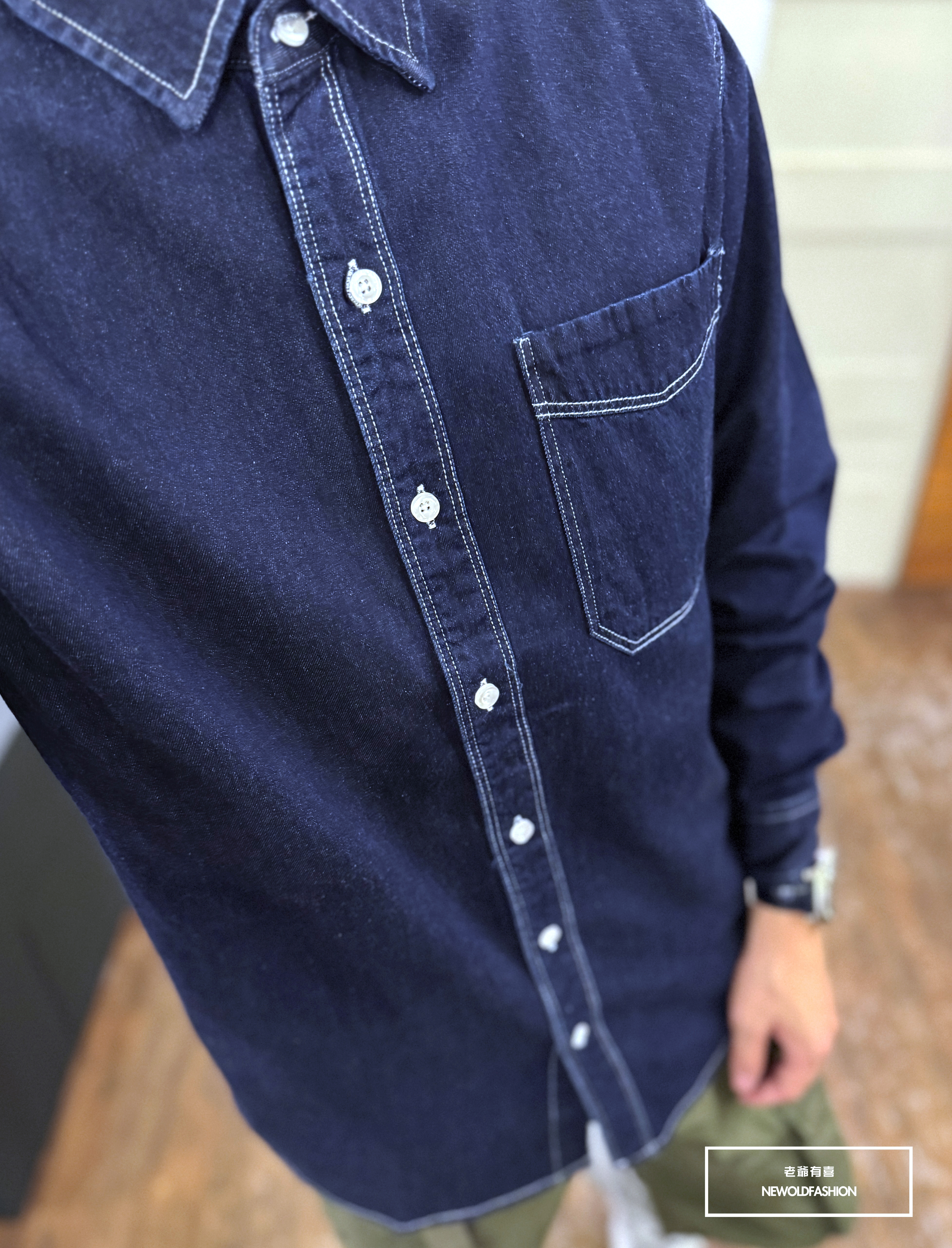 『新品上市』重磅車線單口袋牛仔襯衫-深藍(NOF24098087)