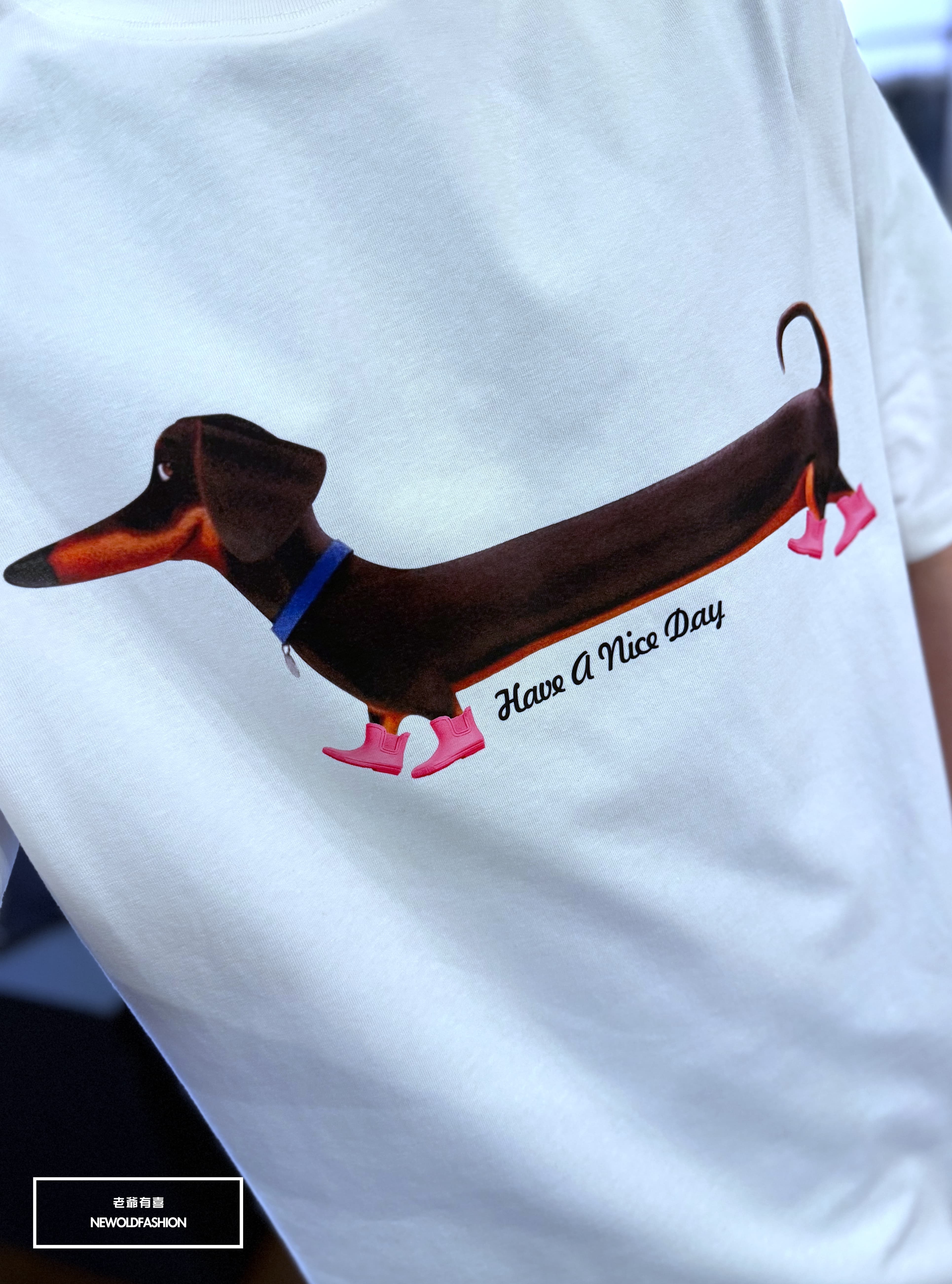 『新品上市』重磅項圈臘腸狗短T(NOF25038154)-白