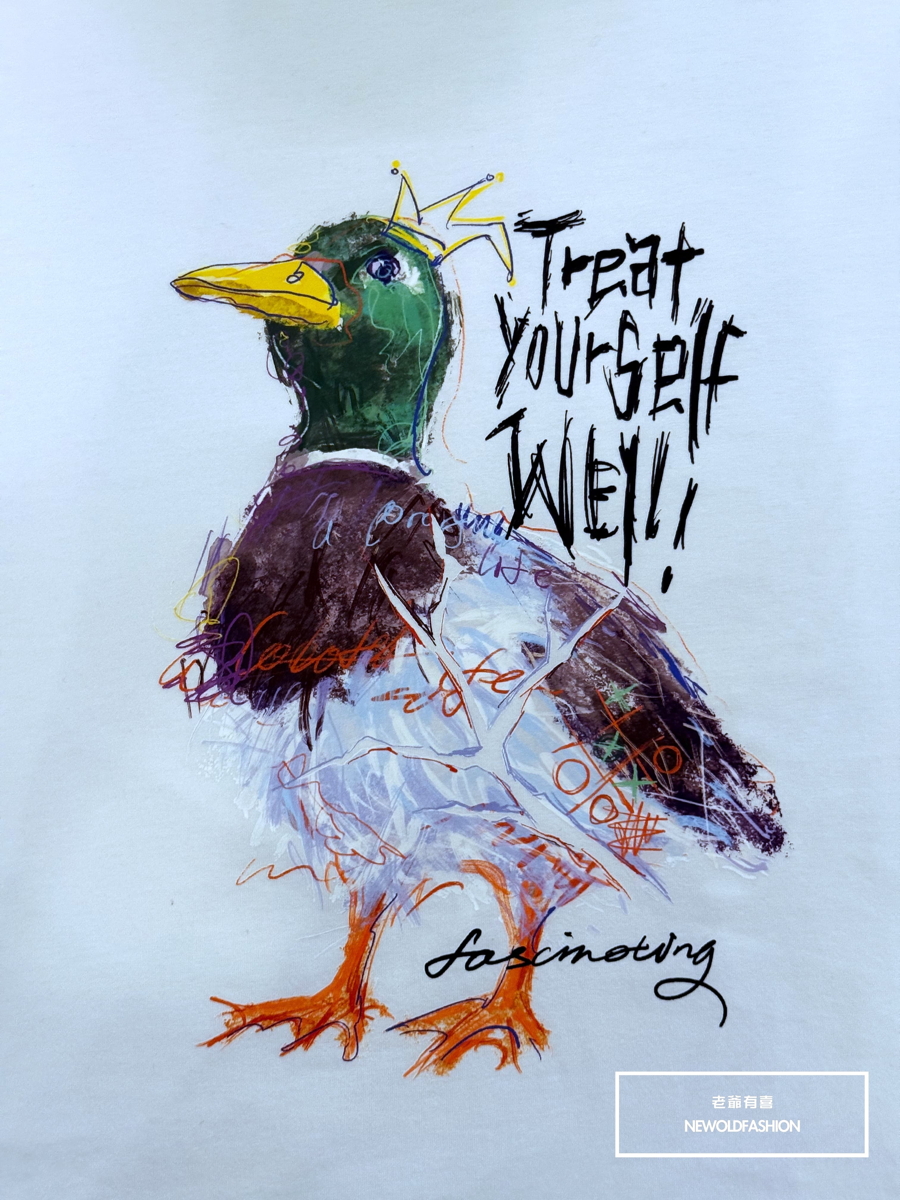 『新品上市』重磅素描皇冠鴨短T(NOF25038179)-白