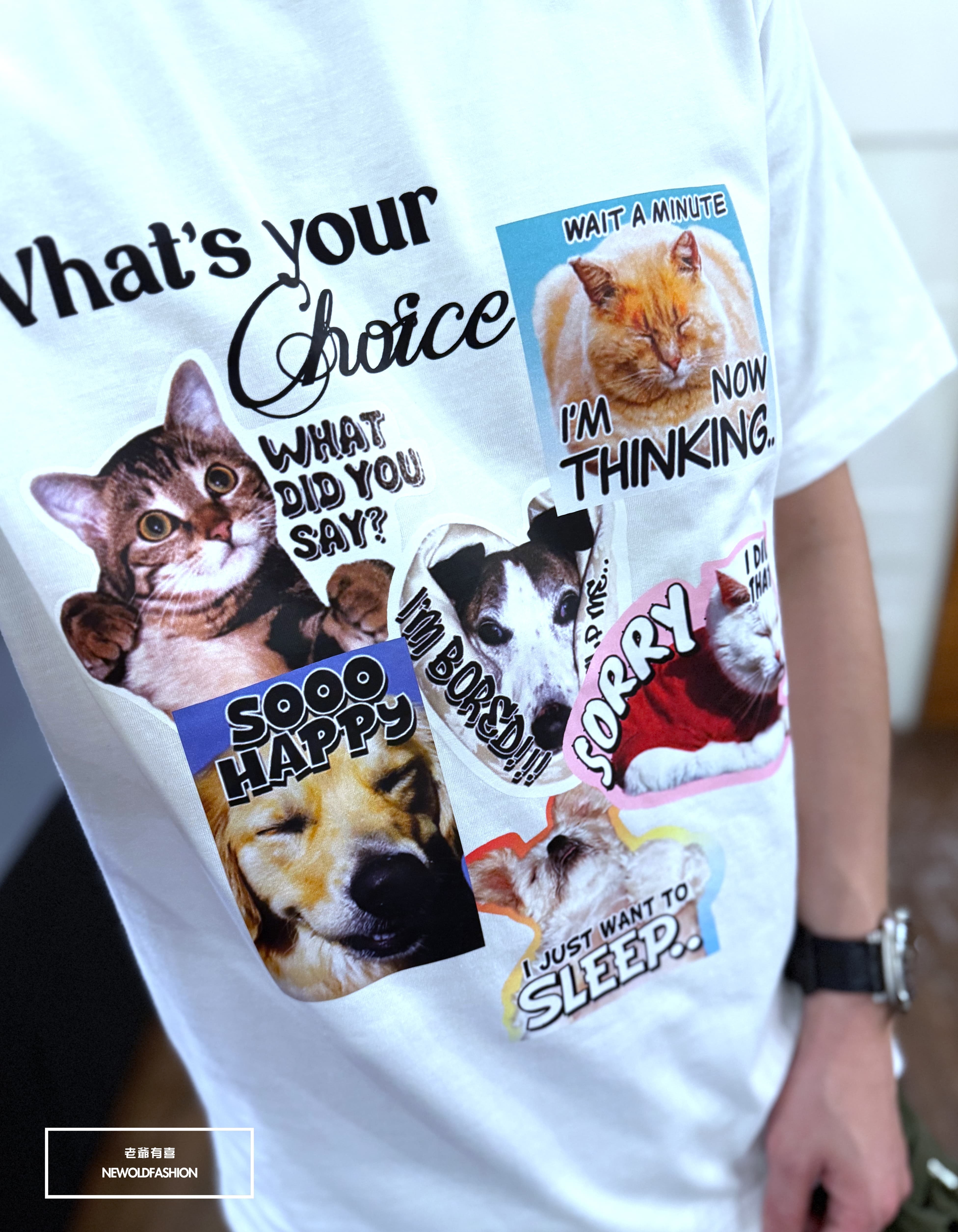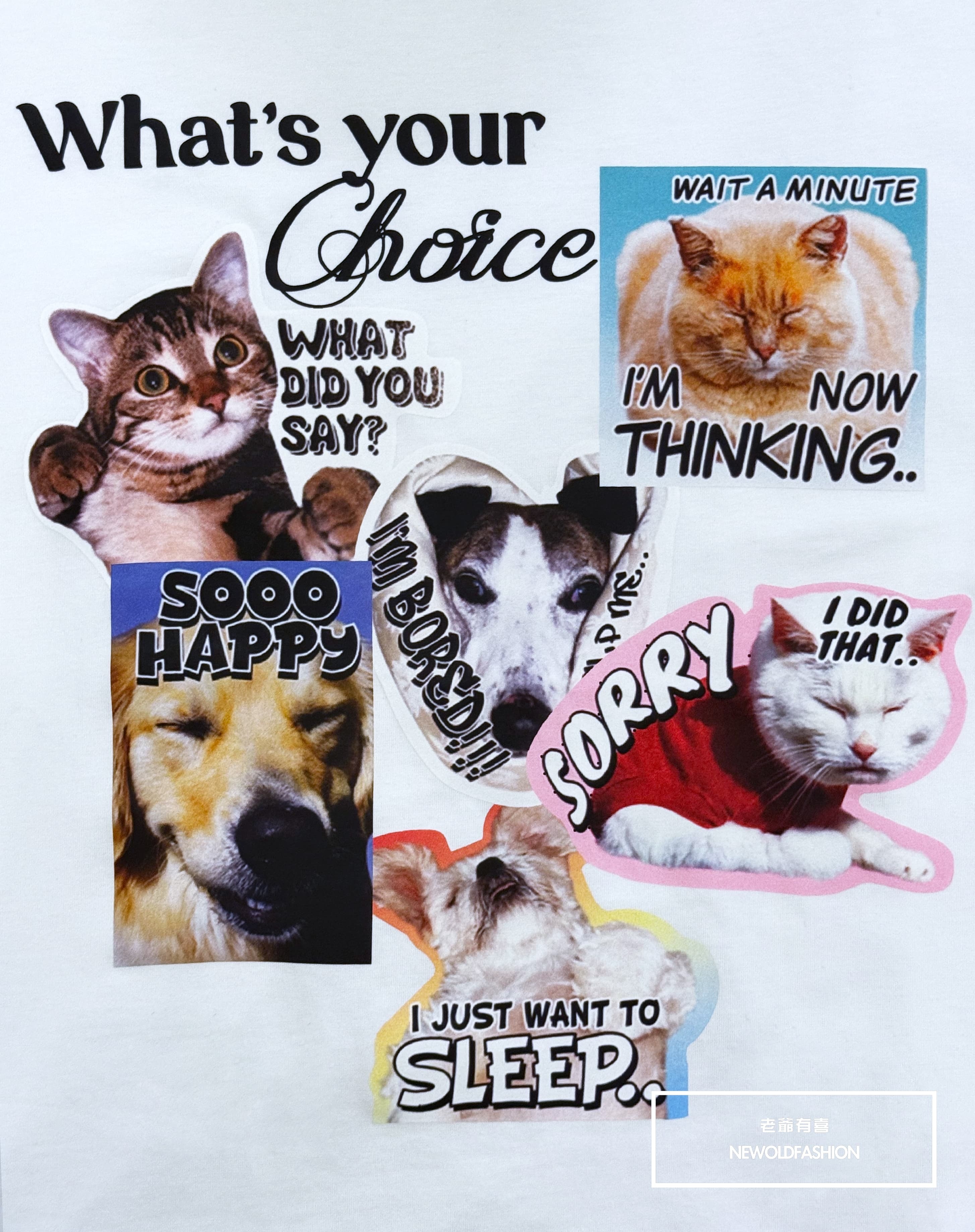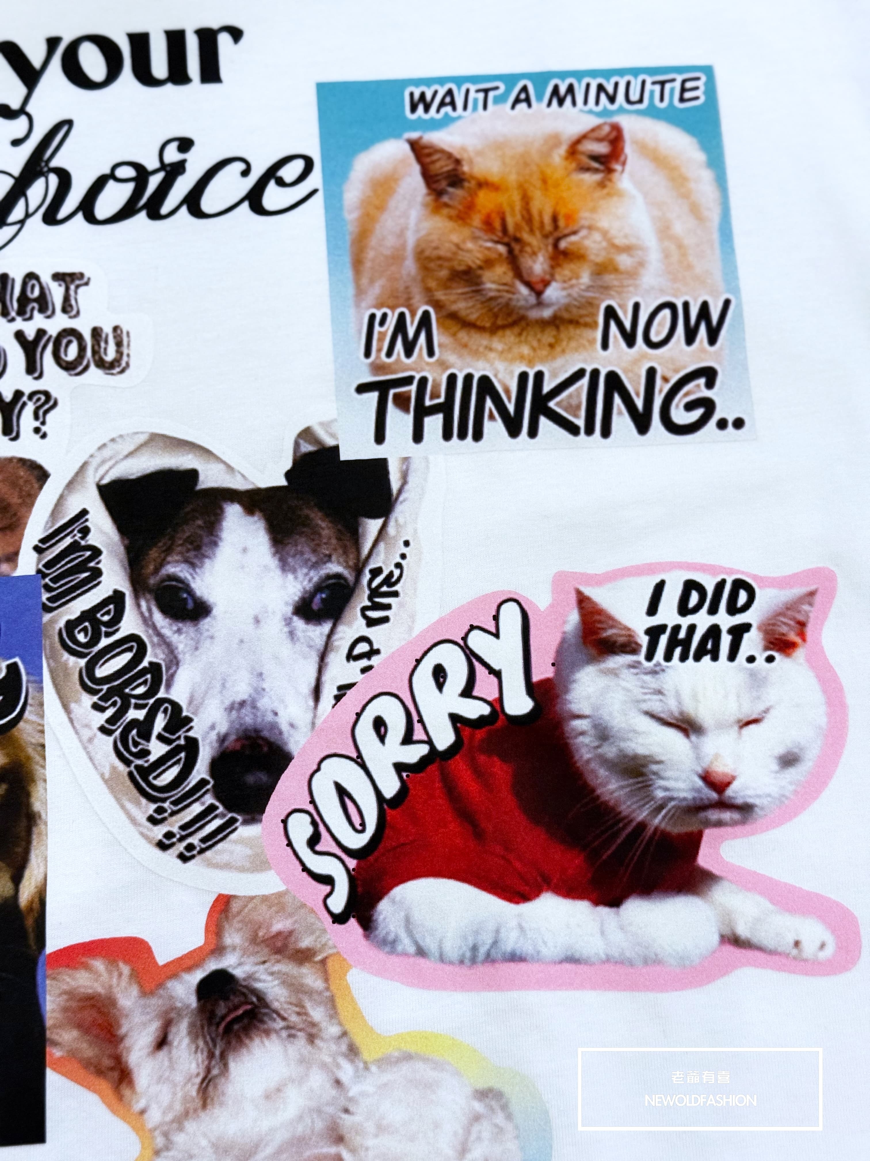 『新品上市』重磅貓狗便利貼短T(NOF25038186)-白