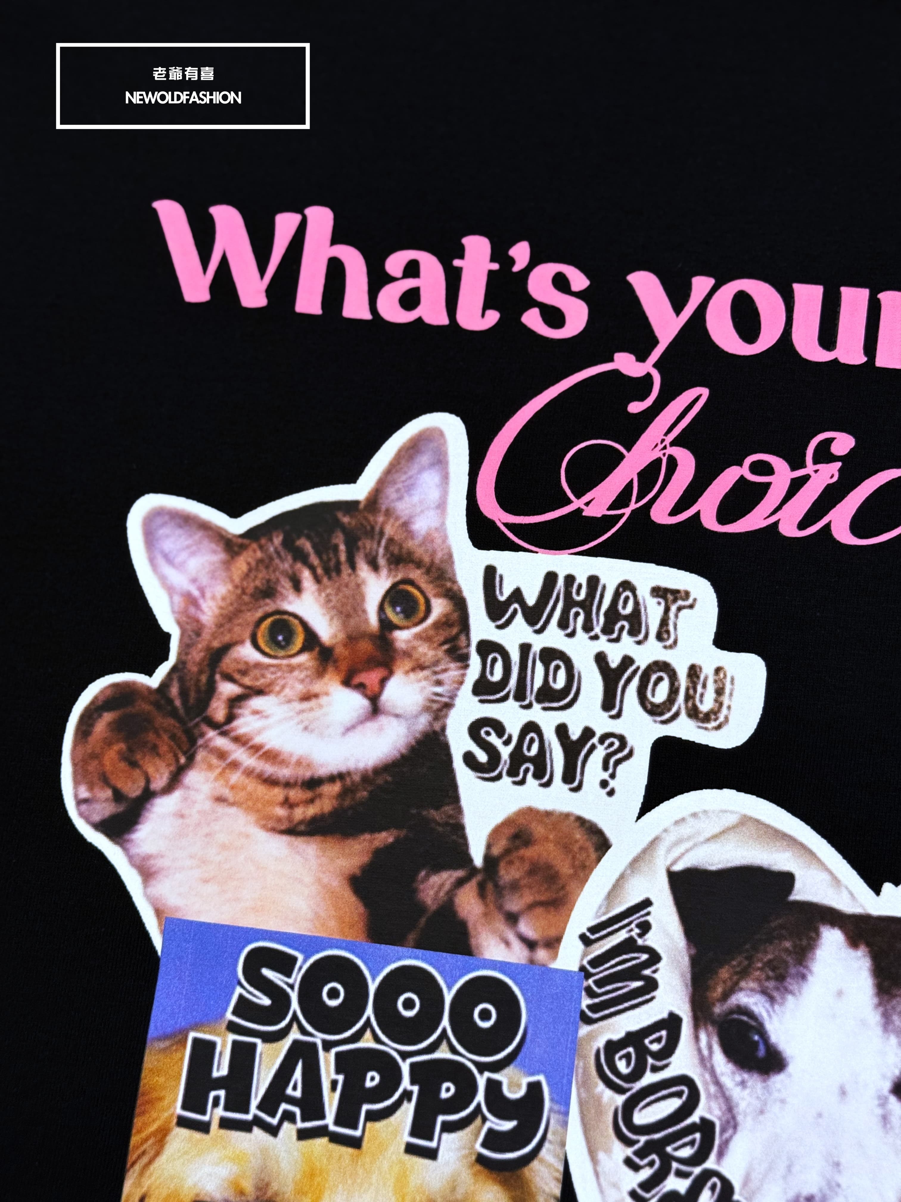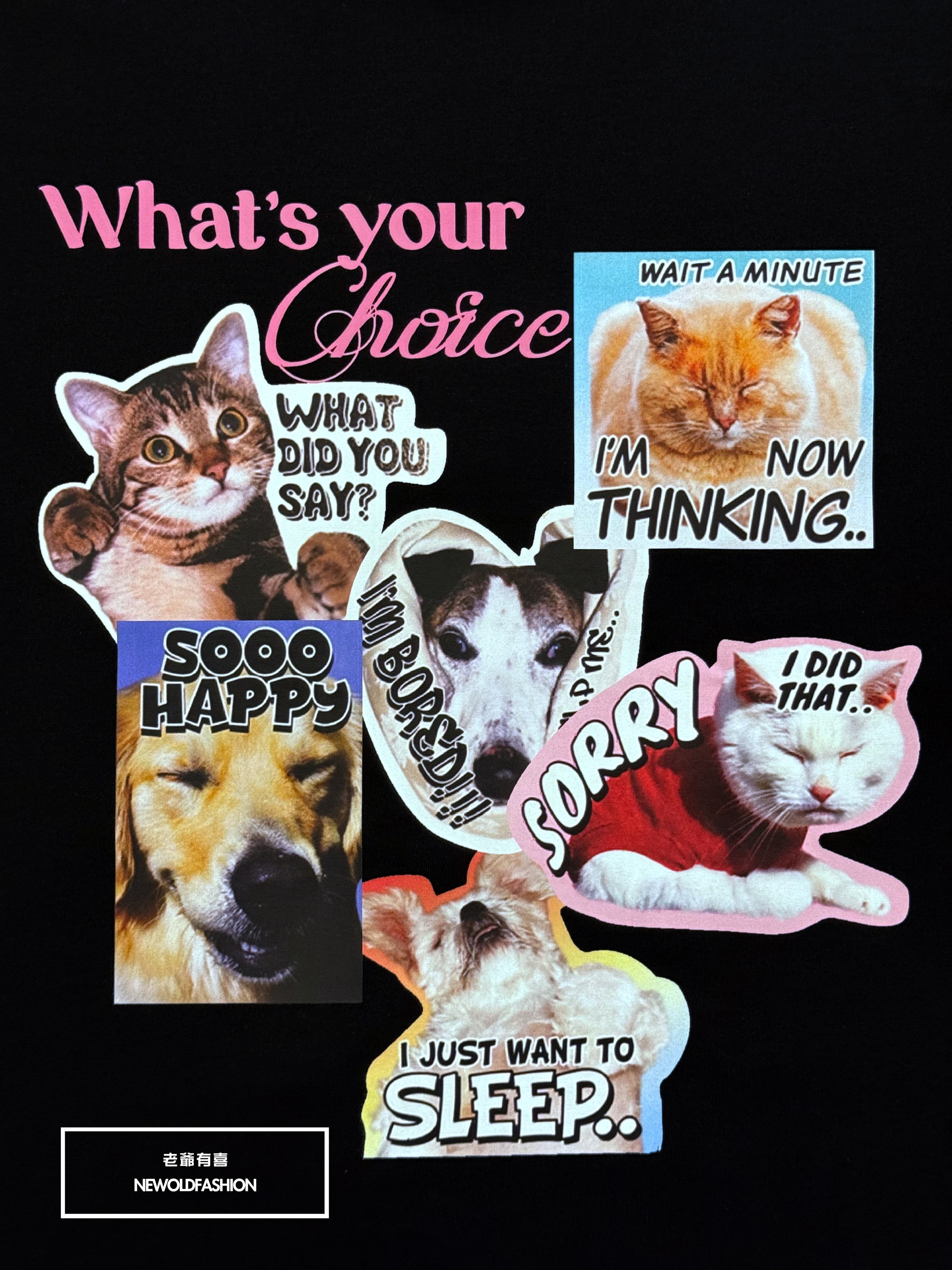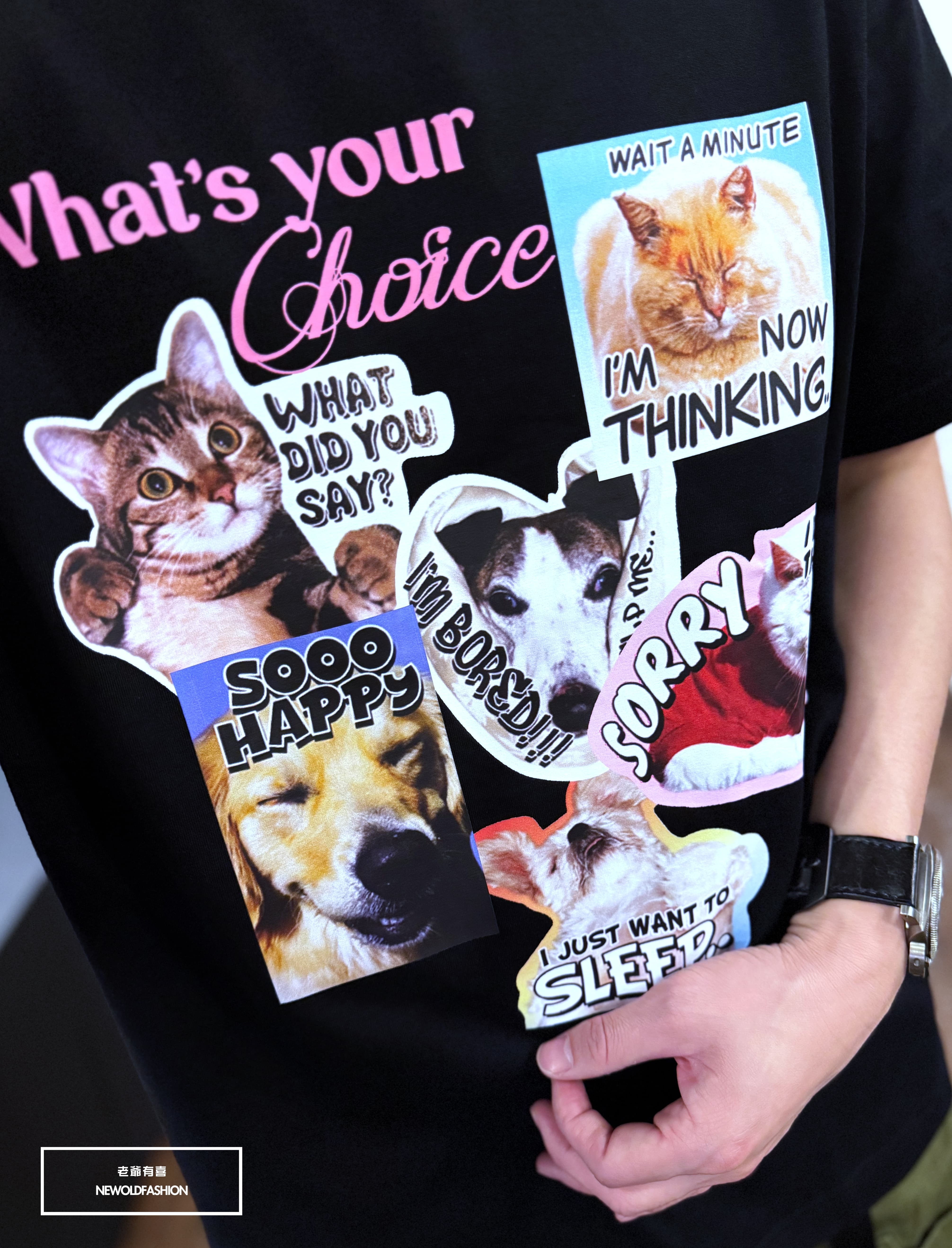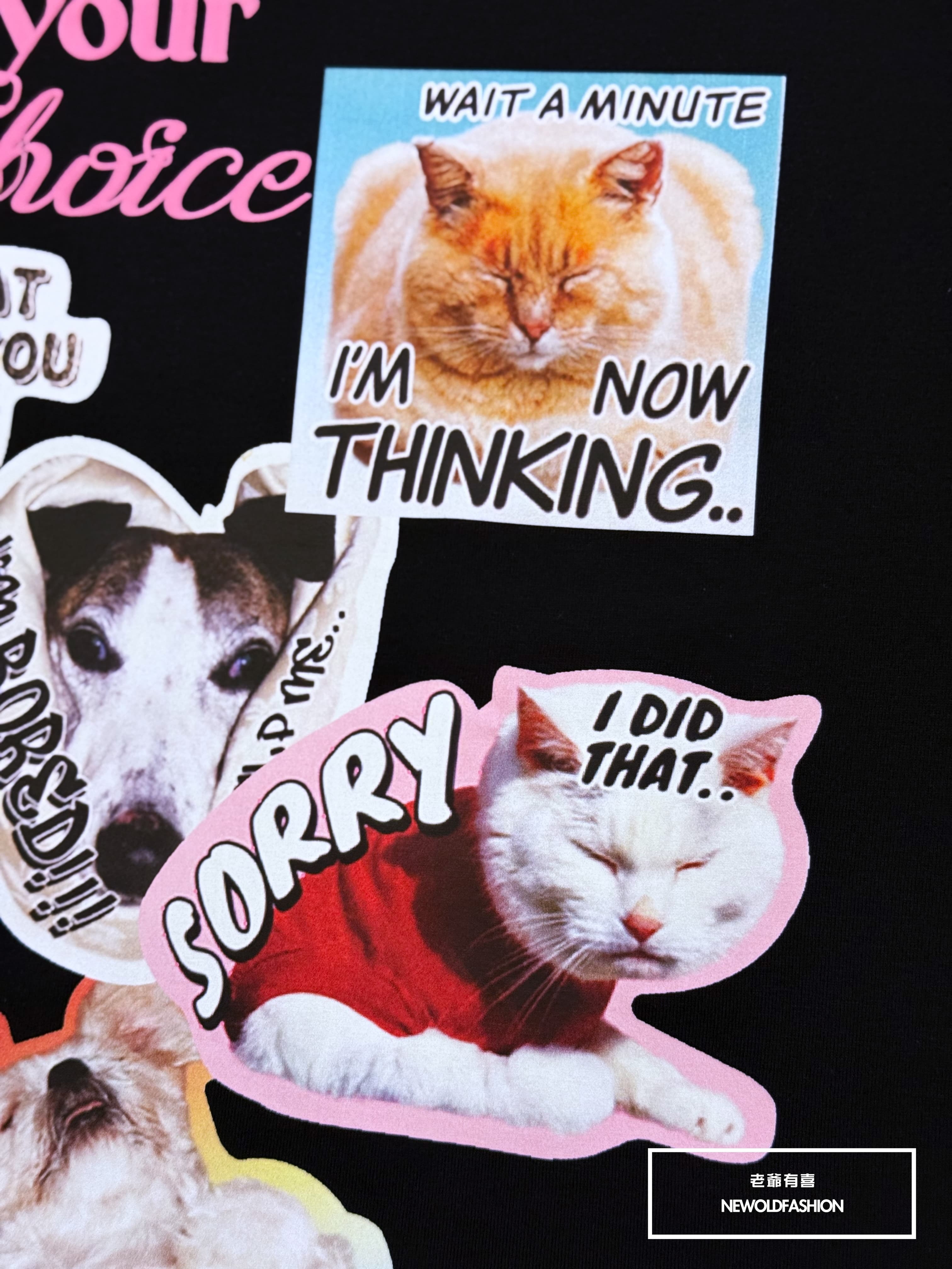 『新品上市』重磅貓狗便利貼短T(NOF25038186)-白