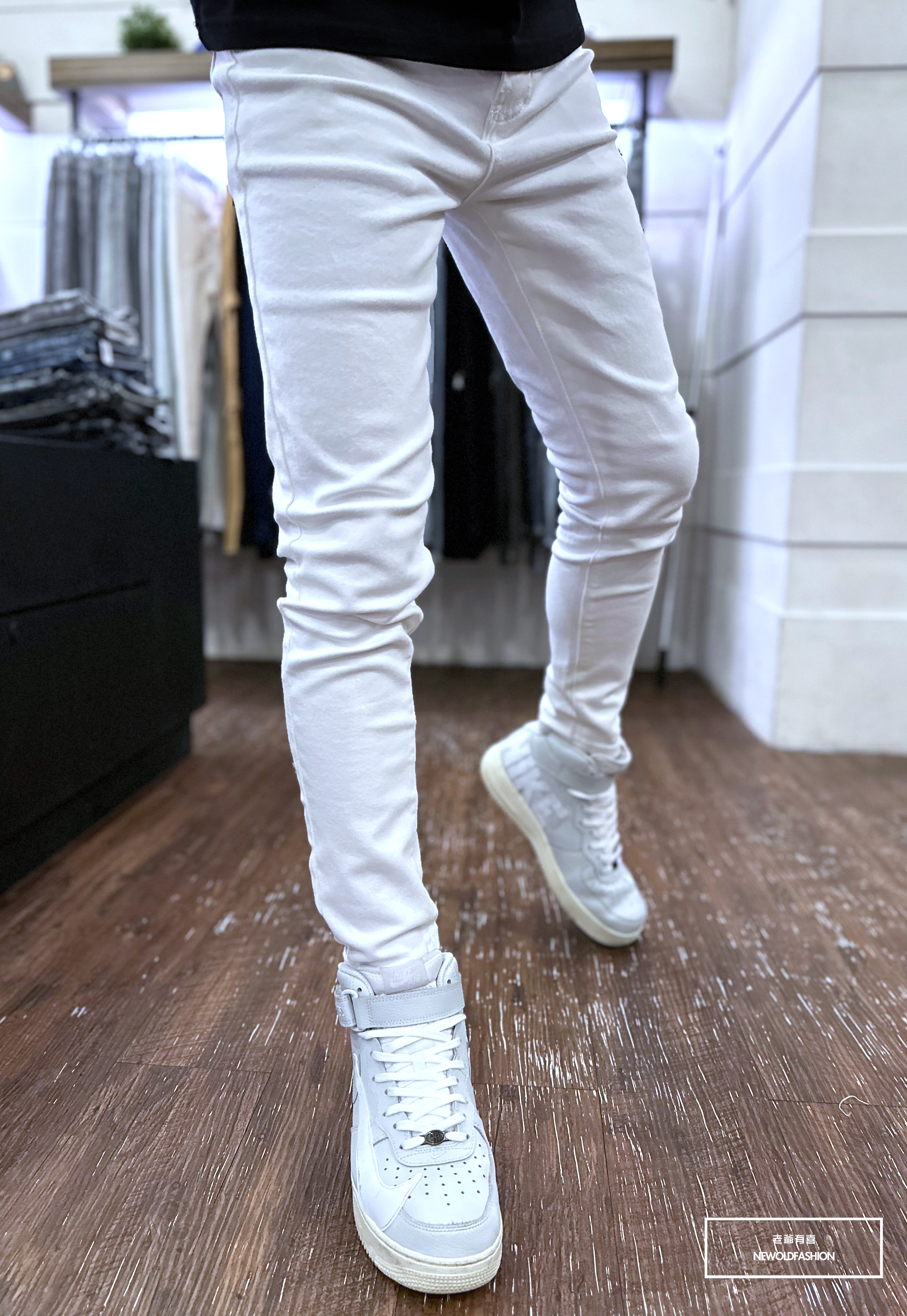 『新品上市』重磅純色全素小直筒牛仔褲(NOF23038601)-白