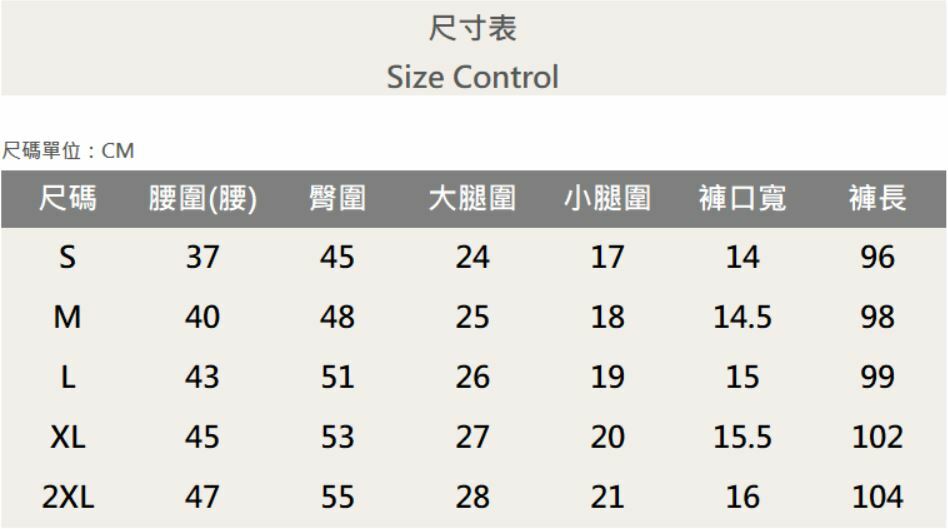 五個尺寸(S、M、L、XL、XXL)