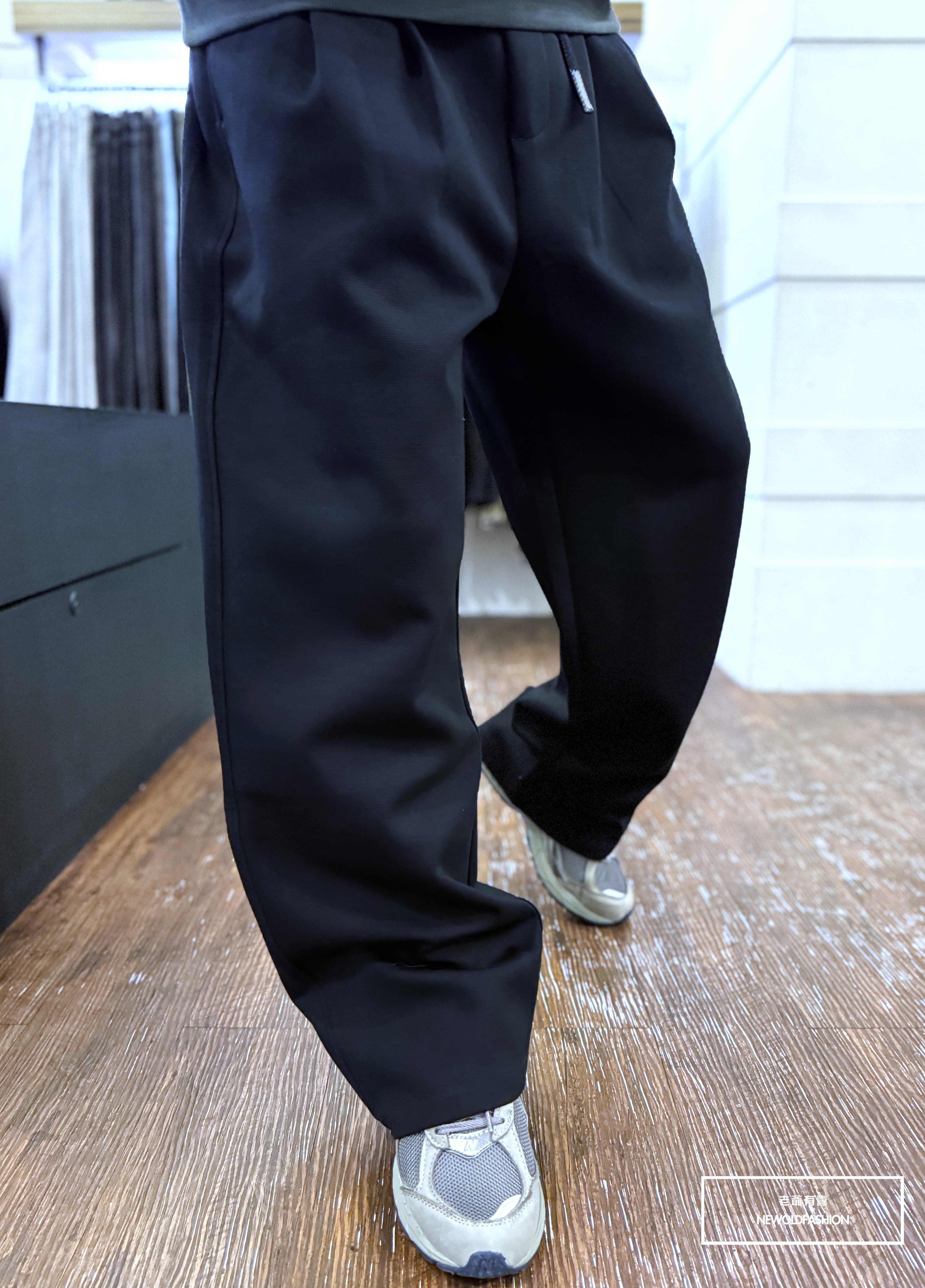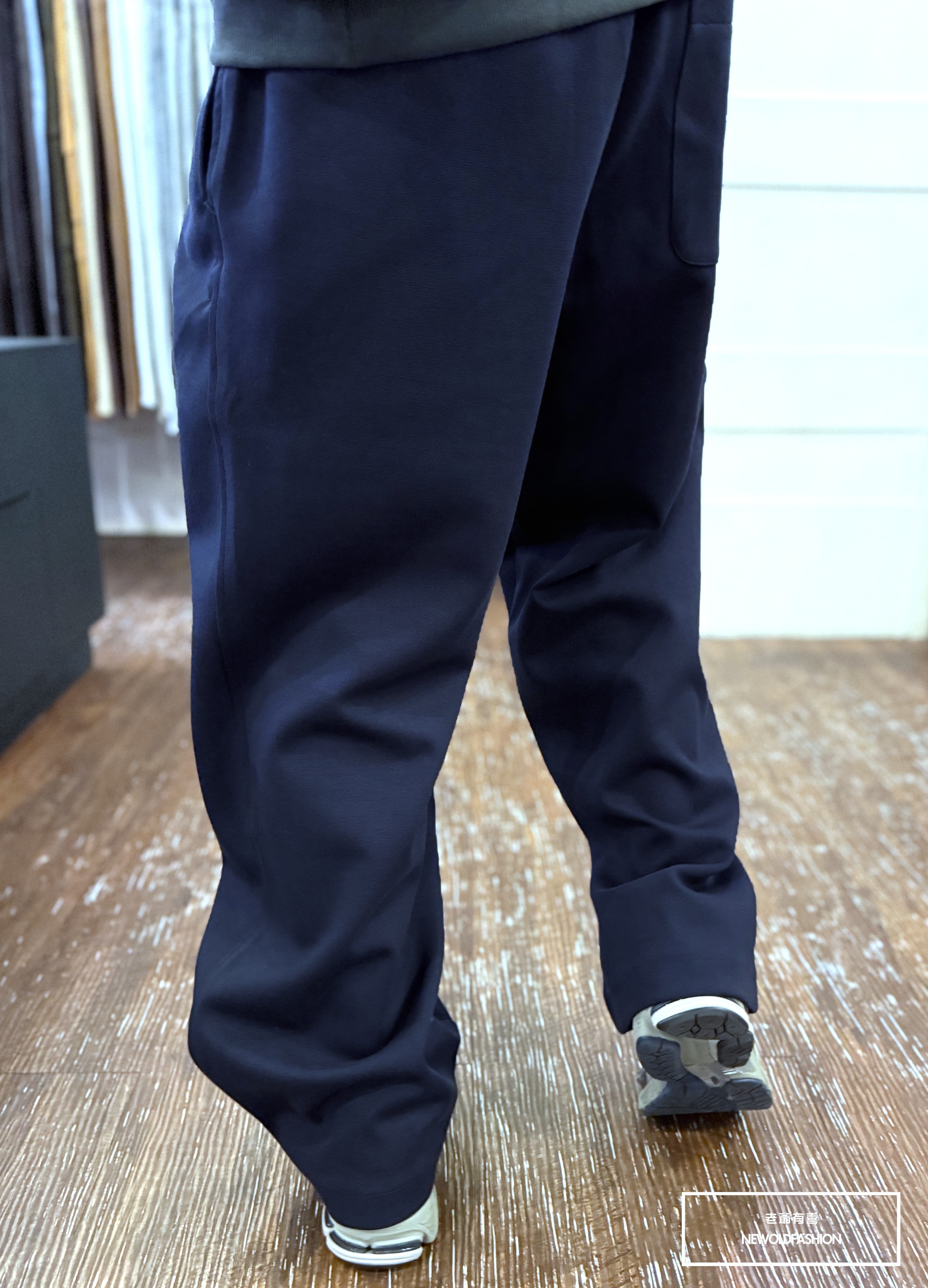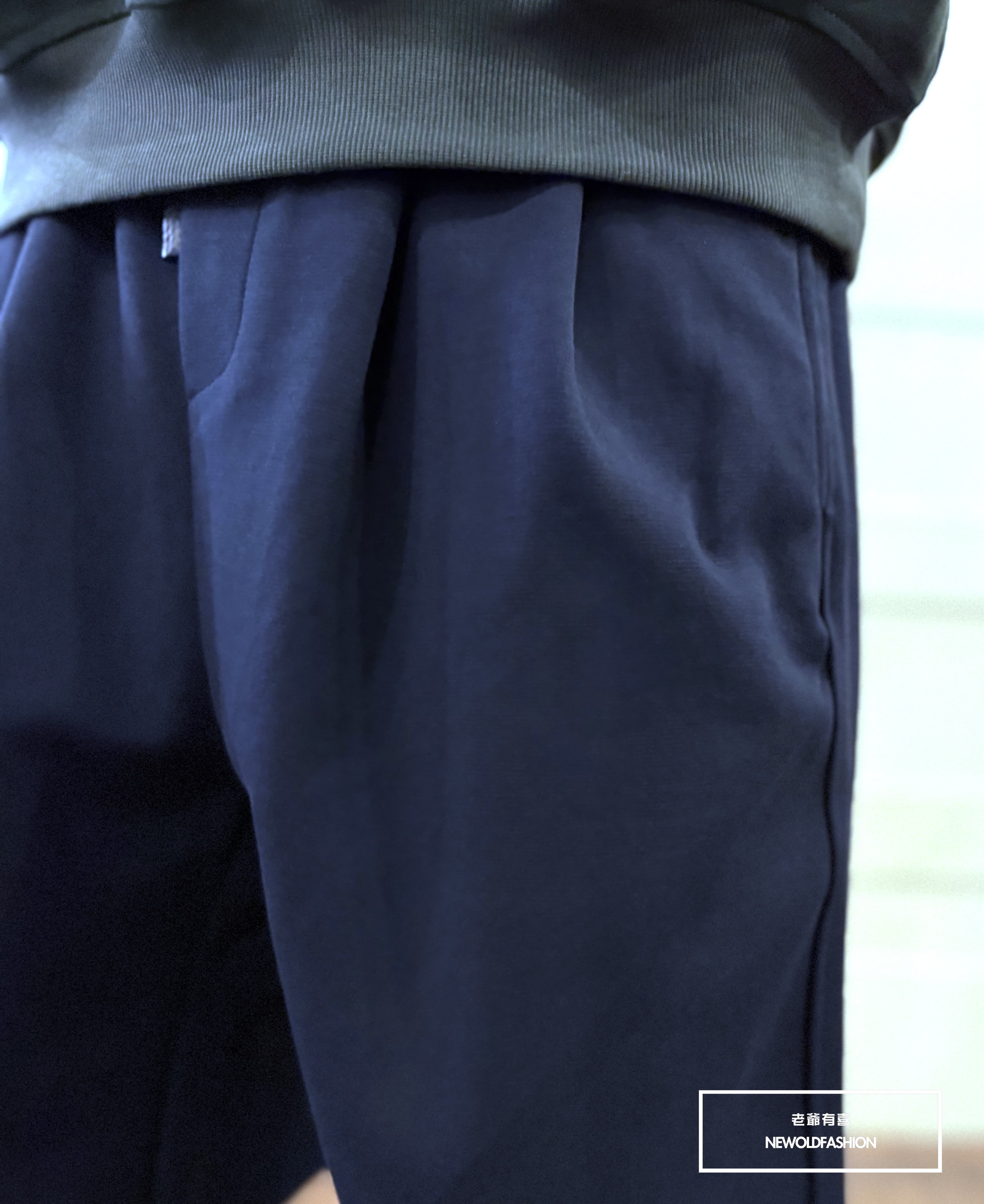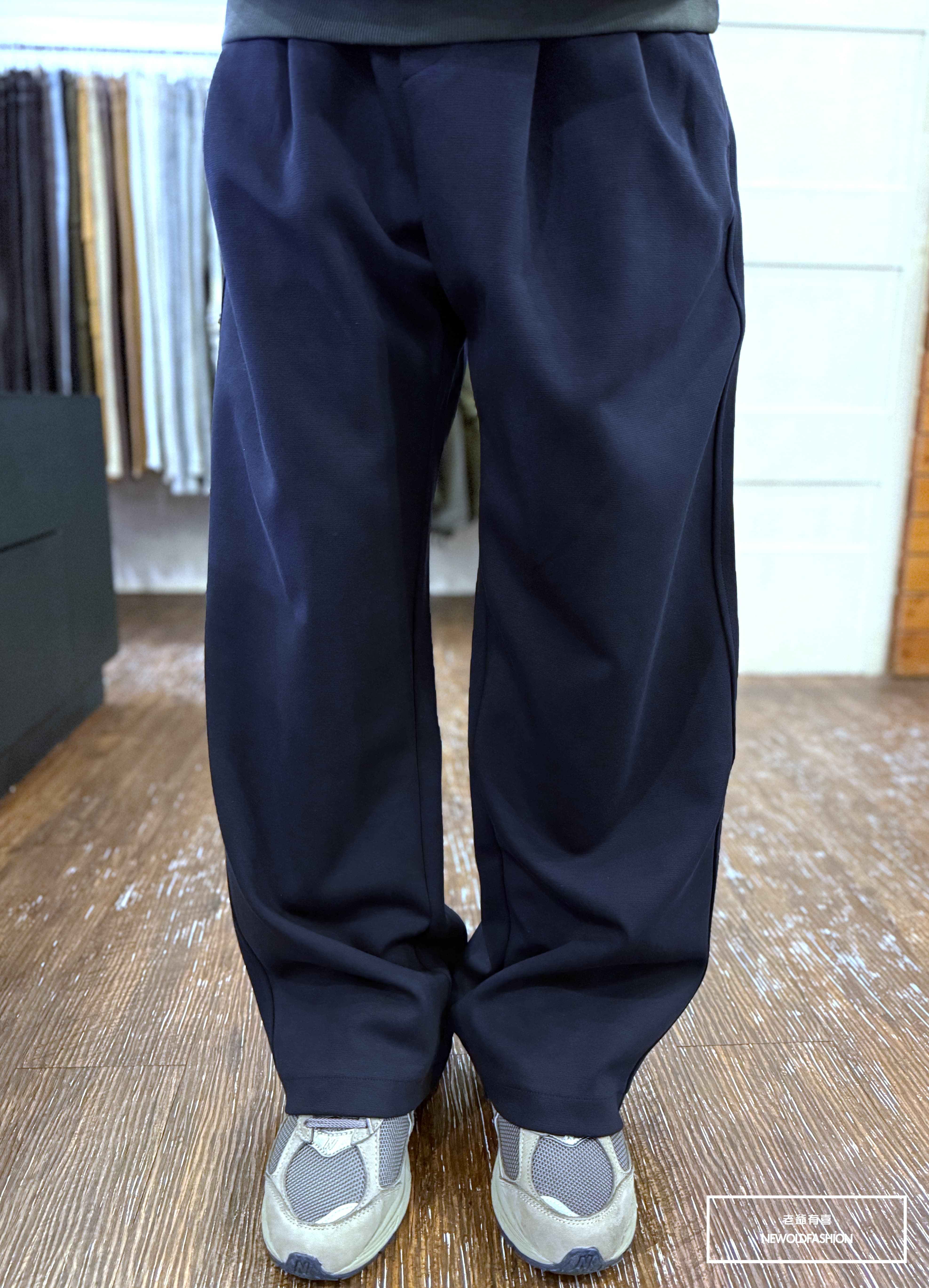 『新品上市』重磅打摺素面抽繩棉寬褲(NOF25108801)-深藍