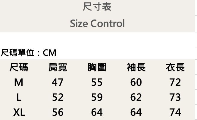 兩個尺寸(M、L、XL)