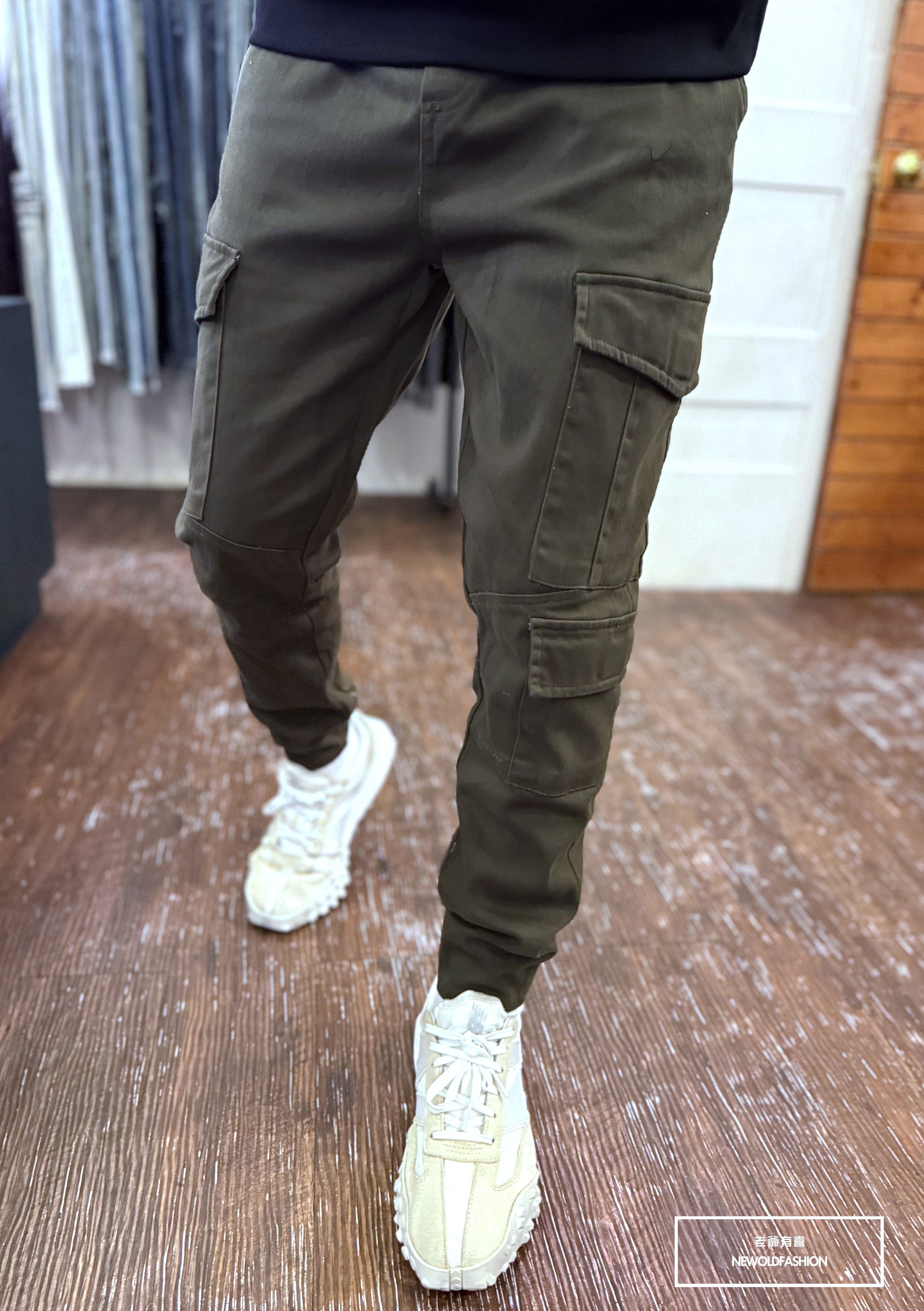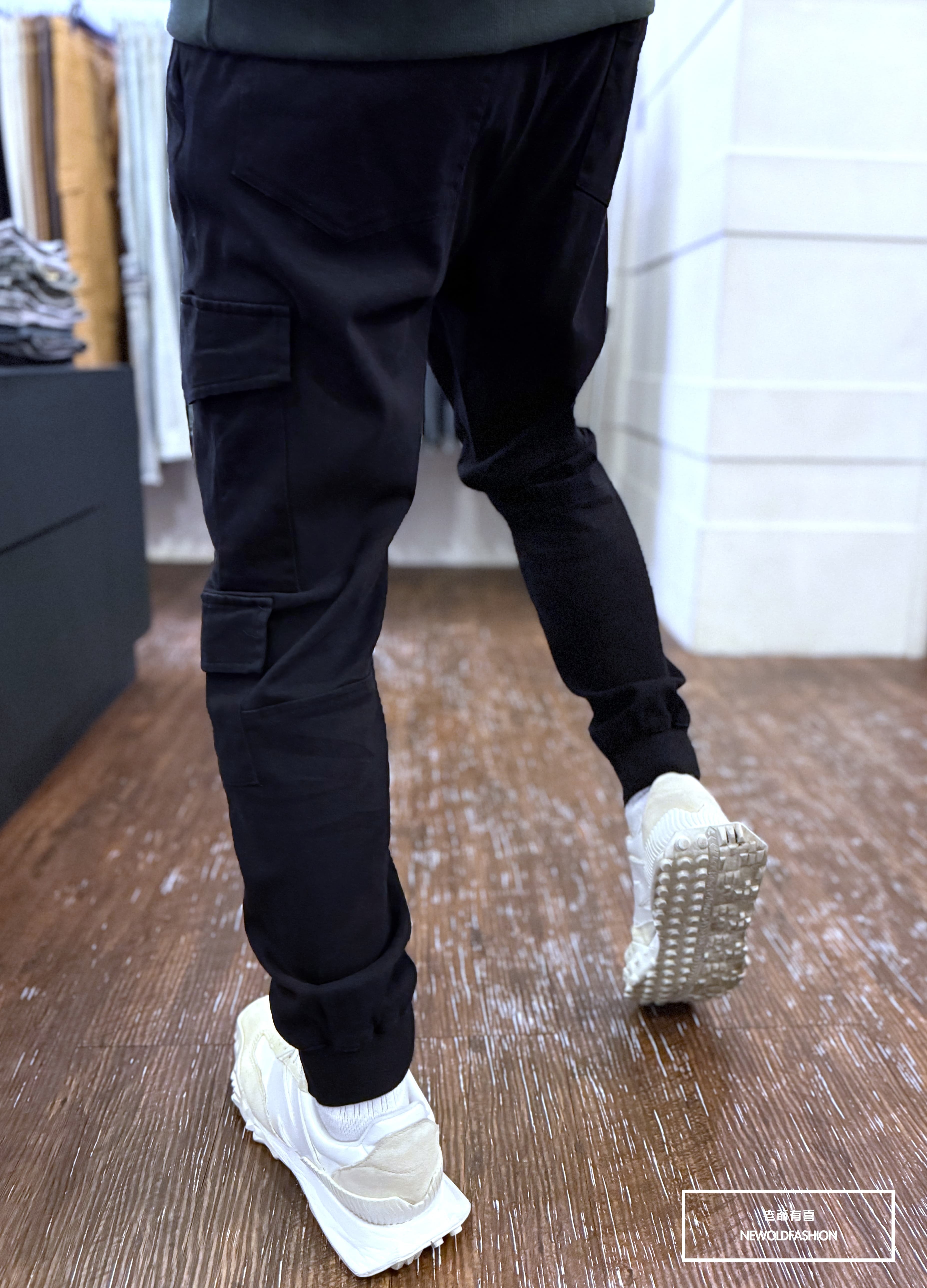 合身窄管後縮口褲