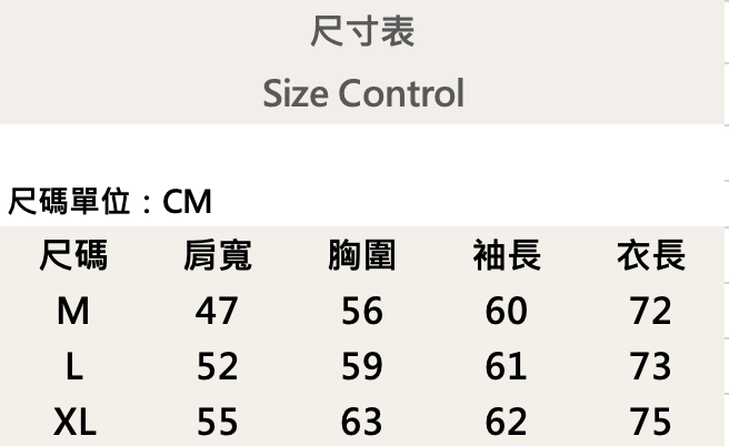 三個尺寸(M、L、XL)
