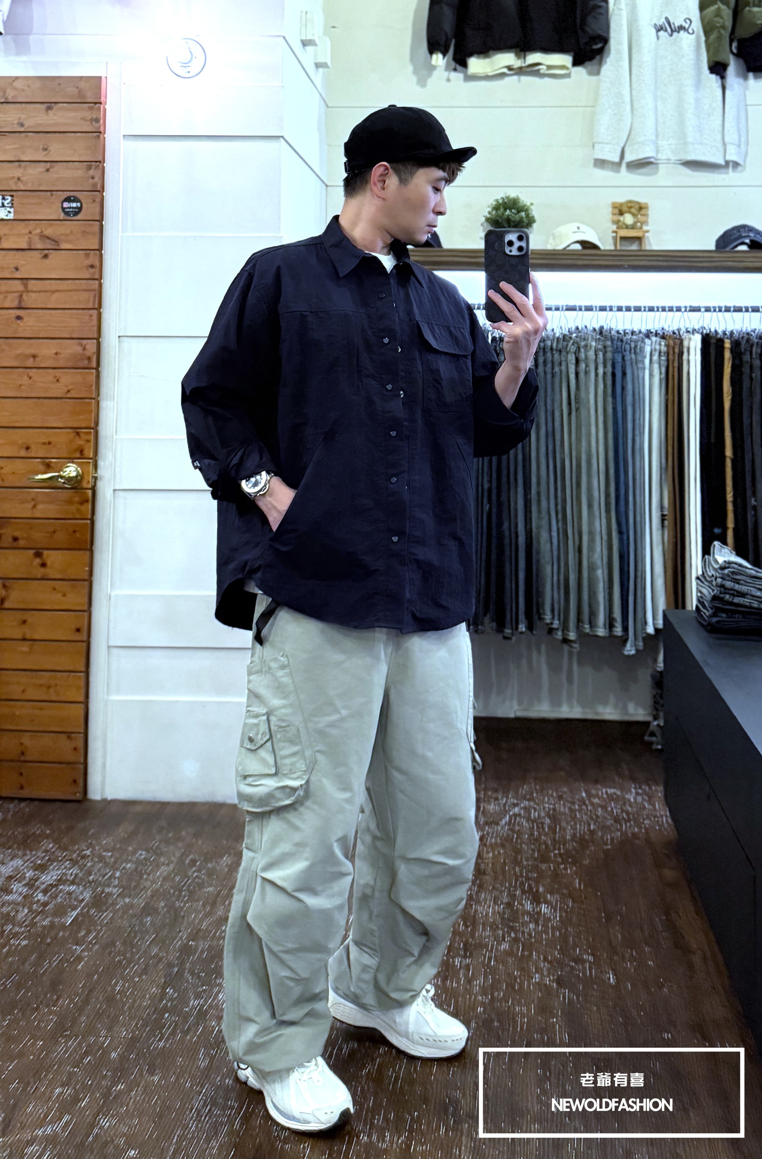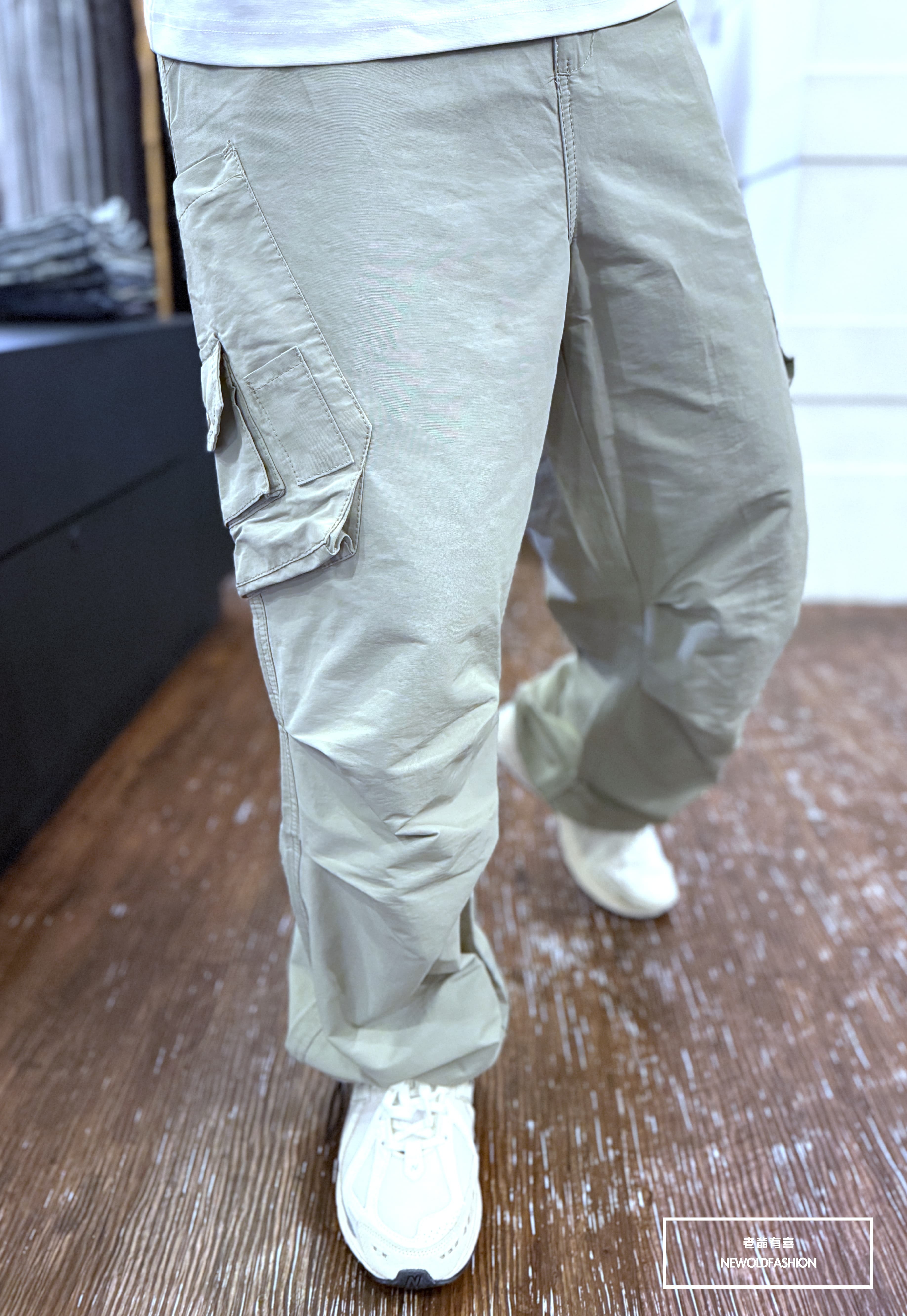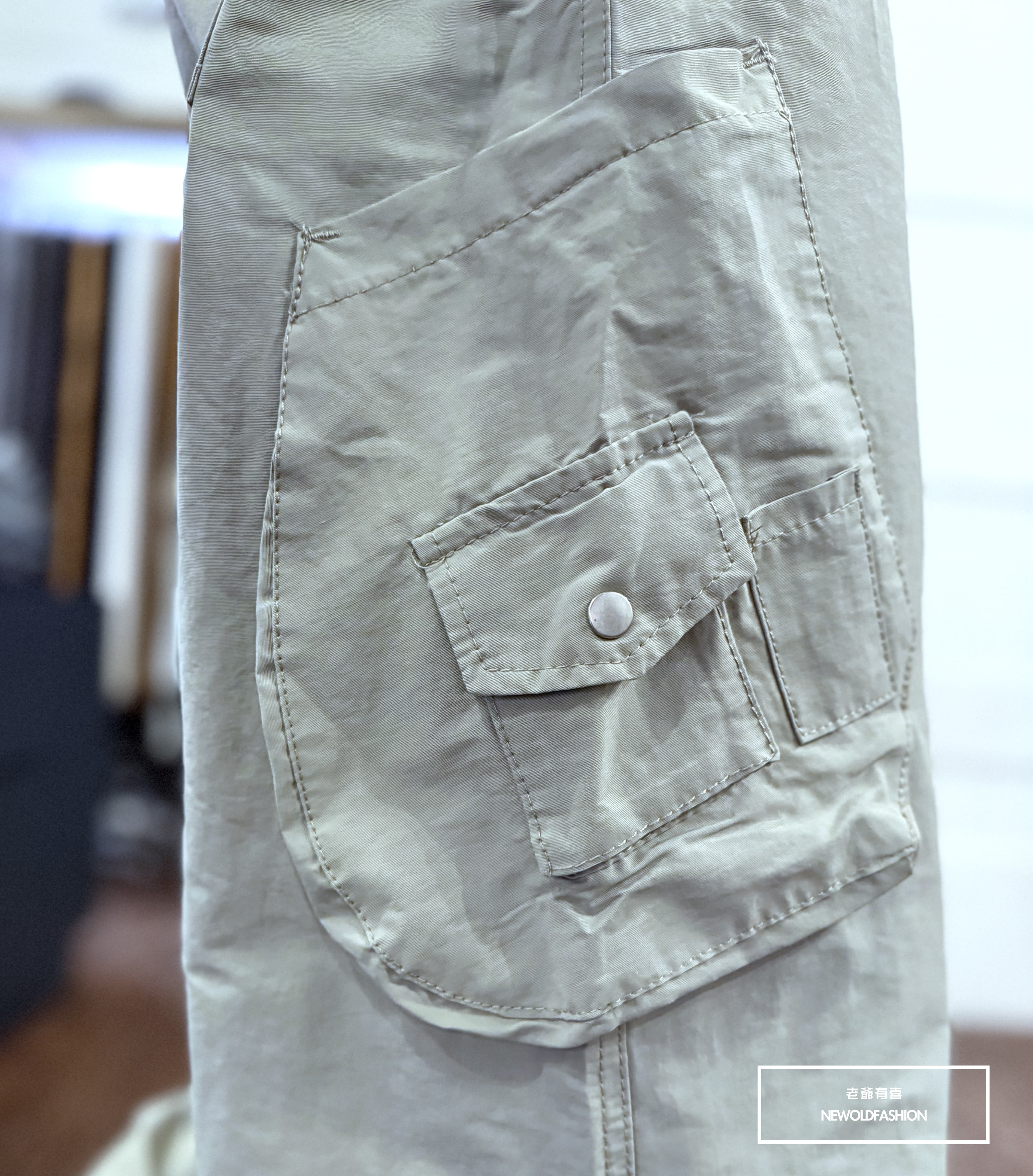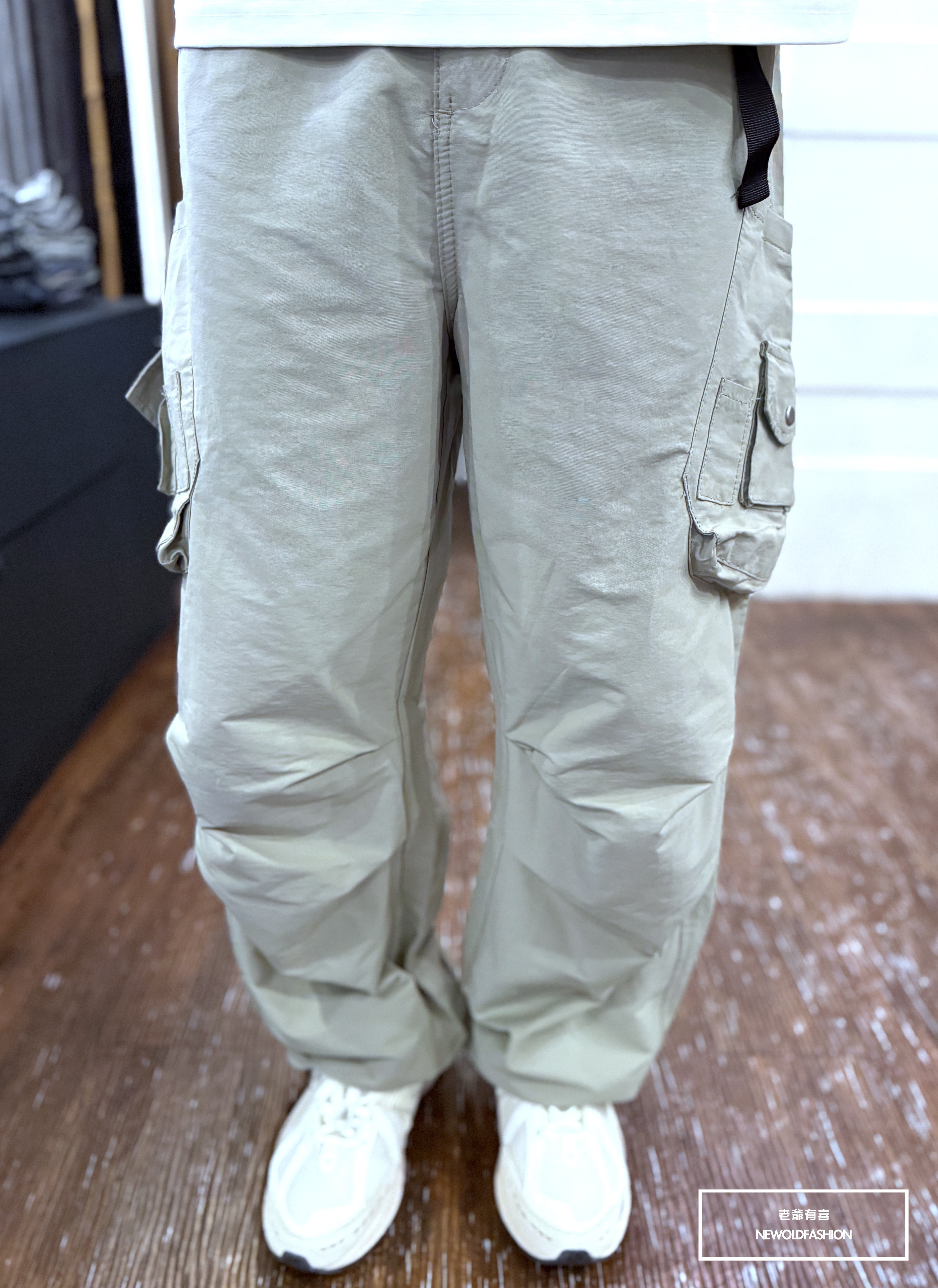 『新品上市』重磅多口袋綁帶工裝寬褲-卡其(NOF25029001)
