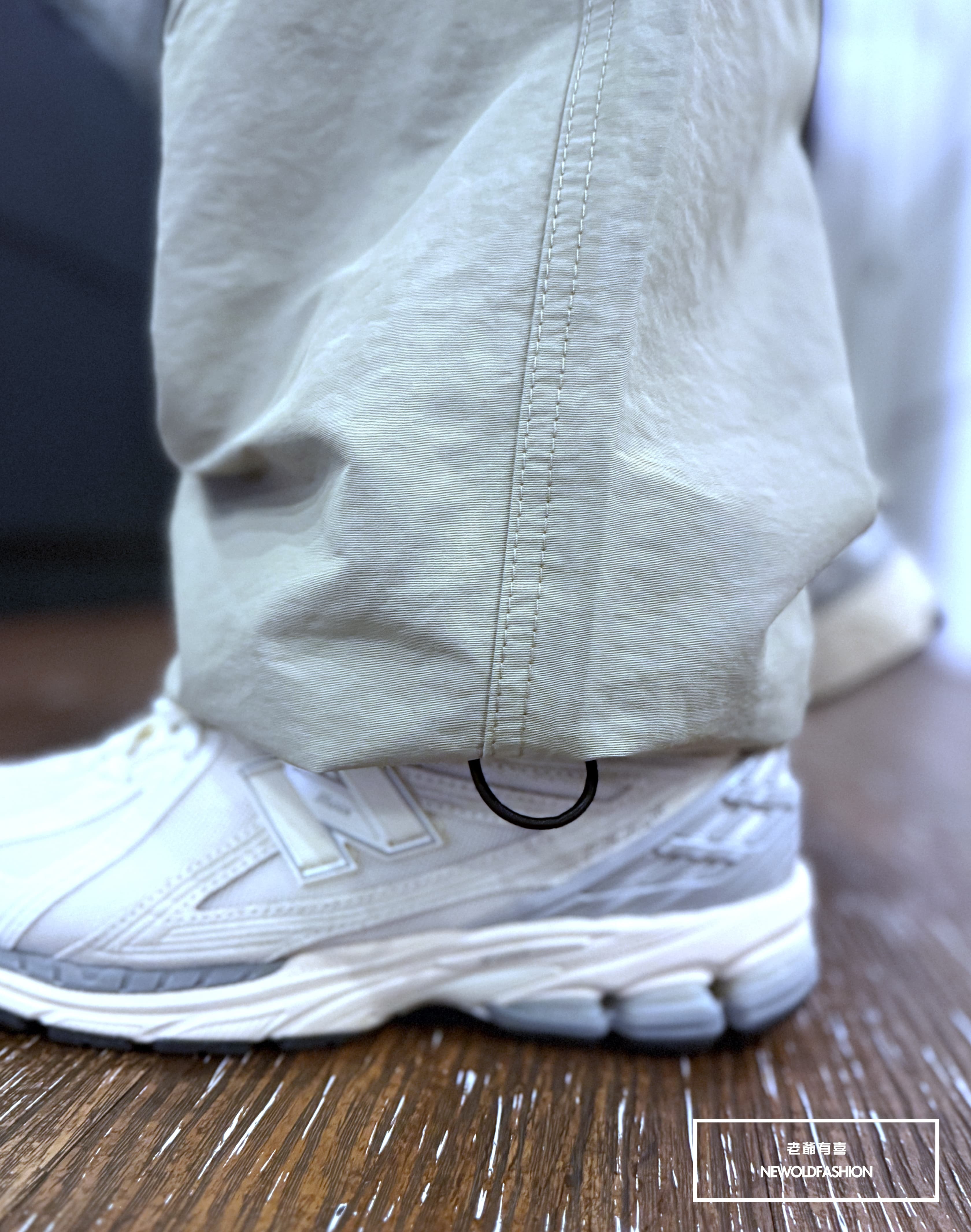 雙側拉鍊多口袋造型,褲頭、褲管抽繩設計可自行調整大小